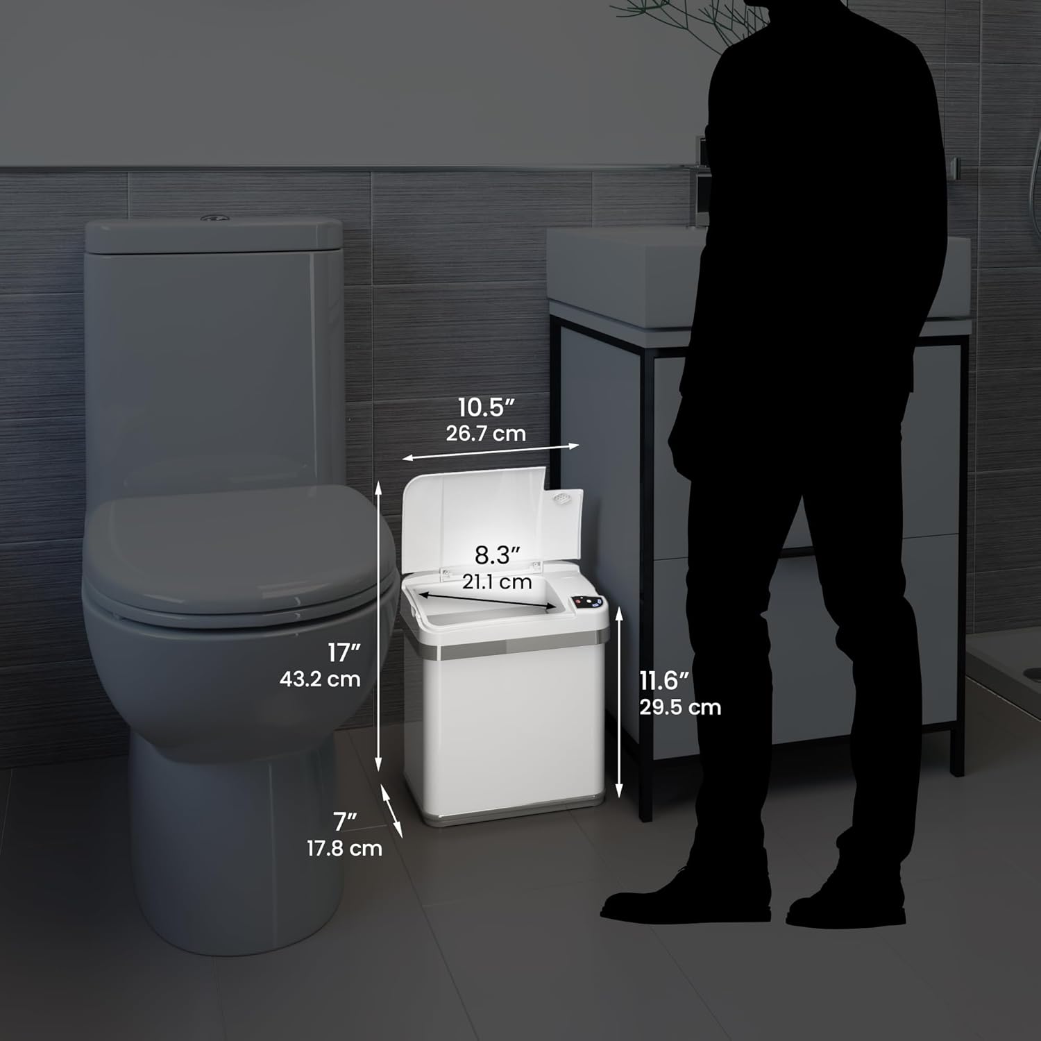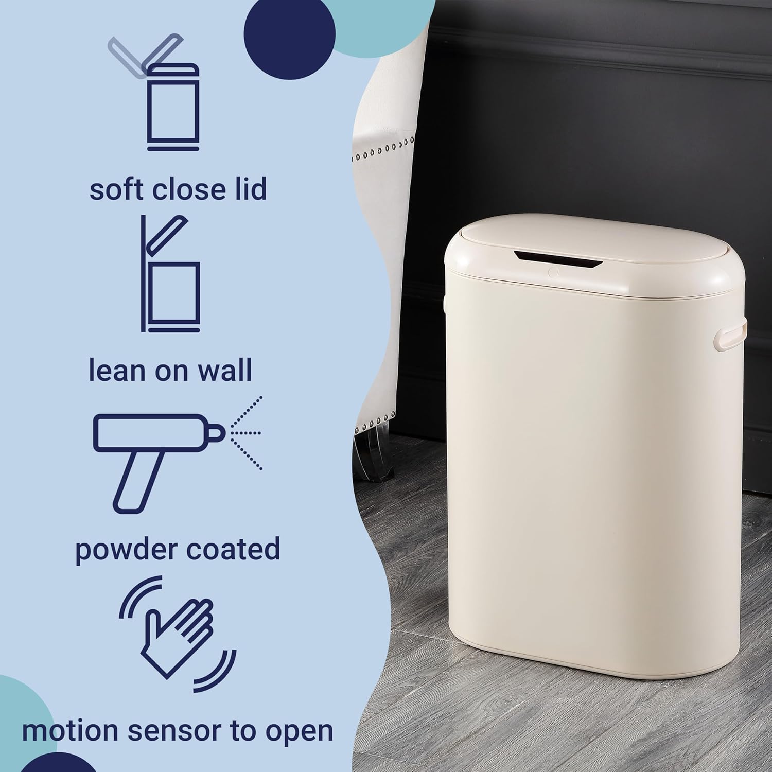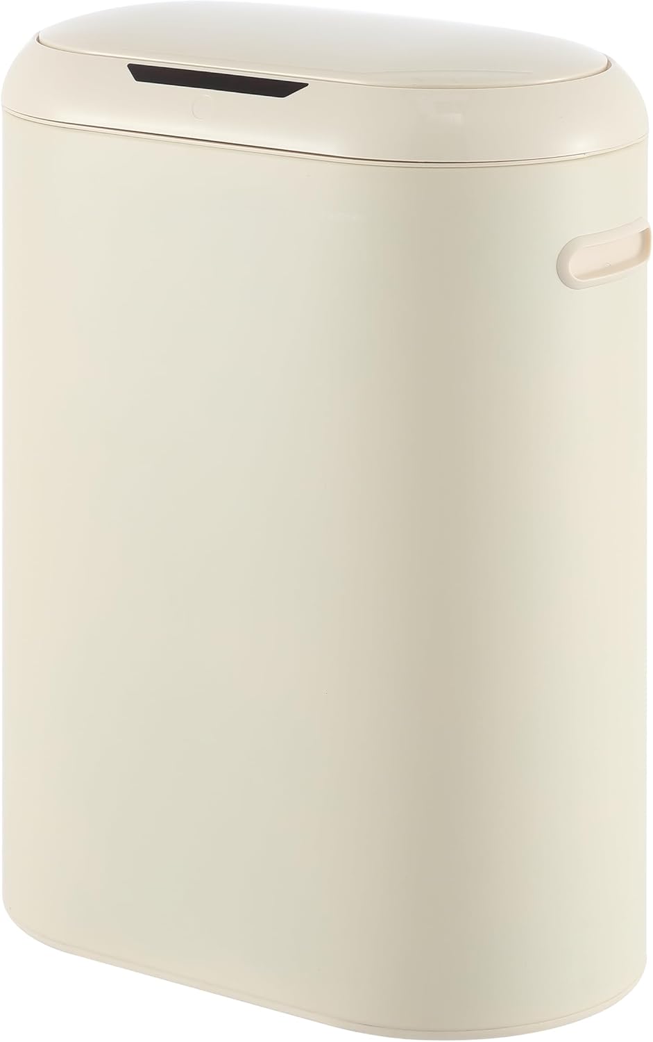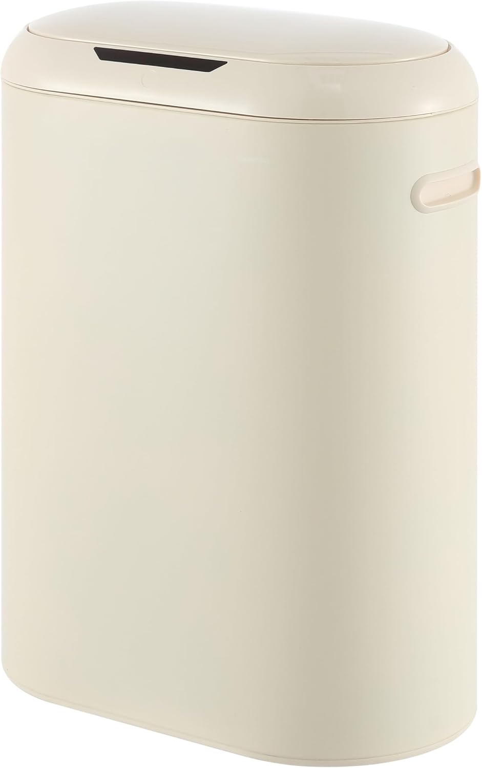 happimess HPM1016A Robo Kitchen 13.2-Gallon Slim Oval Motion Sensor Touchless Trash Can with Touch Mode, Fingerprint Resistant, Modern, Minimalistic for Kitchen, Office, Bathroom, Platinum Silver