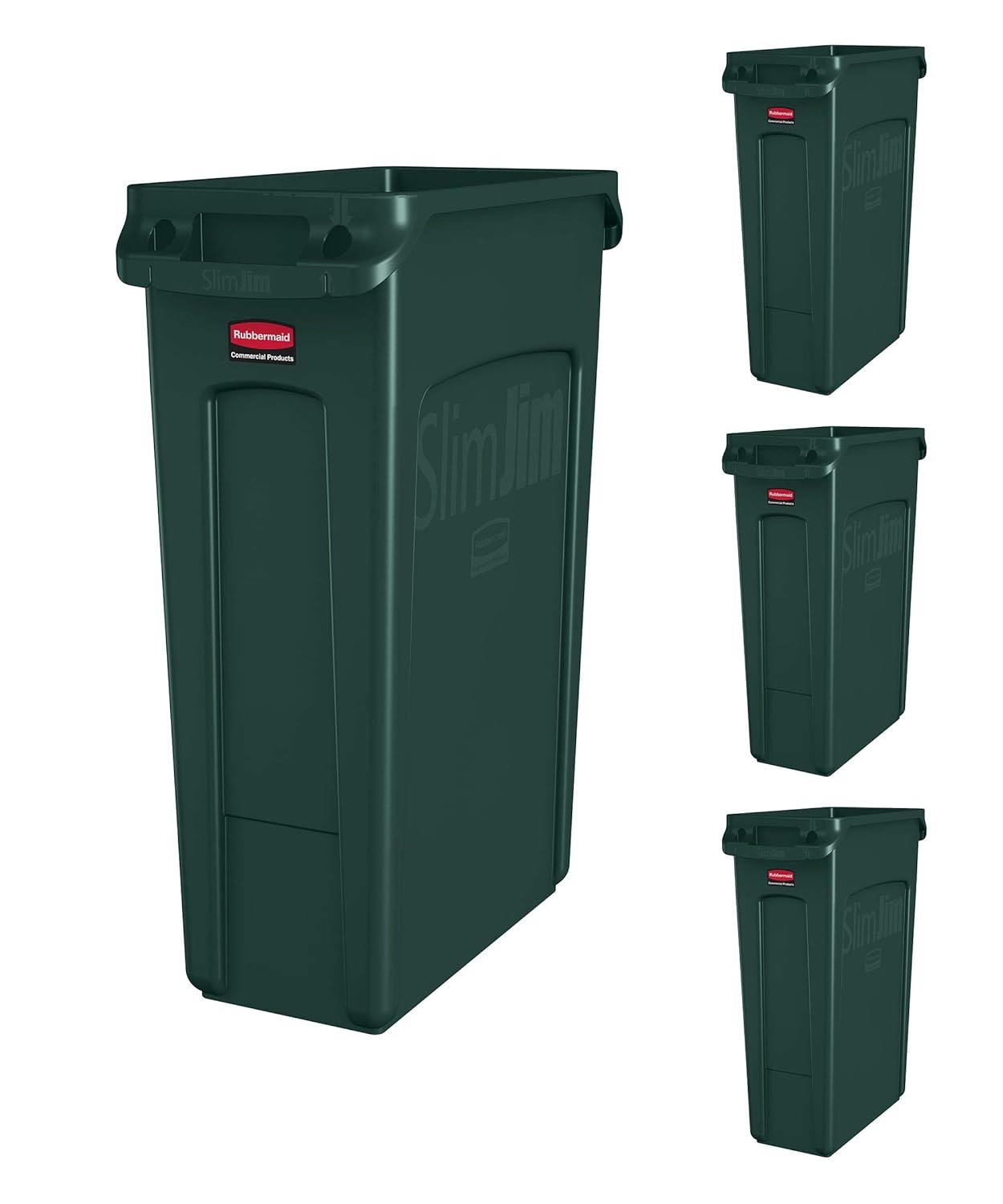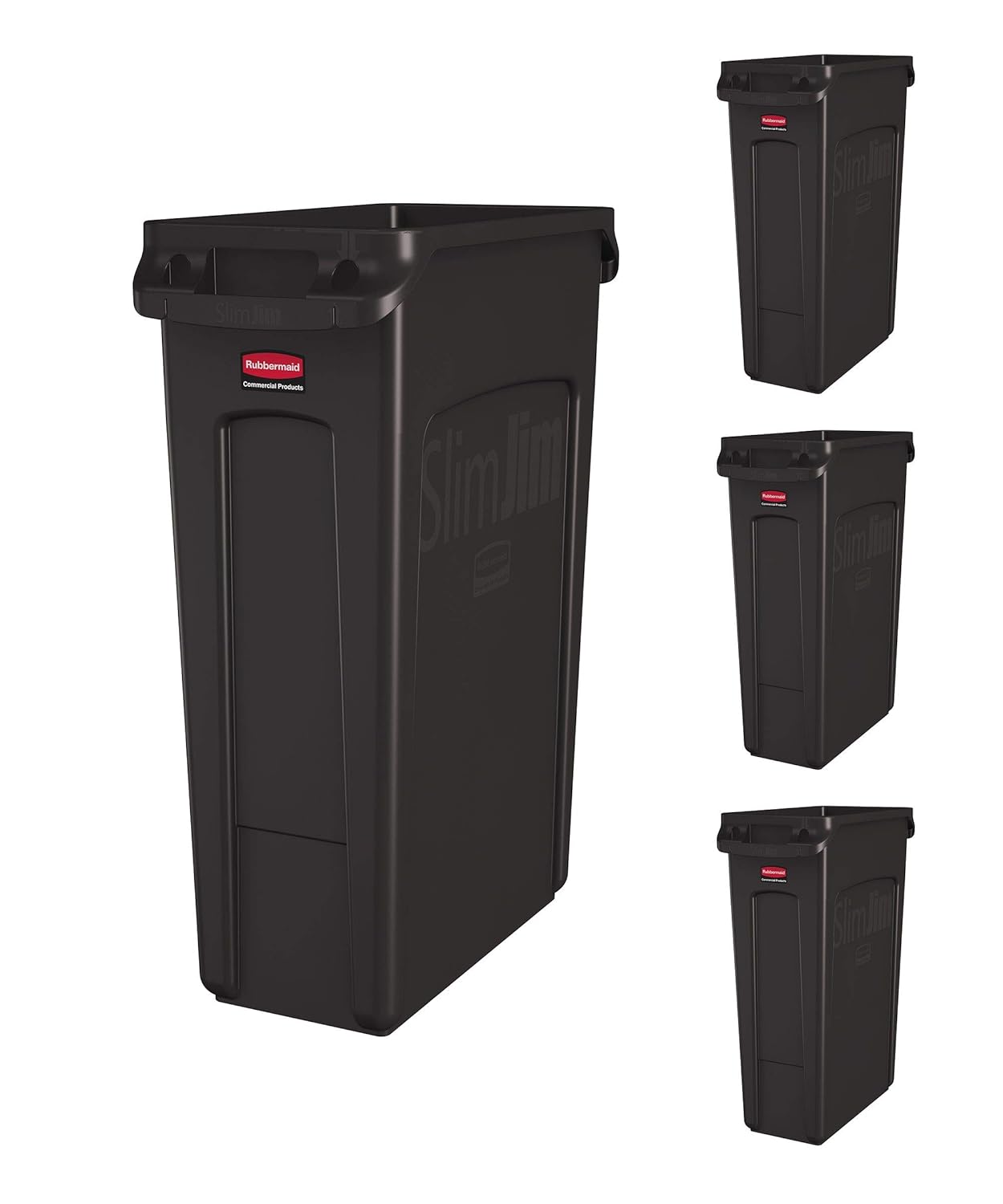Carlisle FoodService Products Trimline Waste Container, Space Saving Slim Trash Can, 23 Gallons, Black, (Pack of 4)