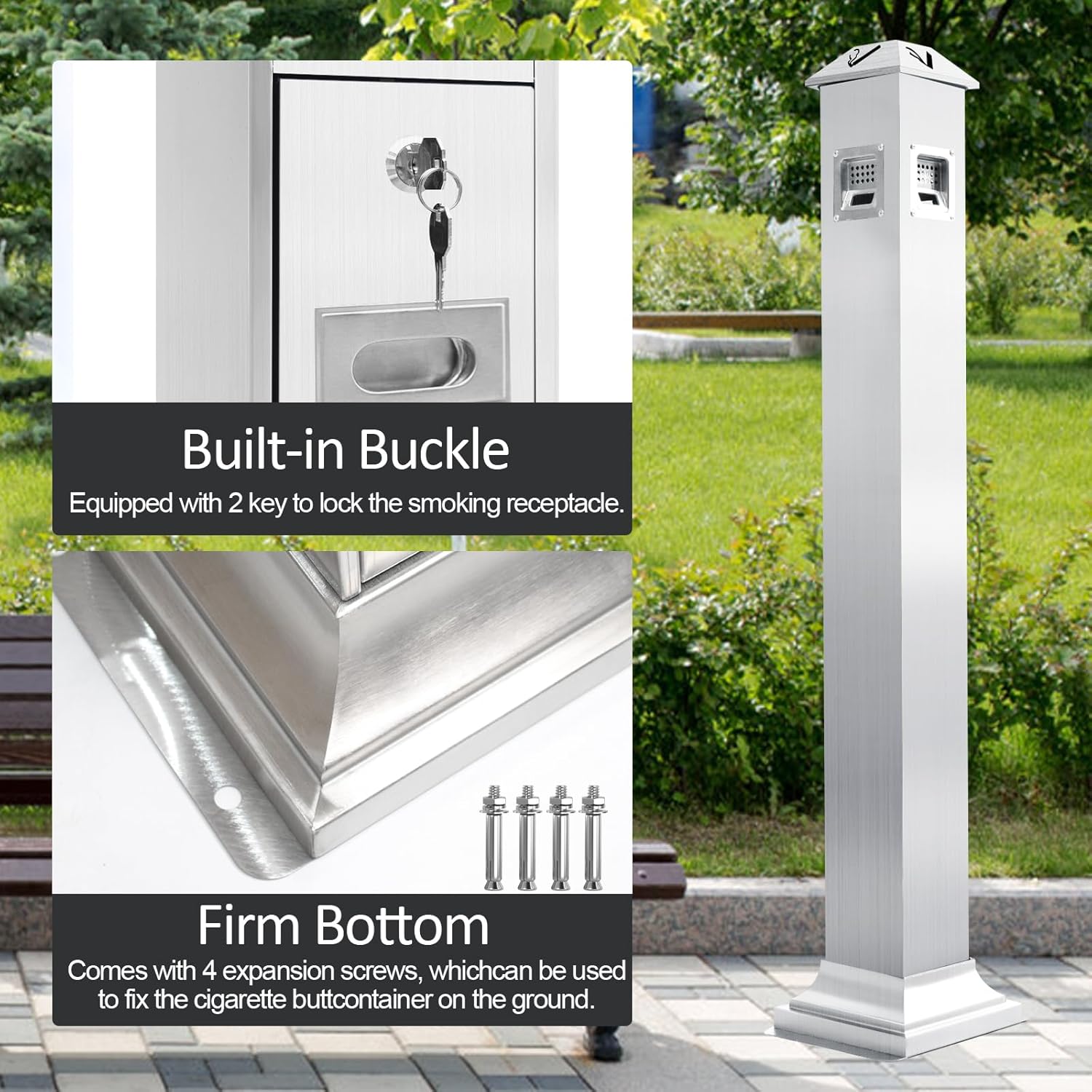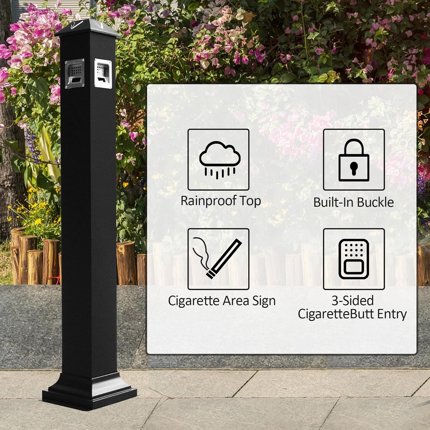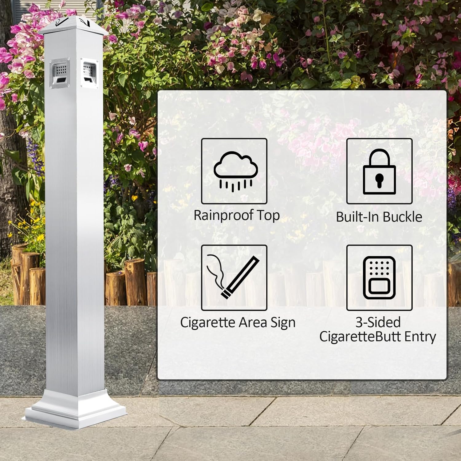 Standing Trash Bin Outdoor for Patio, Outdoor Standing Trash Cans, Commercial Metal Ashtrays for Disposal of Cigarette Butts Can be Used Outside in Gardens, Terraces, Hotels, Restaurants