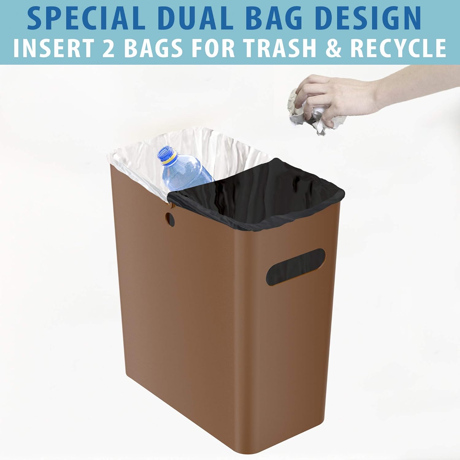 Kitchen Dual Trash Can - Double Touchless Garbage Bins 2 x 4 Gallon (2 x 15 L) with Lid, Stainless Compartment Trash and Recycle Bin Combo