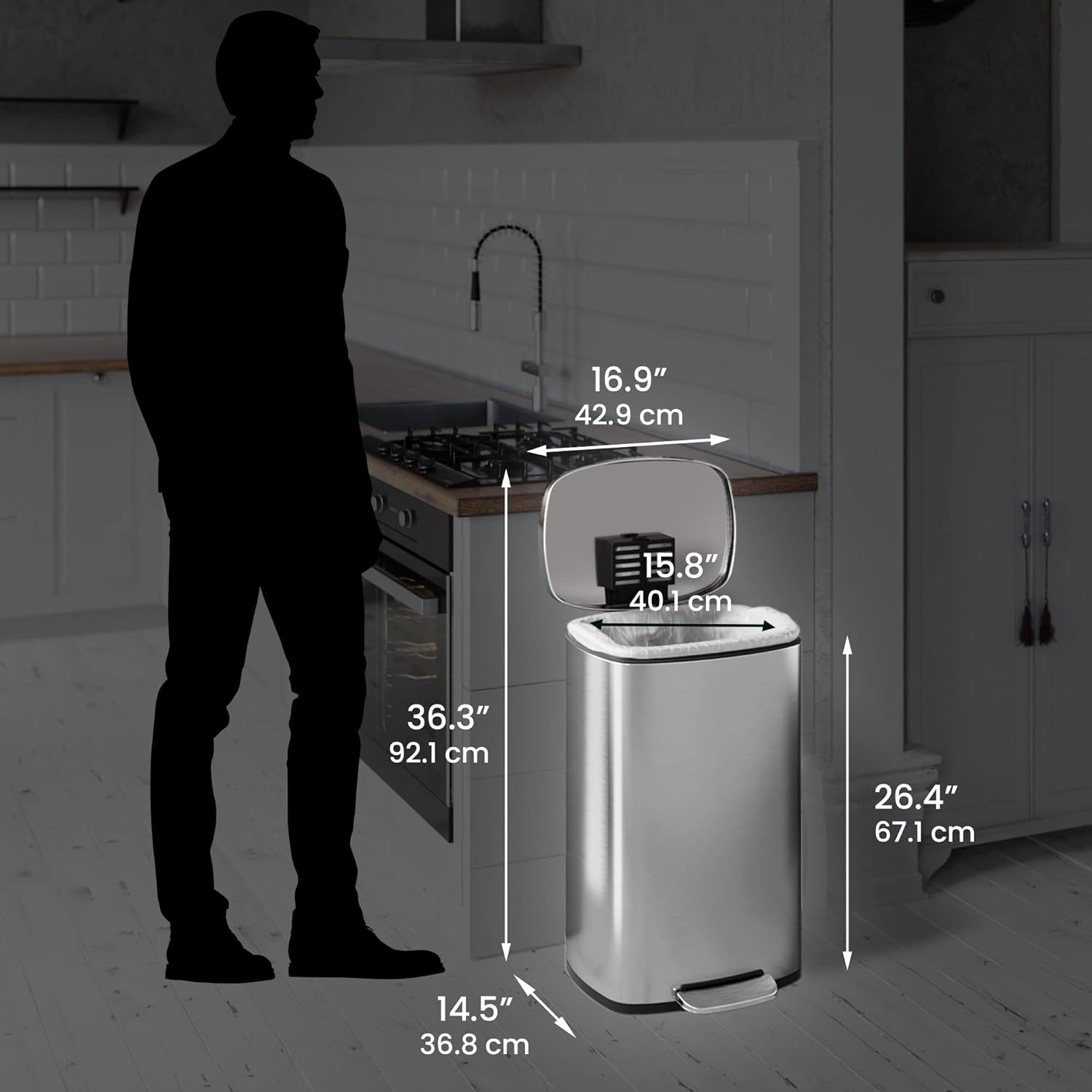 60 Liter / 16 Gallon Rectangular Hands-Free Dual Compartment Recycling Kitchen Step Trash Can with Soft-Close Lid, 2 x 8-Gallon Garbage Can for Kitchen