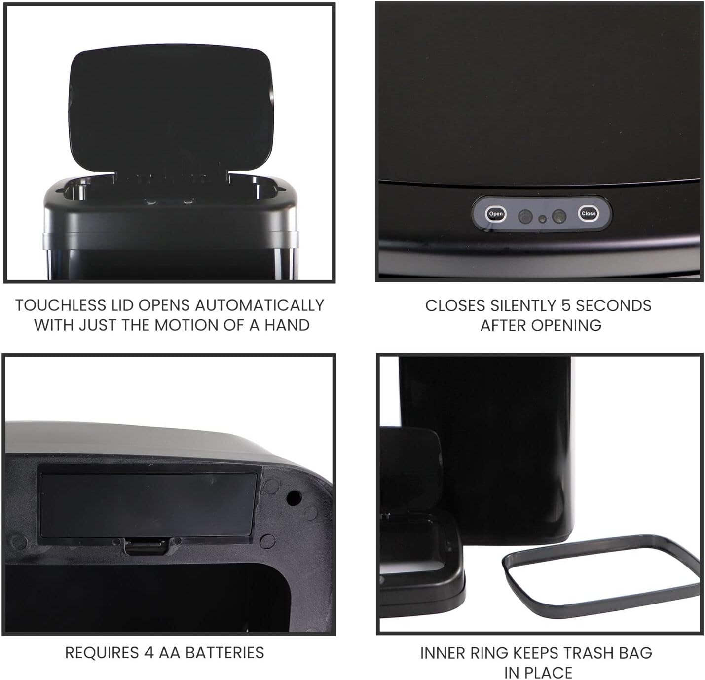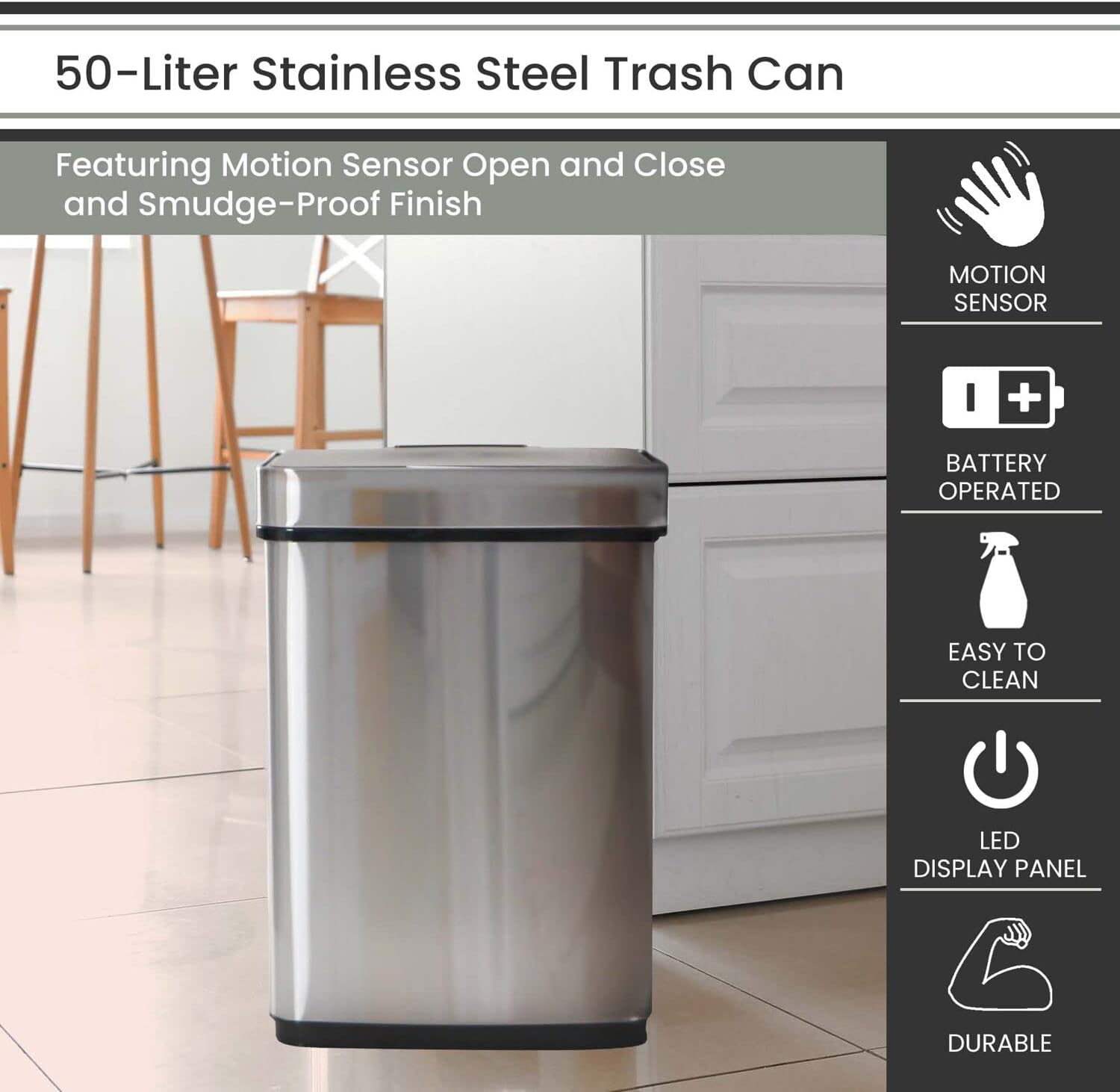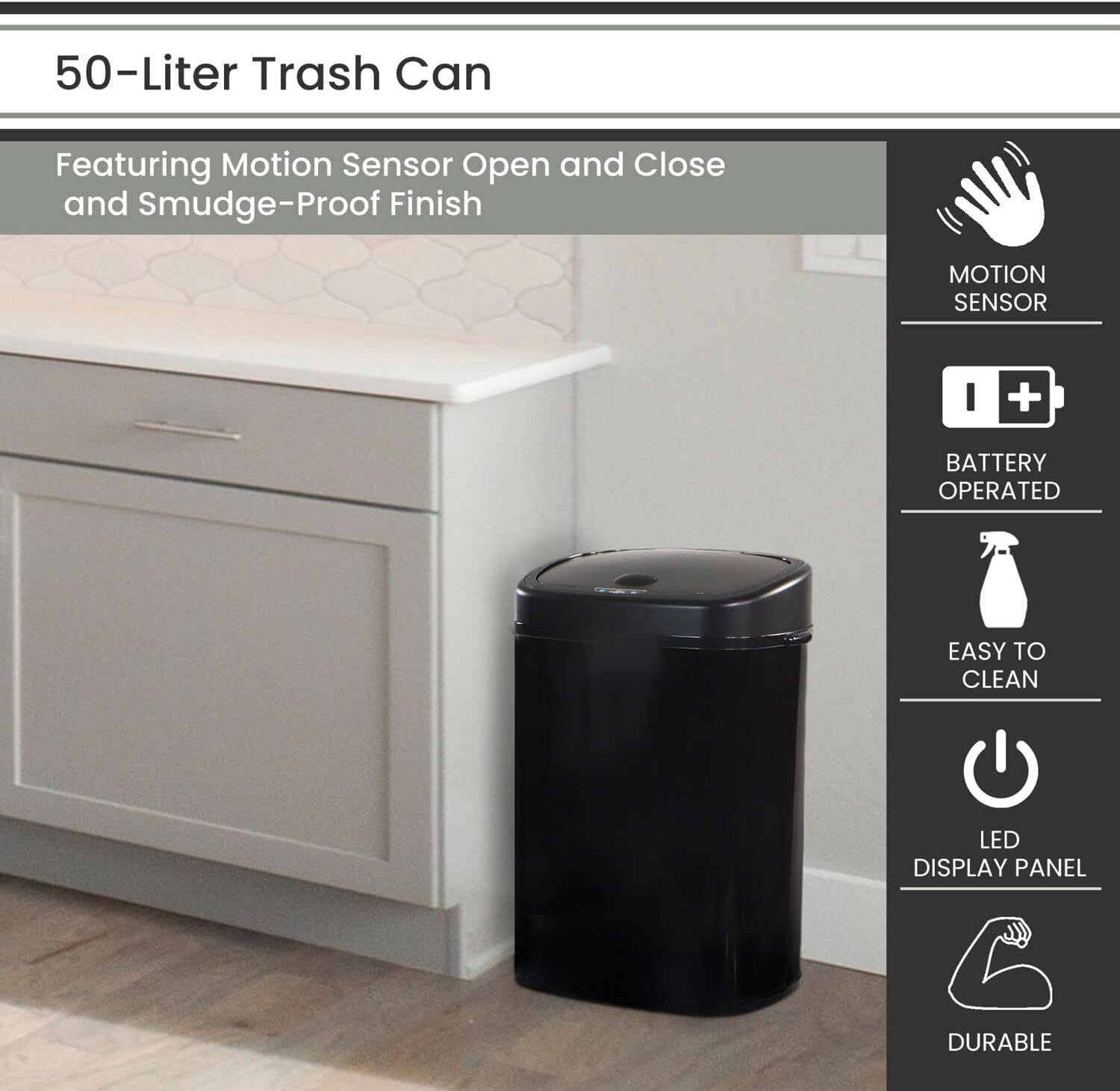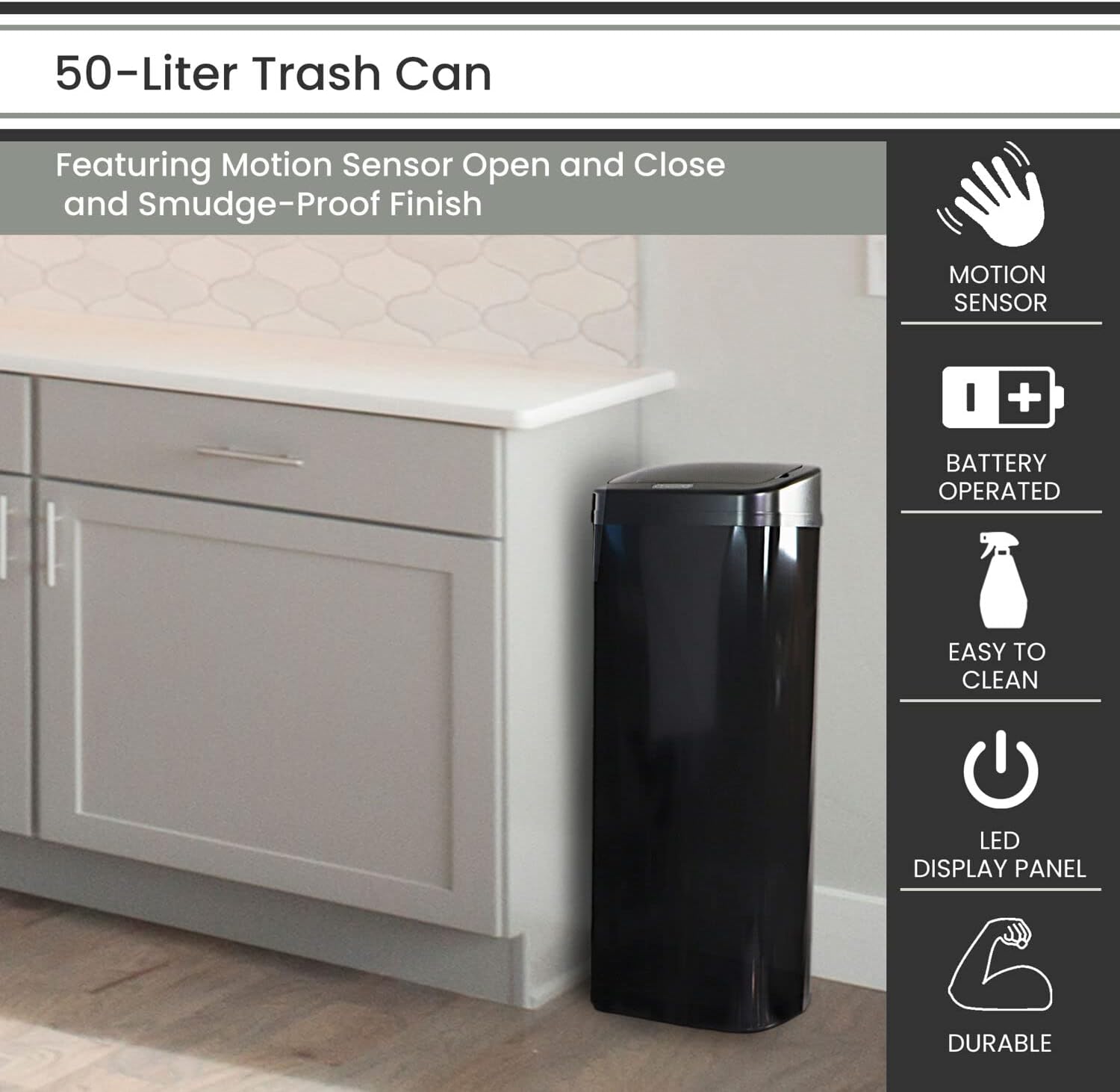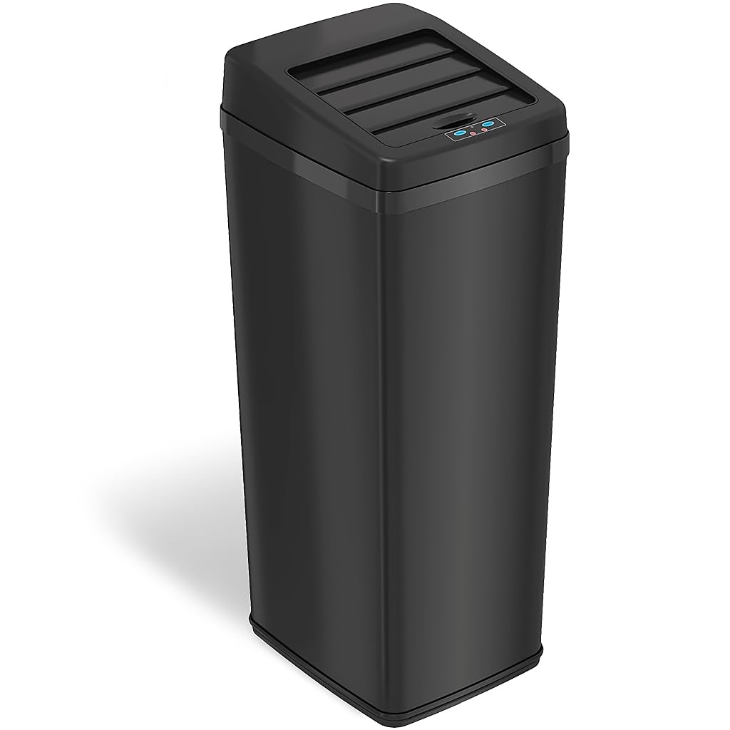 Hanover Home Hands-Free Steel Trash Can with Fingerprint-Resistant Finish and Soft-Close Motion Sensor Lid for Kitchen - 13.2 Gallons (50 Liters) in Black