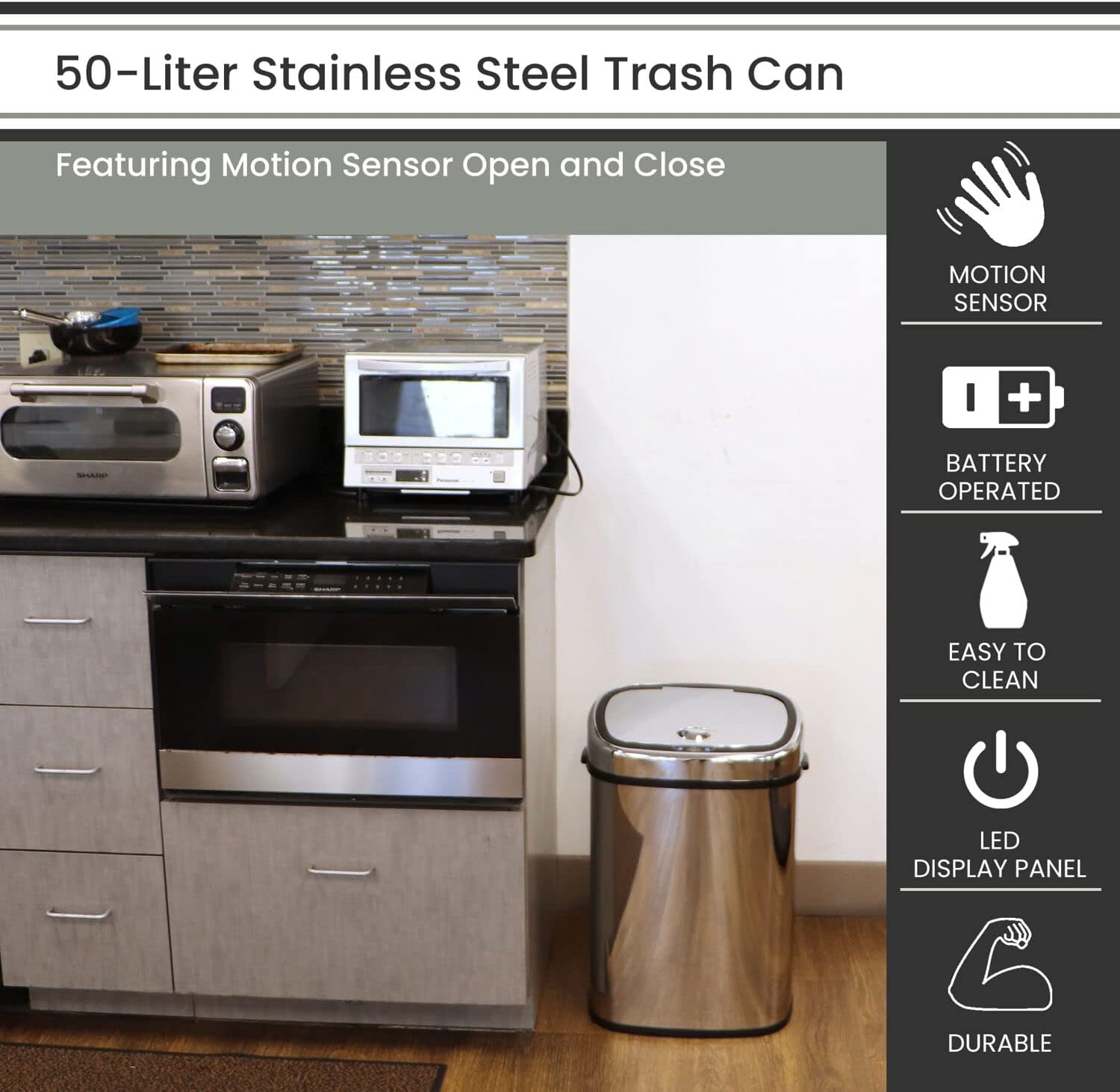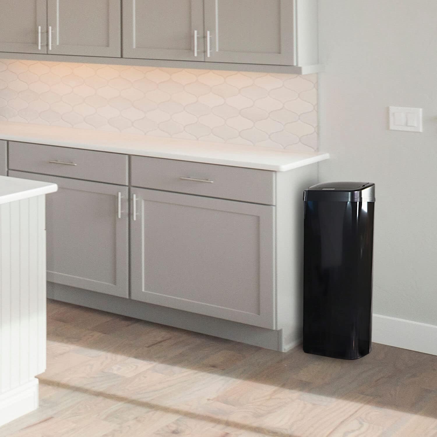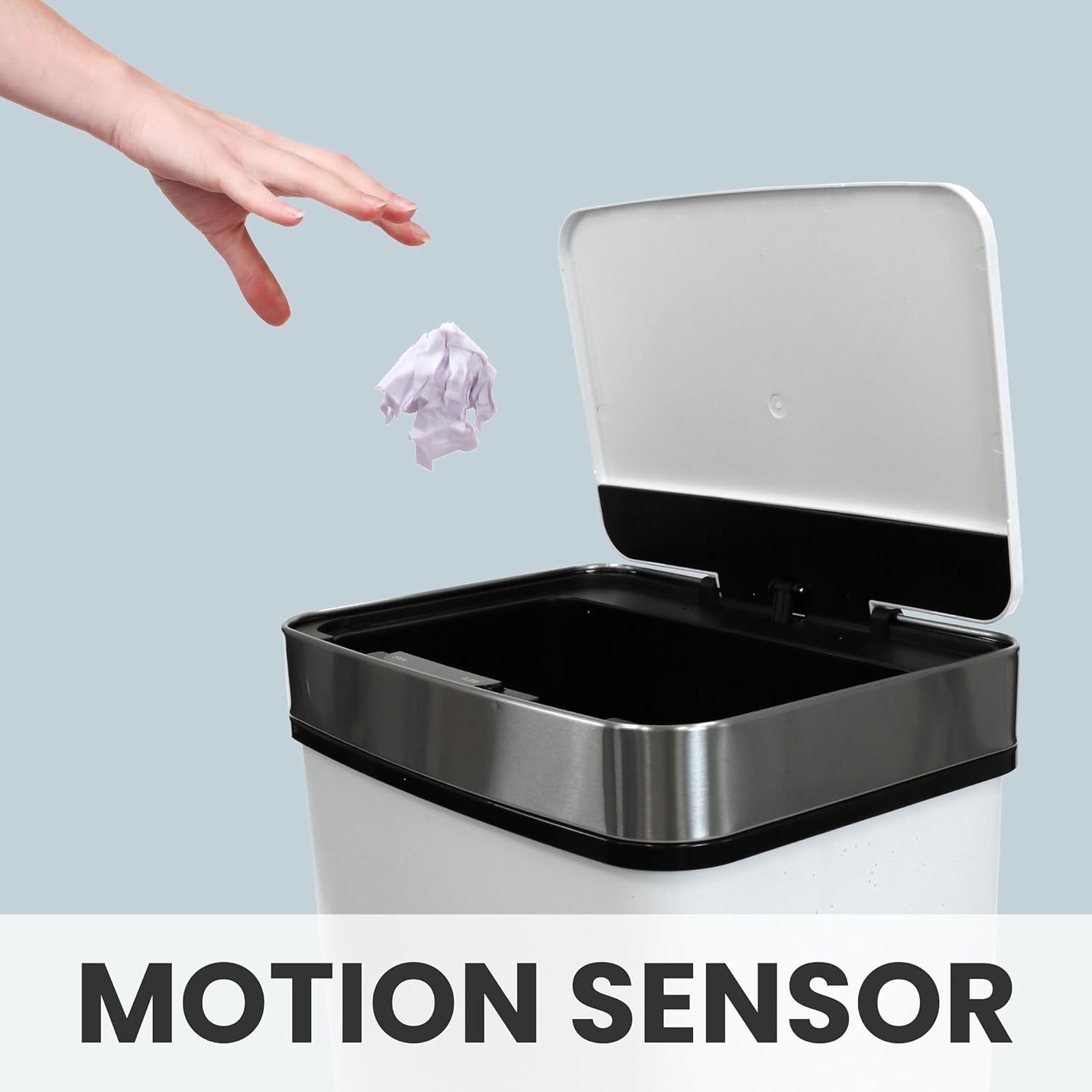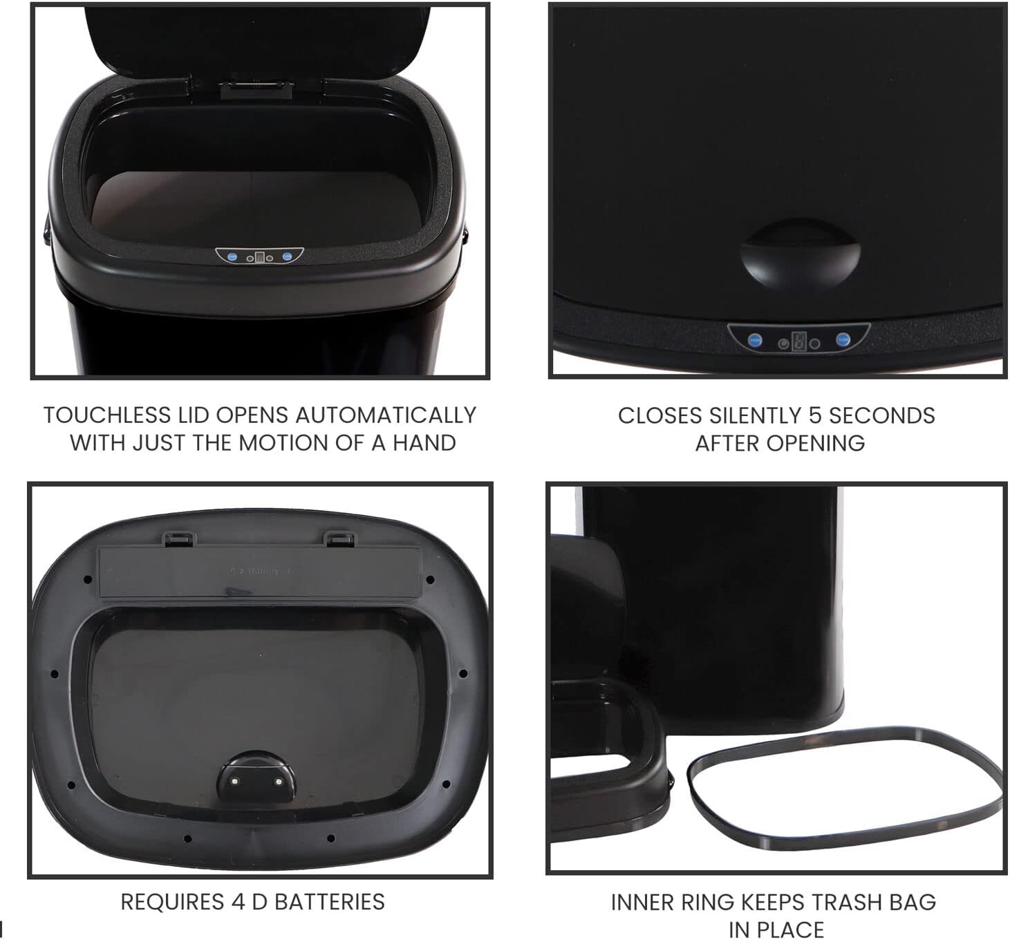 Hanover Home Hands-Free Steel Trash Can with Fingerprint-Resistant Finish and Soft-Close Motion Sensor Lid for Kitchen - 13.2 Gallons (50 Liters) in Black