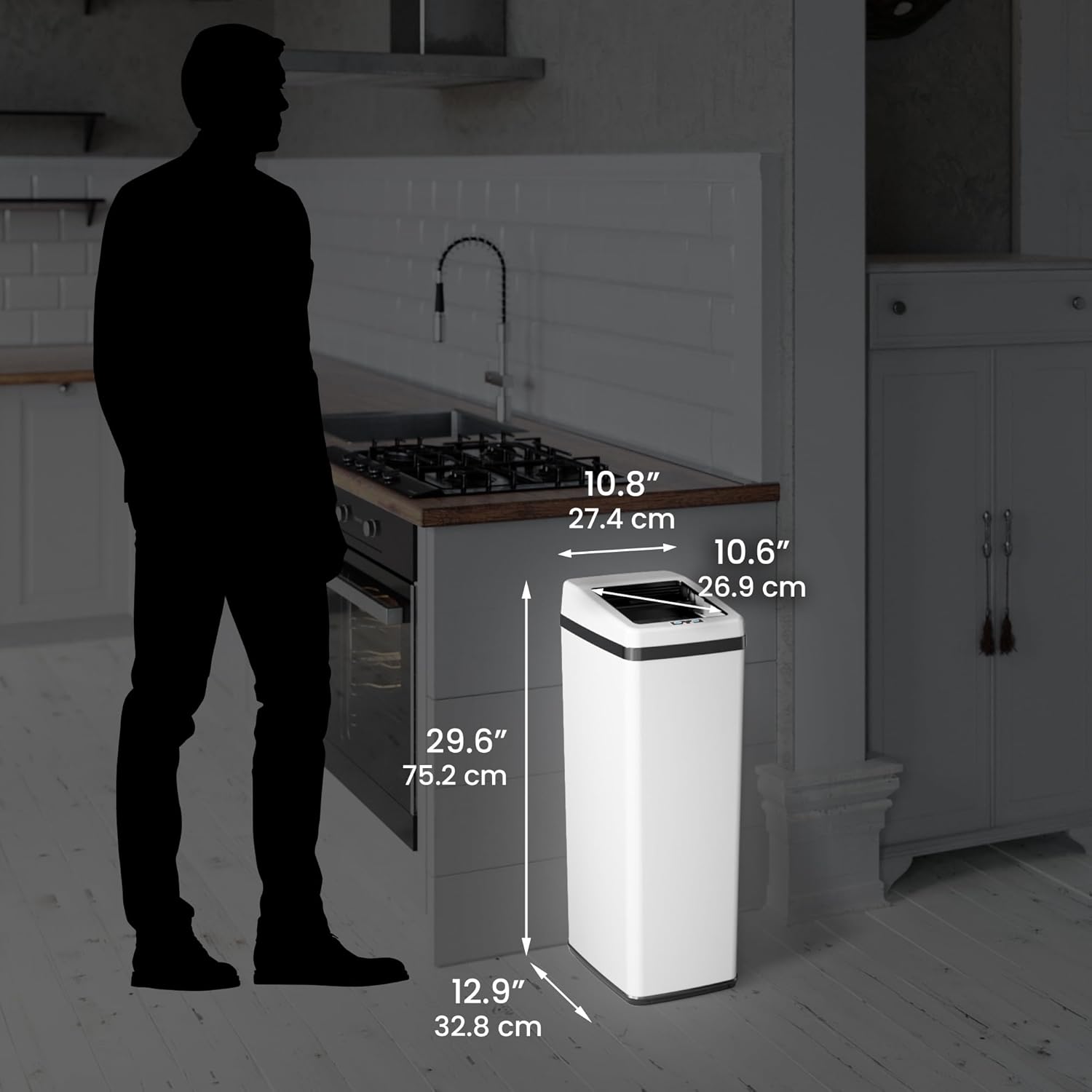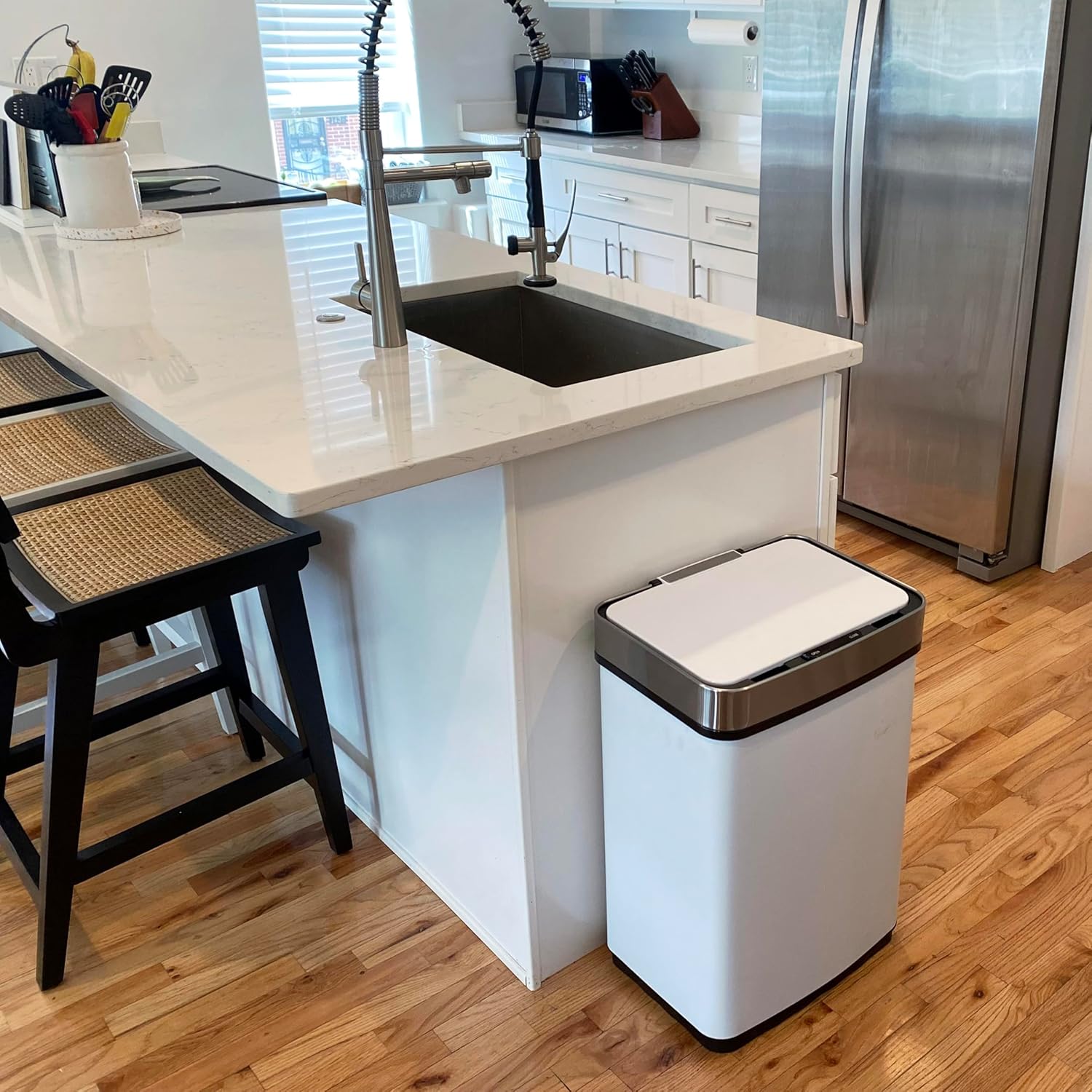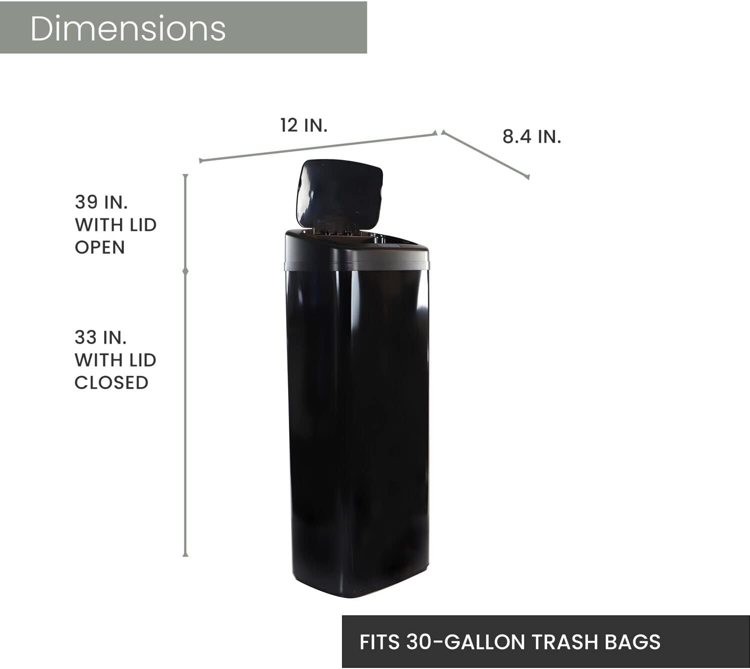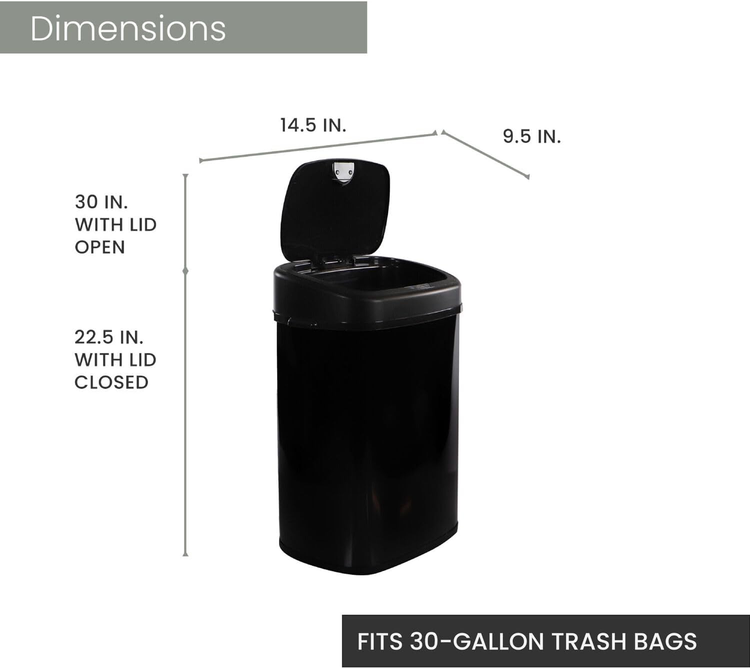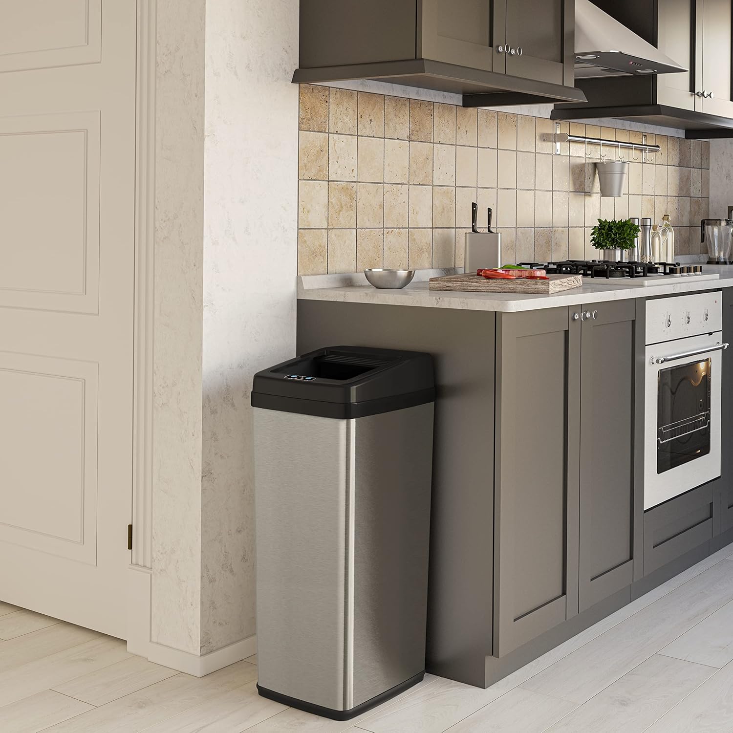 Hanover Home Hands-Free Steel Trash Can with Fingerprint-Resistant Finish and Soft-Close Motion Sensor Lid for Kitchen - 13.2 Gallons (50 Liters) in Black