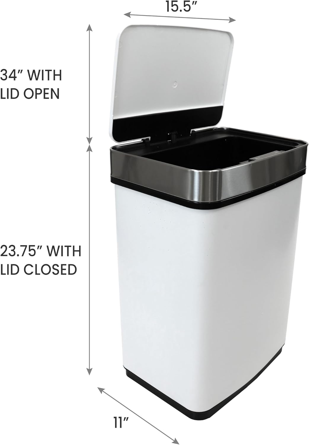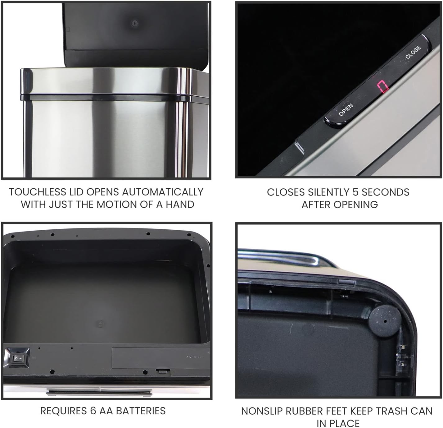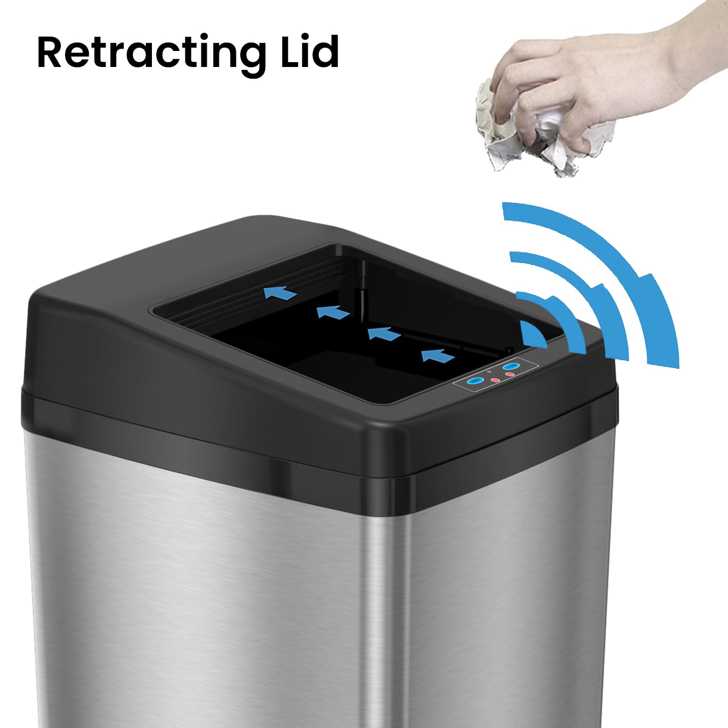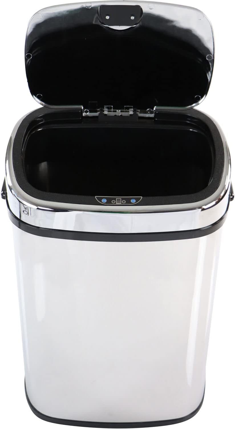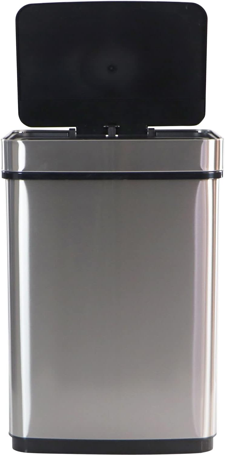 ELLO&ALLO 13 Gallon Kitchen Trash Can with Roll Up Lid, Automatic Touchless Motion Sensor Rectangular Trash Can, Brushed Stainless Steel Finish