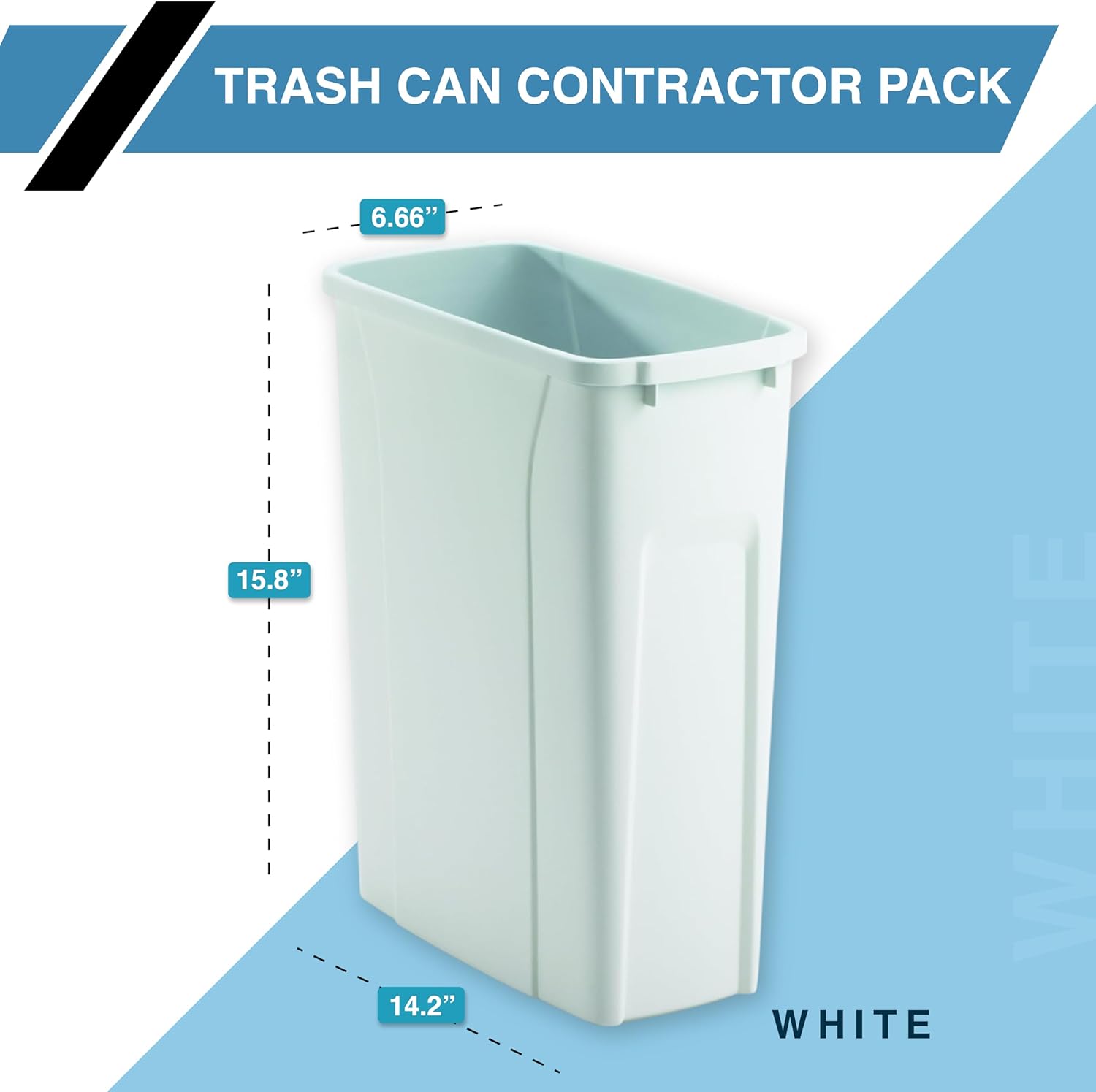 Knape & Vogt 35qt Trash Can Contractor Pack of 6ea, 17.5" by 14.25" by 9.32", Platinum