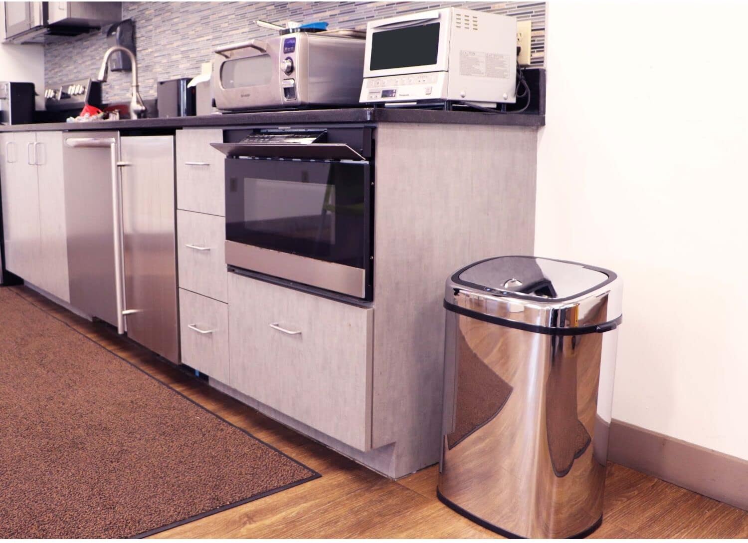 iTouchless 18 Gallon Stainless Steel Semi-Round Open Top Trash Can and Recycle Bin, 68 Liter, Slim and Space-Saving Design for Home, Office, Kitchen, Restaurant, Restroom, Large Capacity