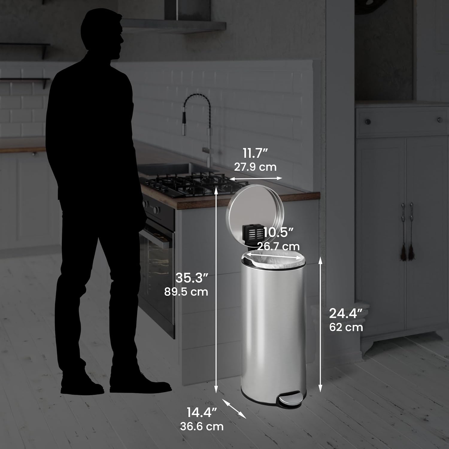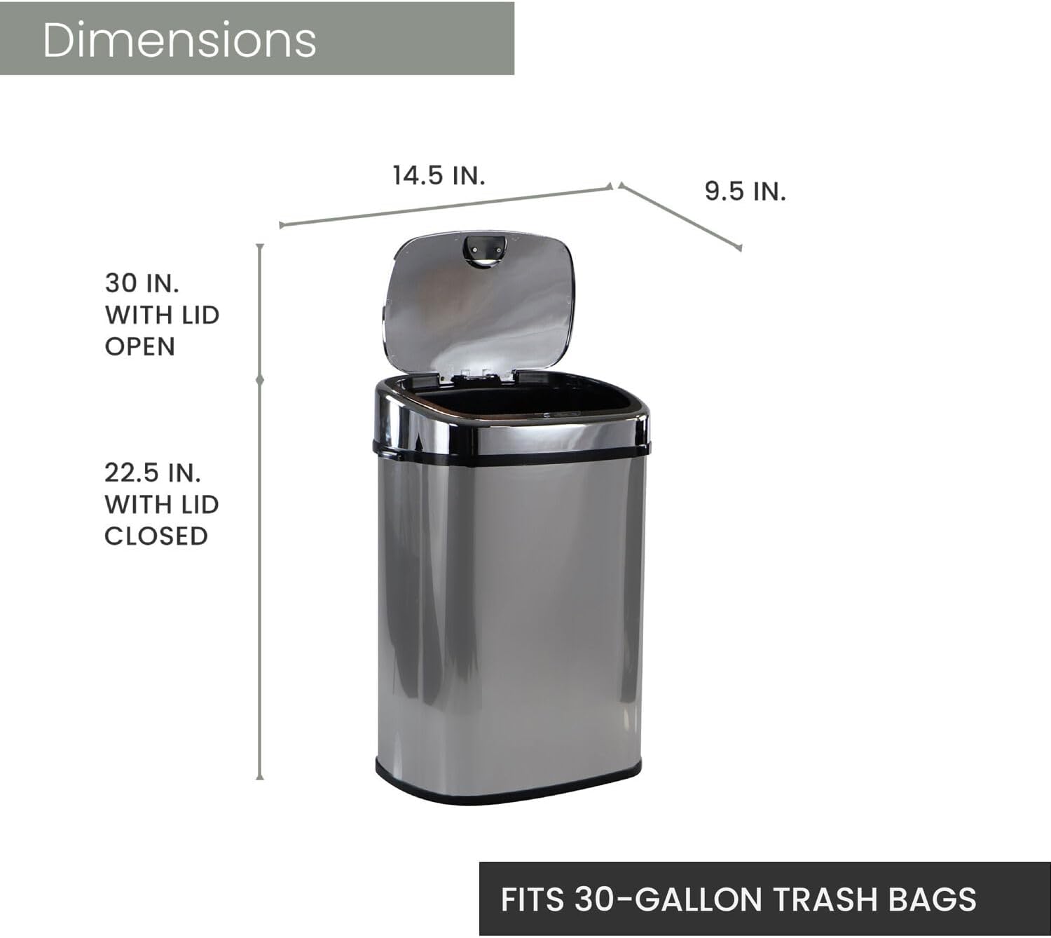 Garvee 8 gal Touchless Motion Sensor Trash Can, Automatic Kitchen Trash Can with Lid, 30 L Stainless Steel Smart Garbage Can for Home Bathroom Living Room Office