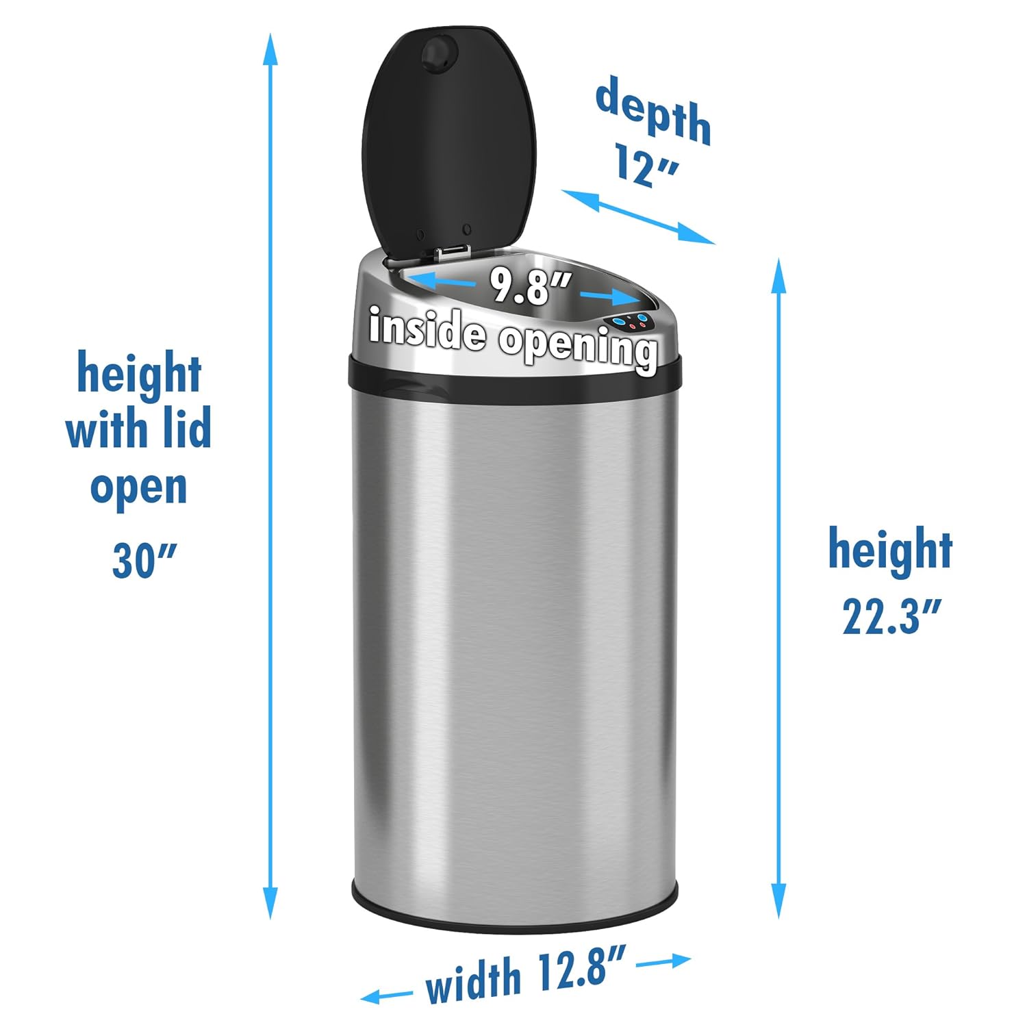 iTouchless 18 Gallon Commercial Size Touchless Sensor Trash Can with Odor Filter, 68 Liter Automatic Garbage Bin, Silver, Round Stainless Steel, Model Number: IT18RC-1
