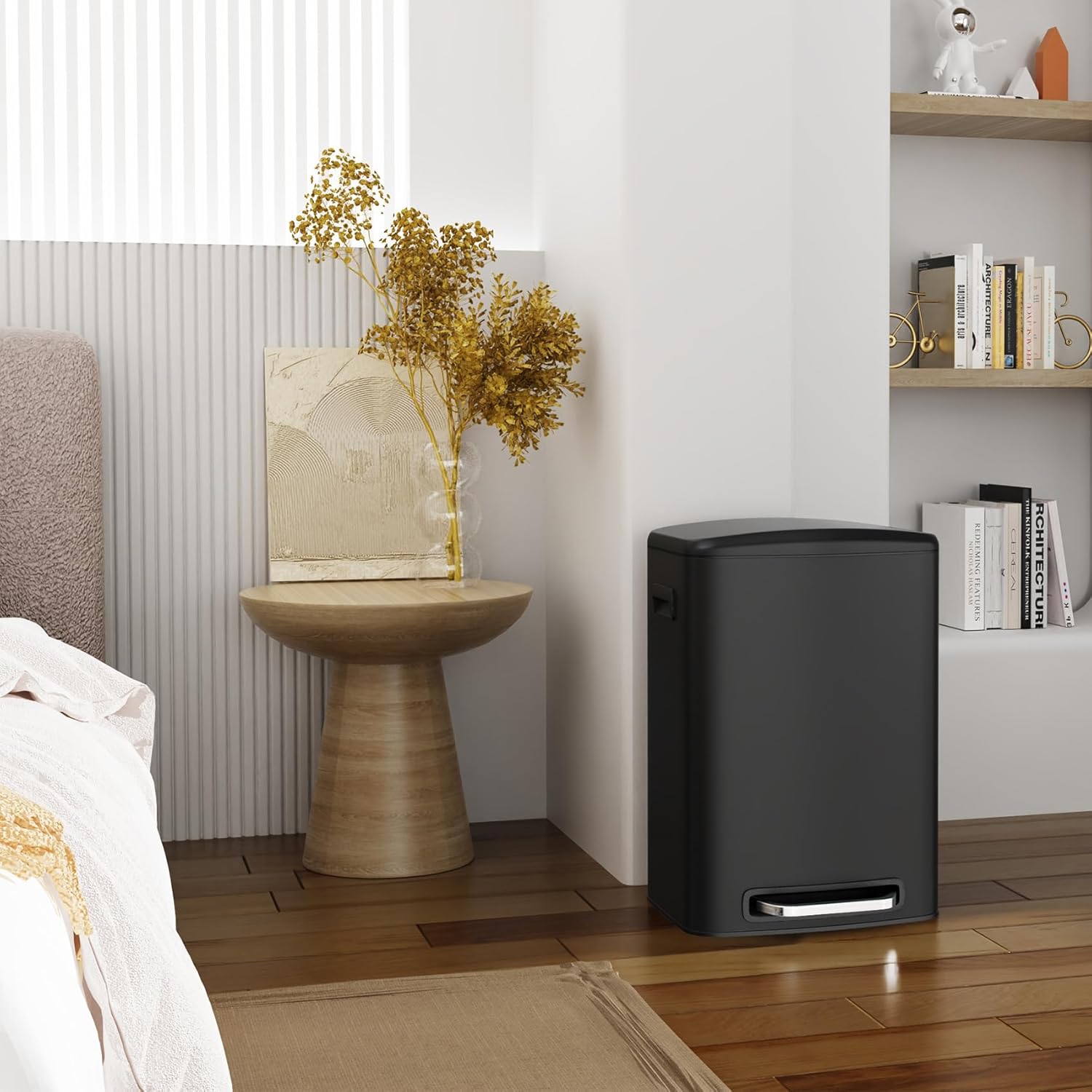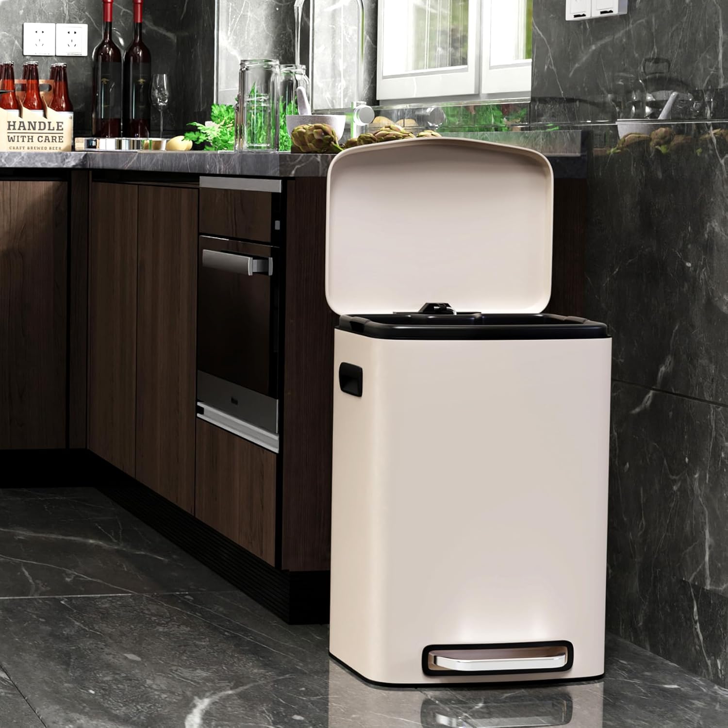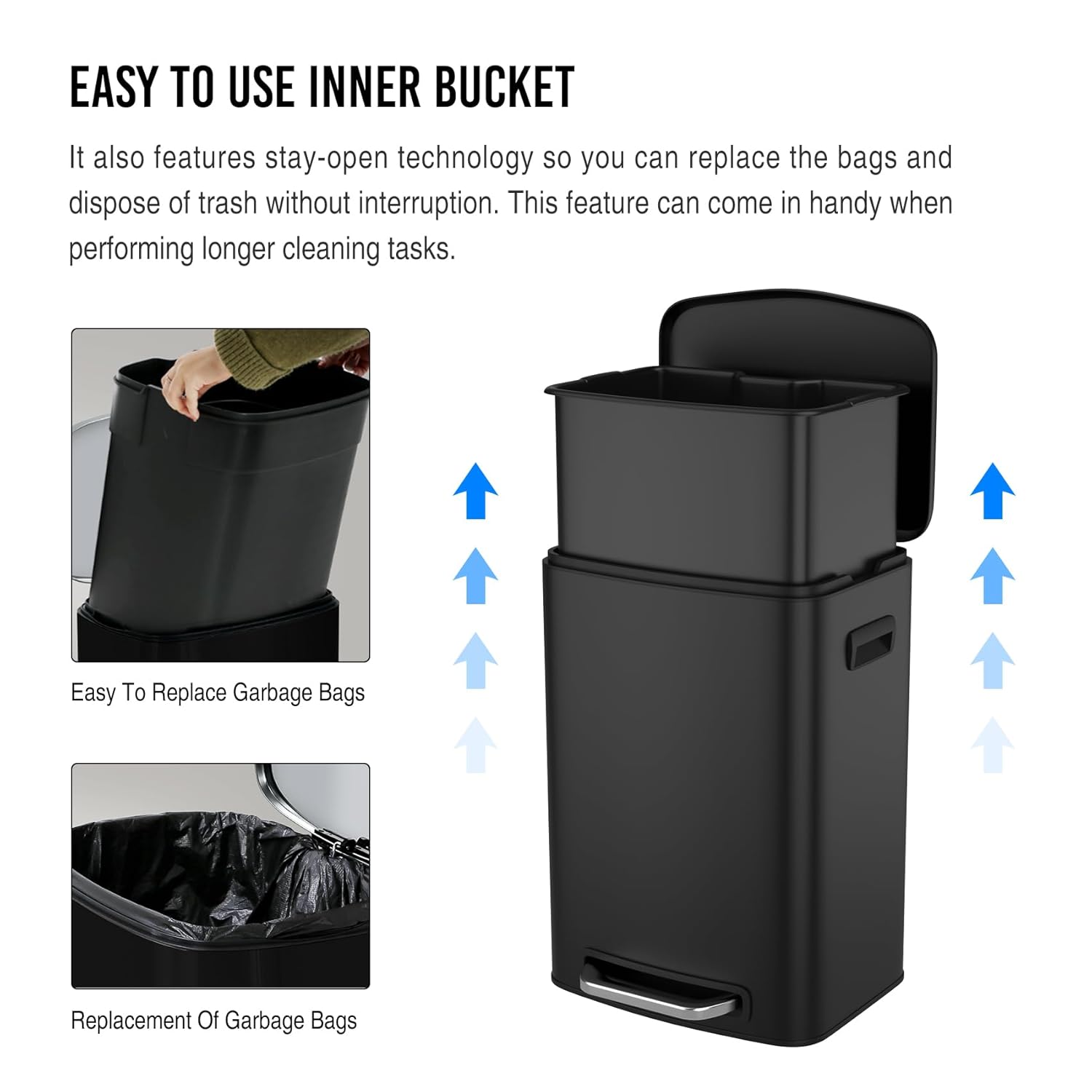 GarveeHome 56 L/14.8 gal Step-On Kitchen Trash Can with Butterfly Lid,2 * 7.4 gal Dual Compartments Garbage Can with Wing Lid, Slim Pedal Stainless Steel Trash Bin with Removable Buckets