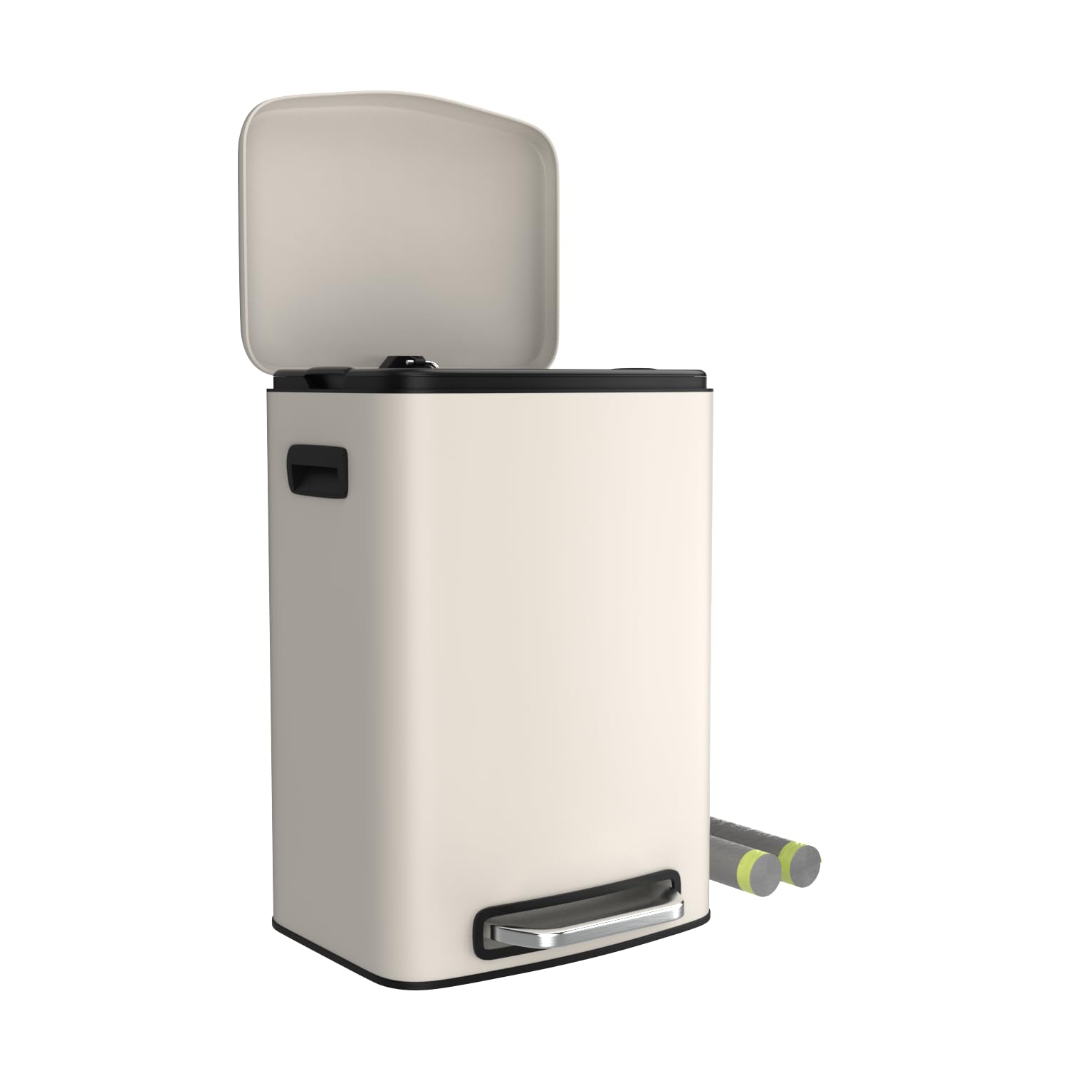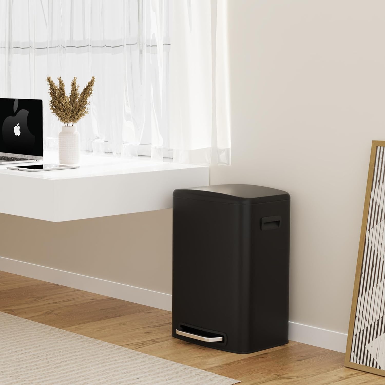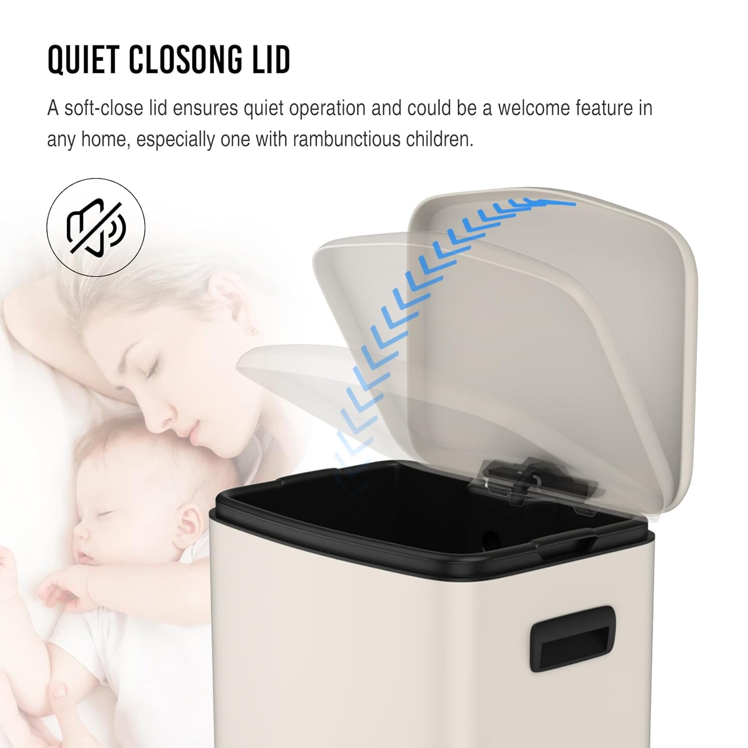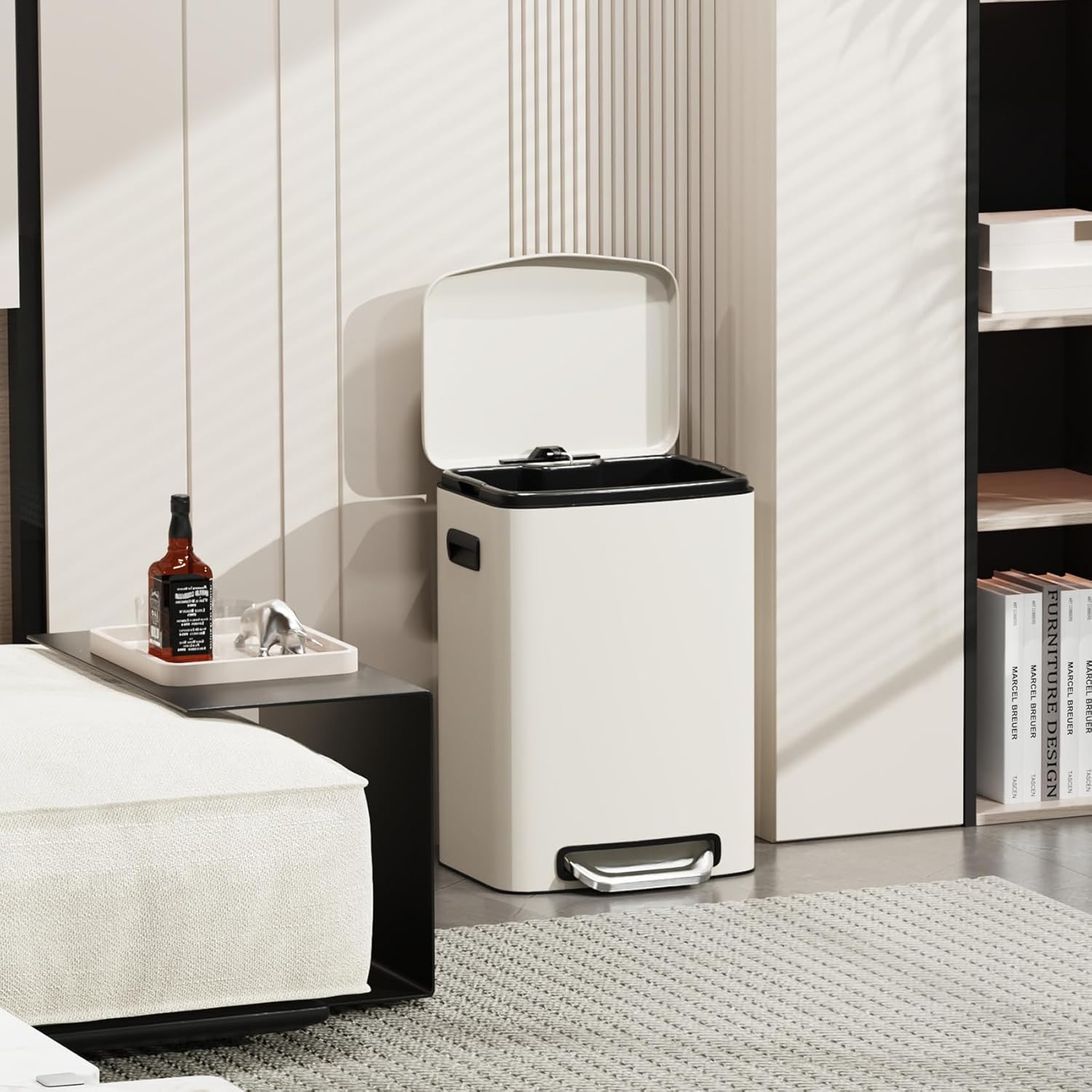 GarveeHome 56 L/14.8 gal Step-On Kitchen Trash Can with Butterfly Lid,2 * 7.4 gal Dual Compartments Garbage Can with Wing Lid, Slim Pedal Stainless Steel Trash Bin with Removable Buckets