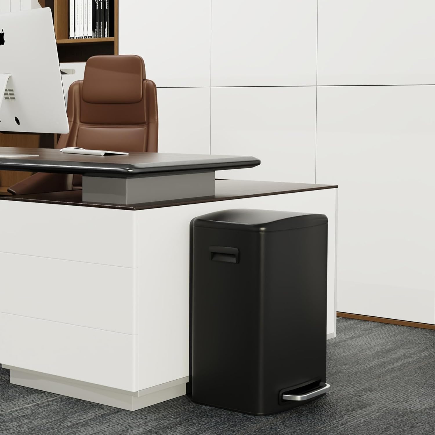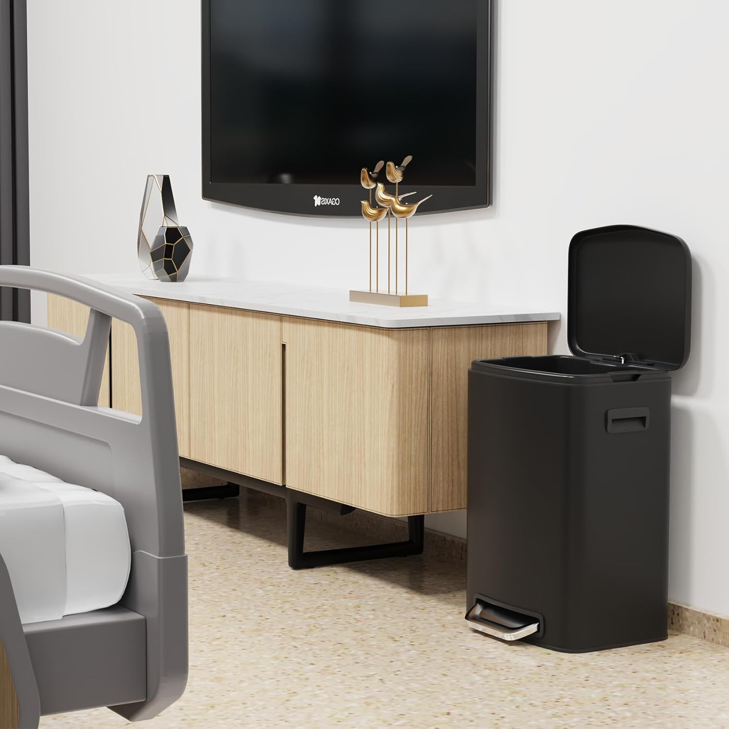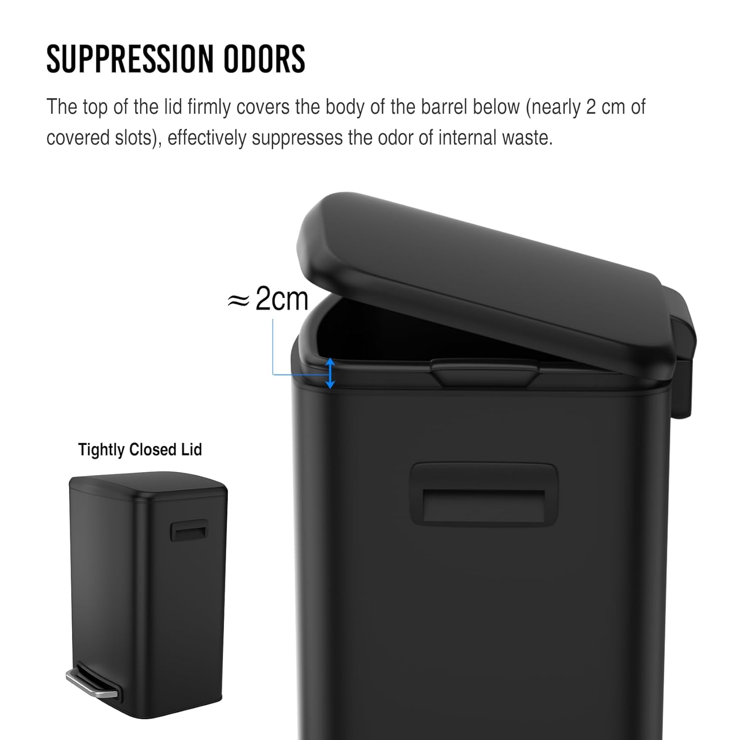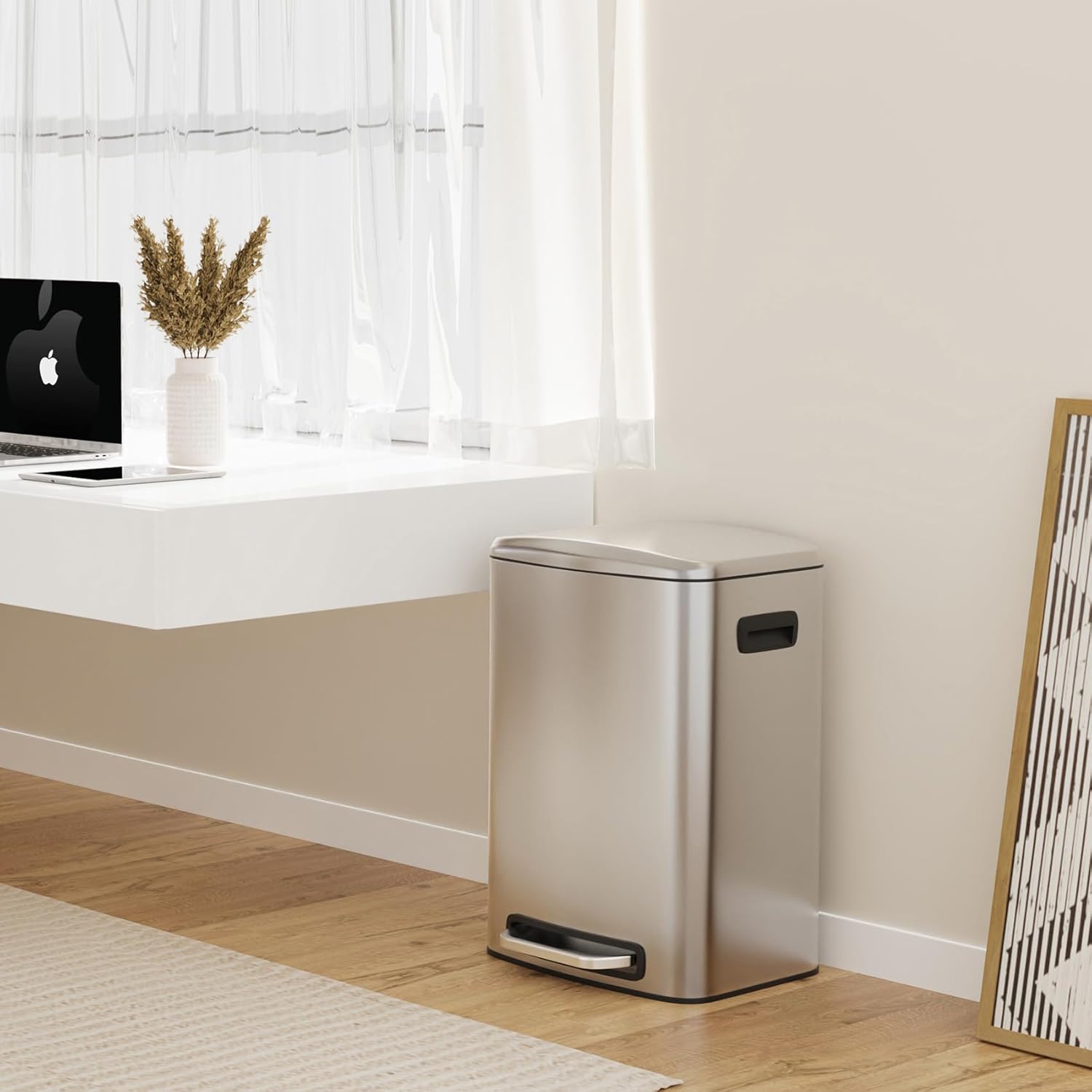 13 Gallon Foot Pedal Large Trash Can with Soft Close Quiet Lid, Stainless Steel Thickened Body Rectangular Garbage Can with 30 Garbage Bags for Home Kitchen, Office, Commercial, Home and More - Silver