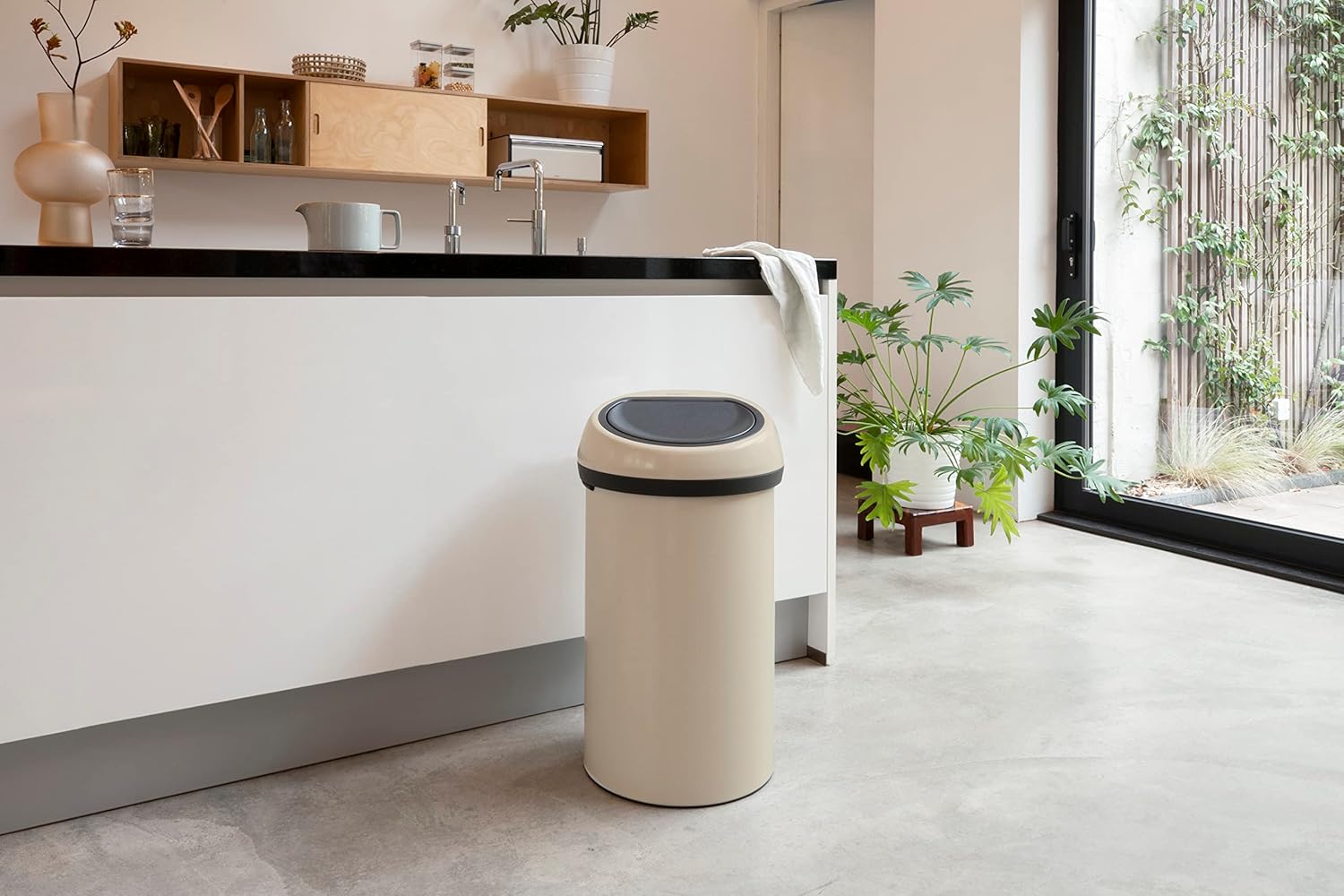 Brabantia 8 Gal Kitchen Touch Trash Can New (Confident Gray) Removable Lid, Soft-Touch Open, Garbage Can + Bags