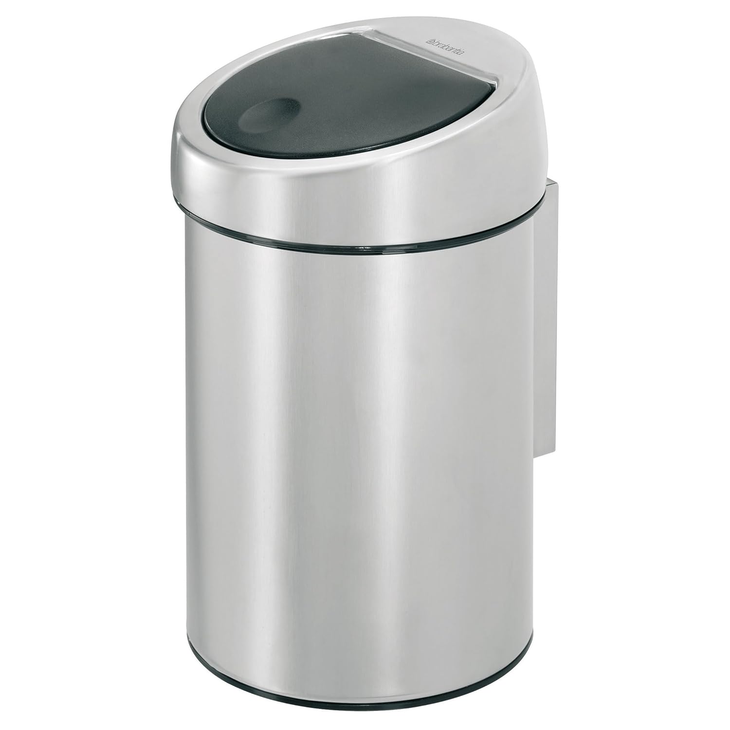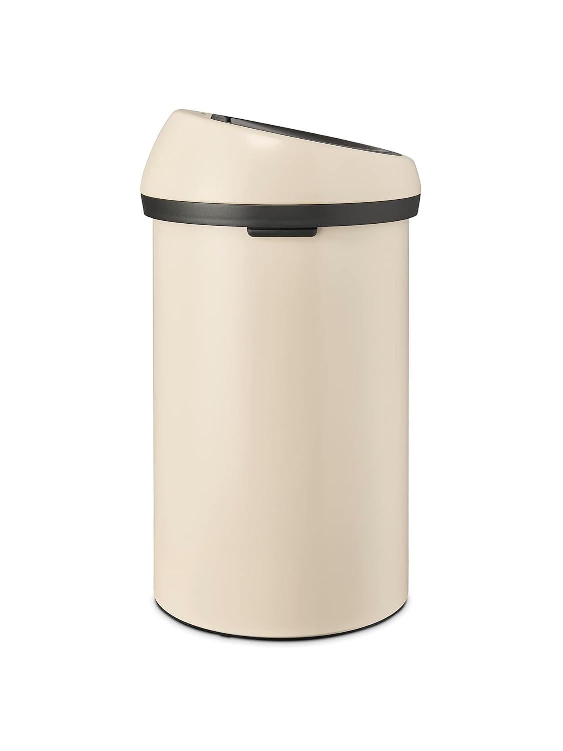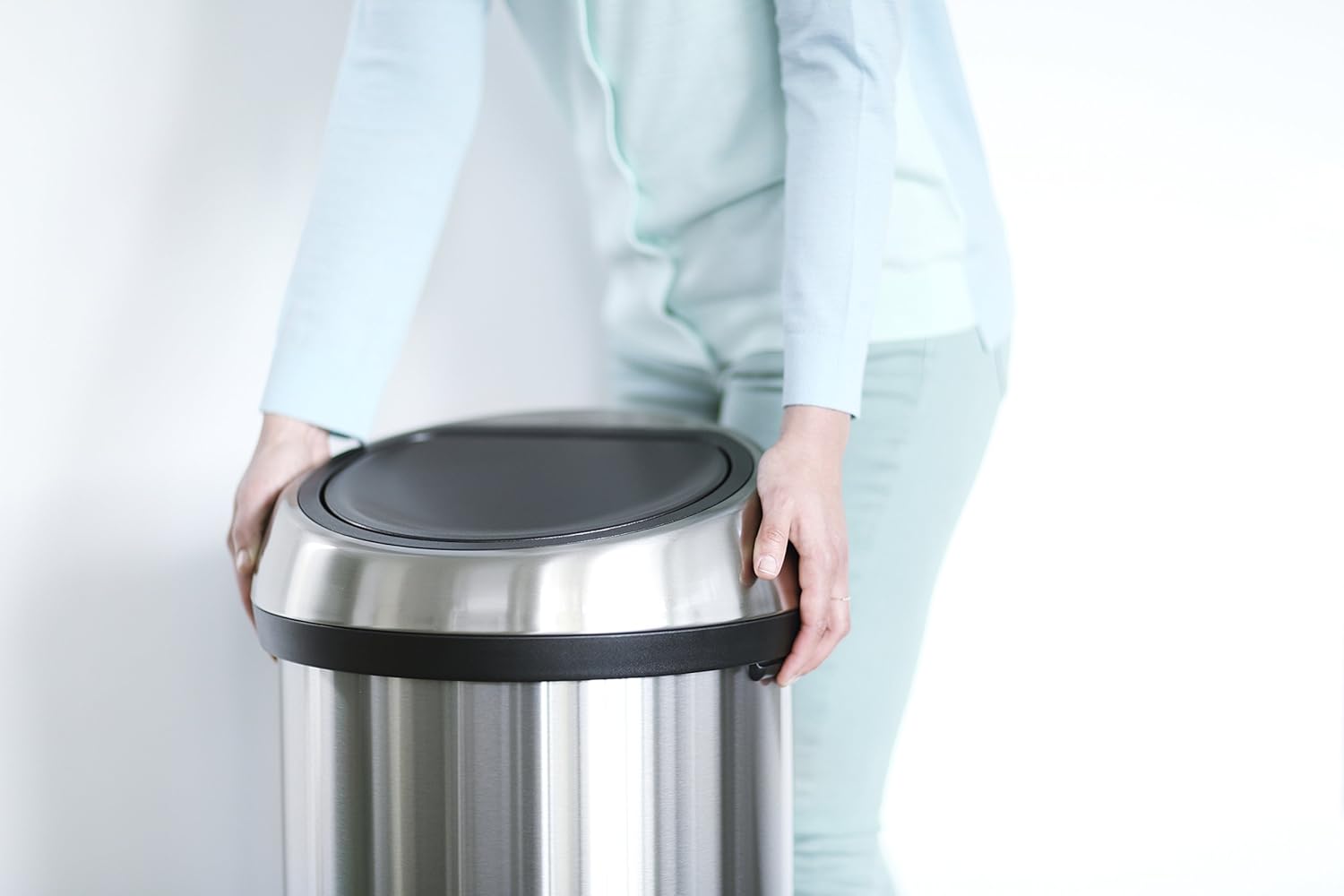 Brabantia 16 Gallon Large Kitchen Touch Bin (Matt Black/Brilliant Steel Lid) Removable Lid, Soft-Touch Open, Easy Clean Rubbish Food Waste Bin