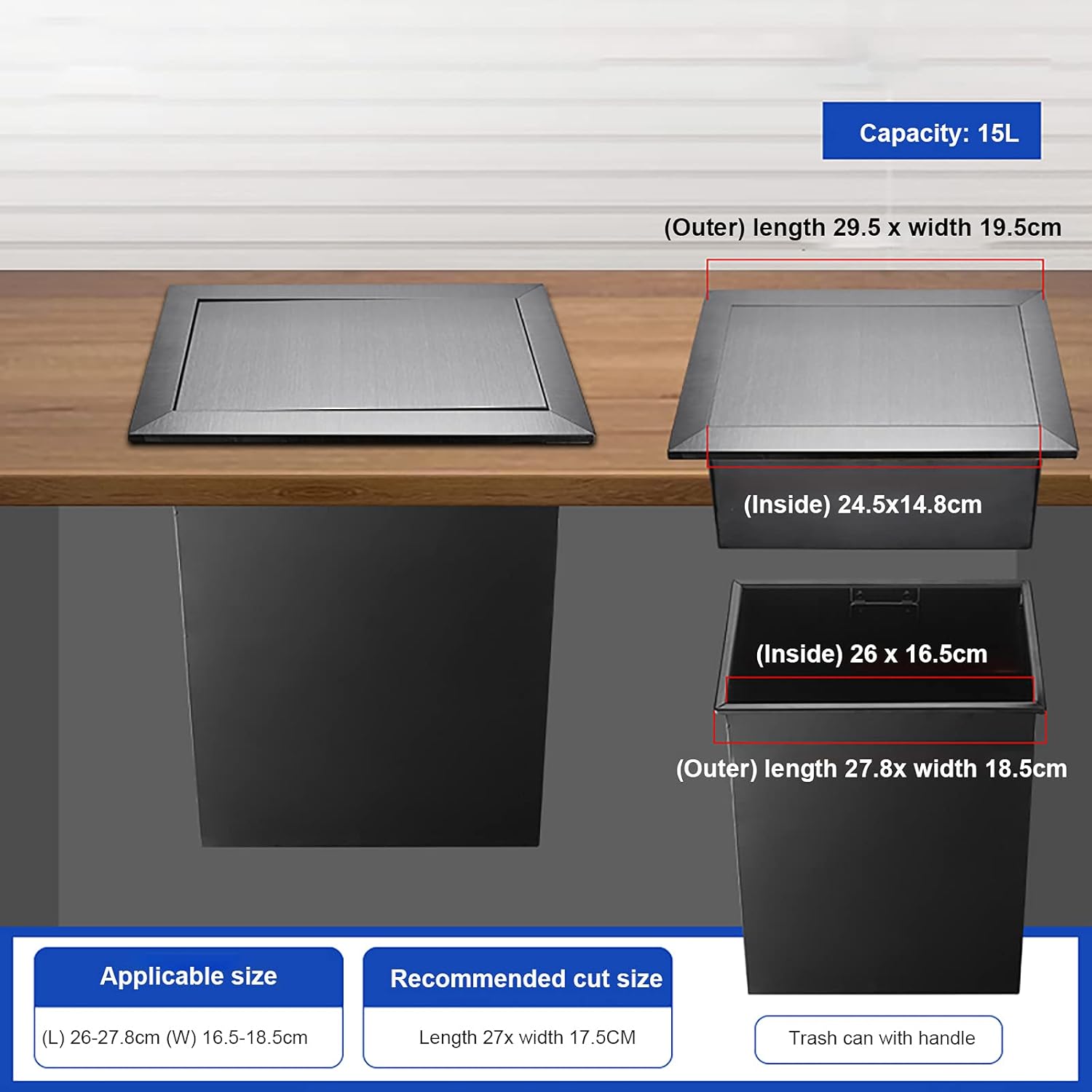 CapriTech Built-in Countertop Trash Bin Lid and Waste Chute Lid - 304 Stainless Steel Balance Flap Cover, Black Trash Grommet Swing Trash Can Lid