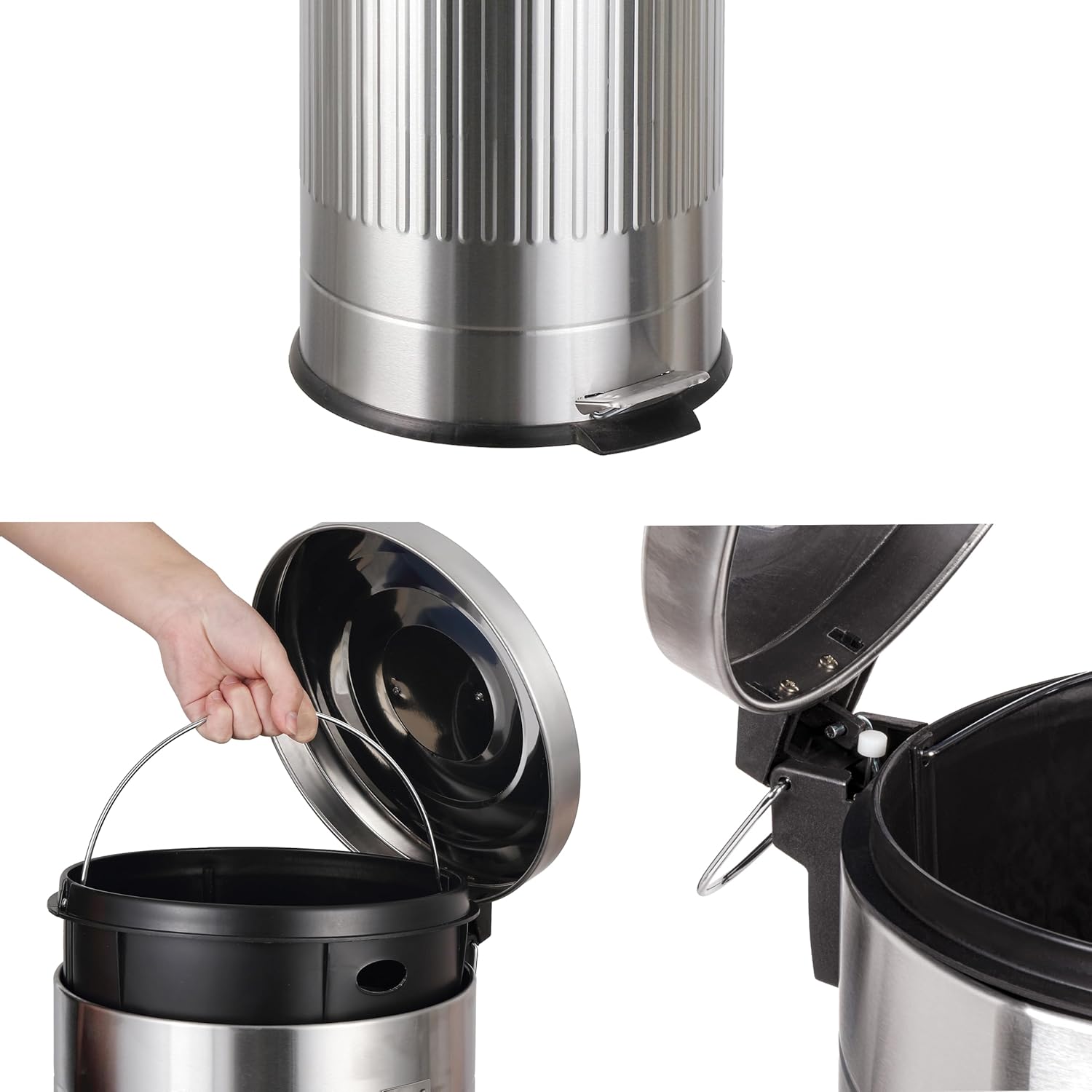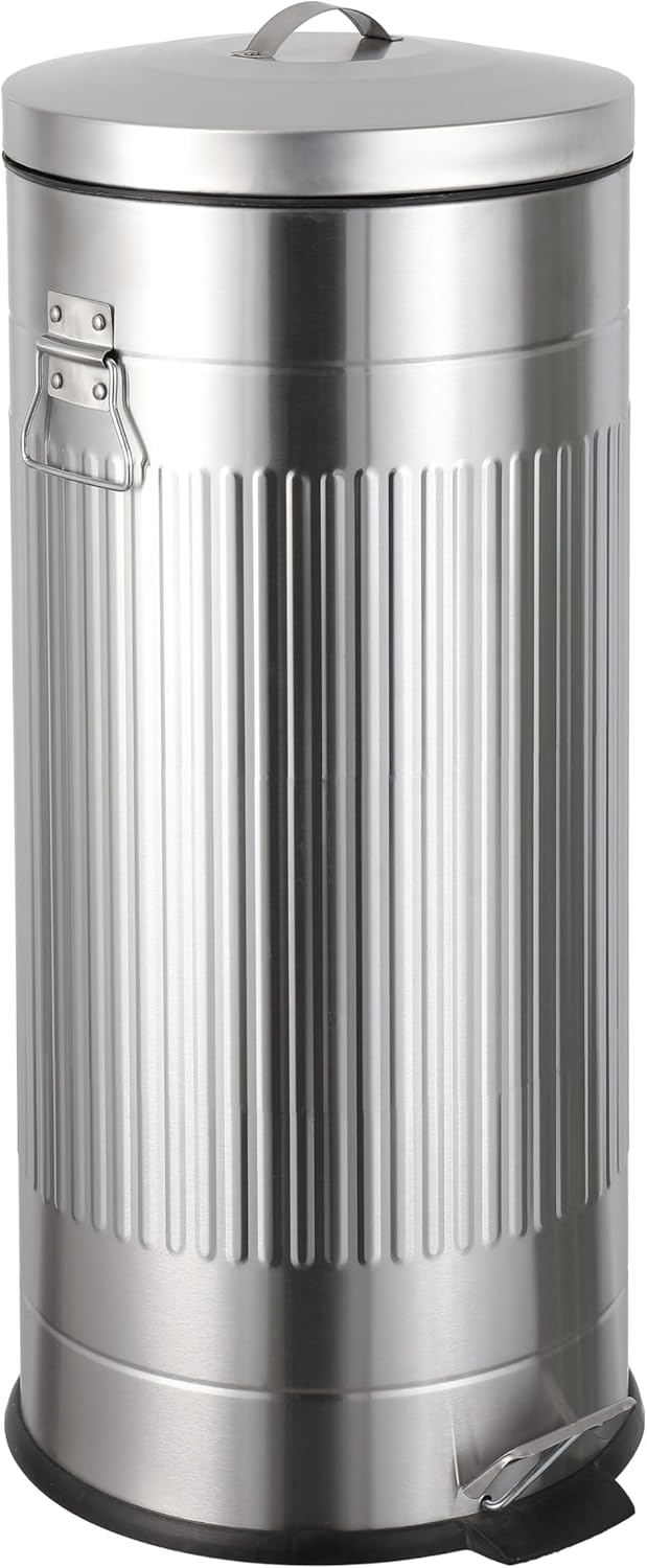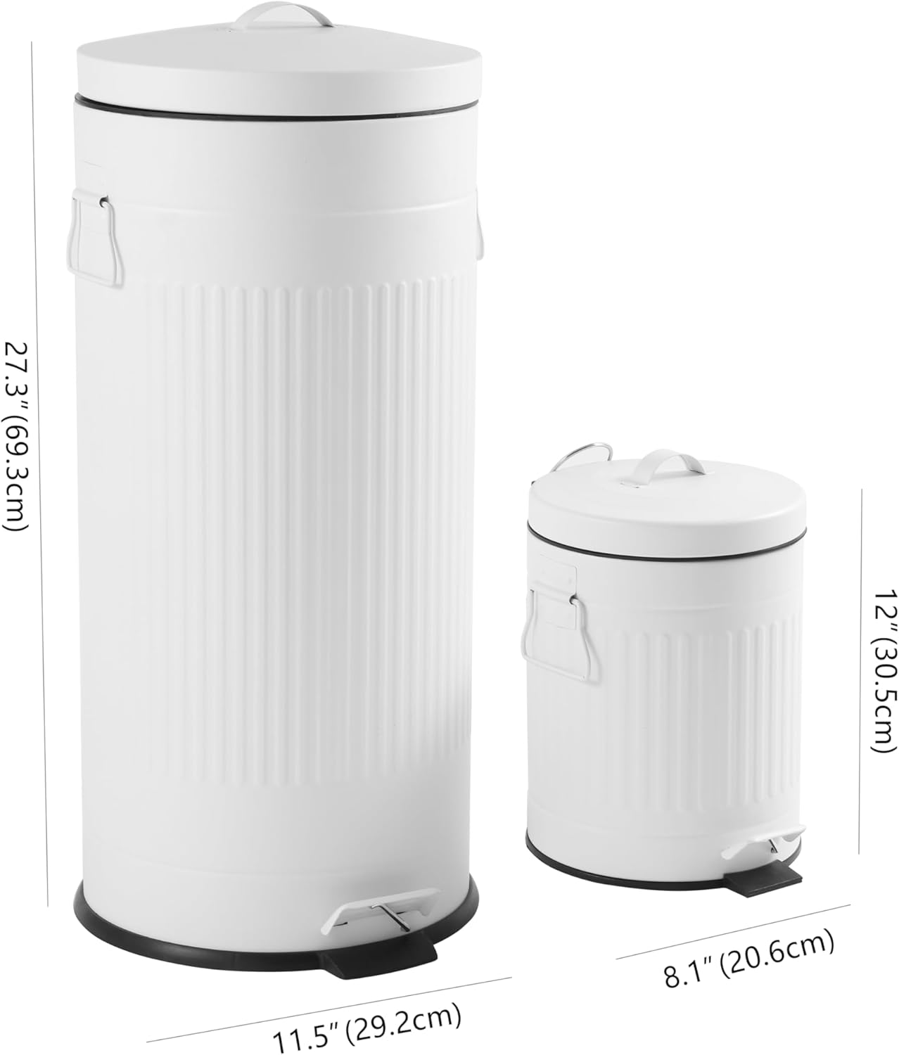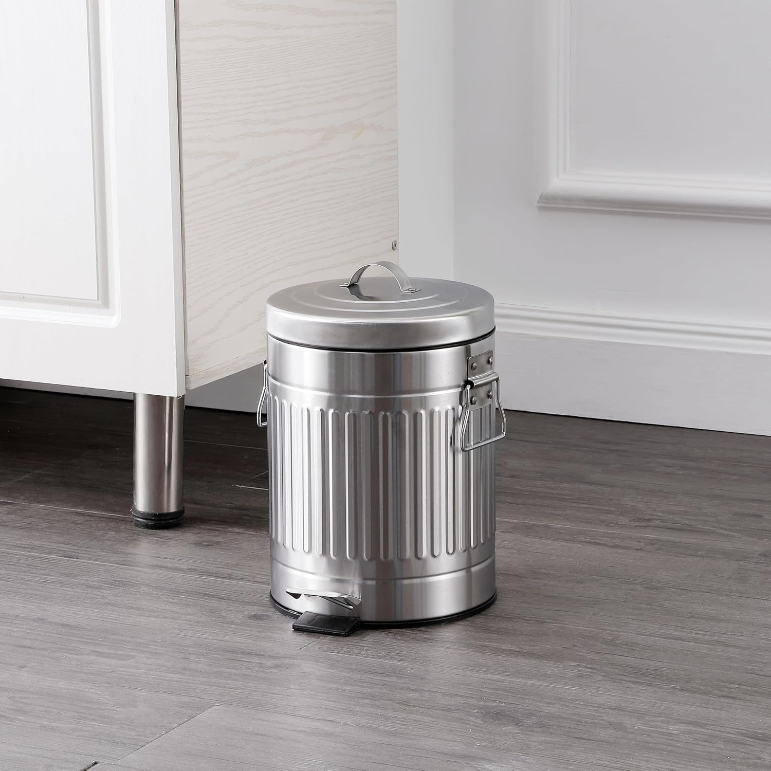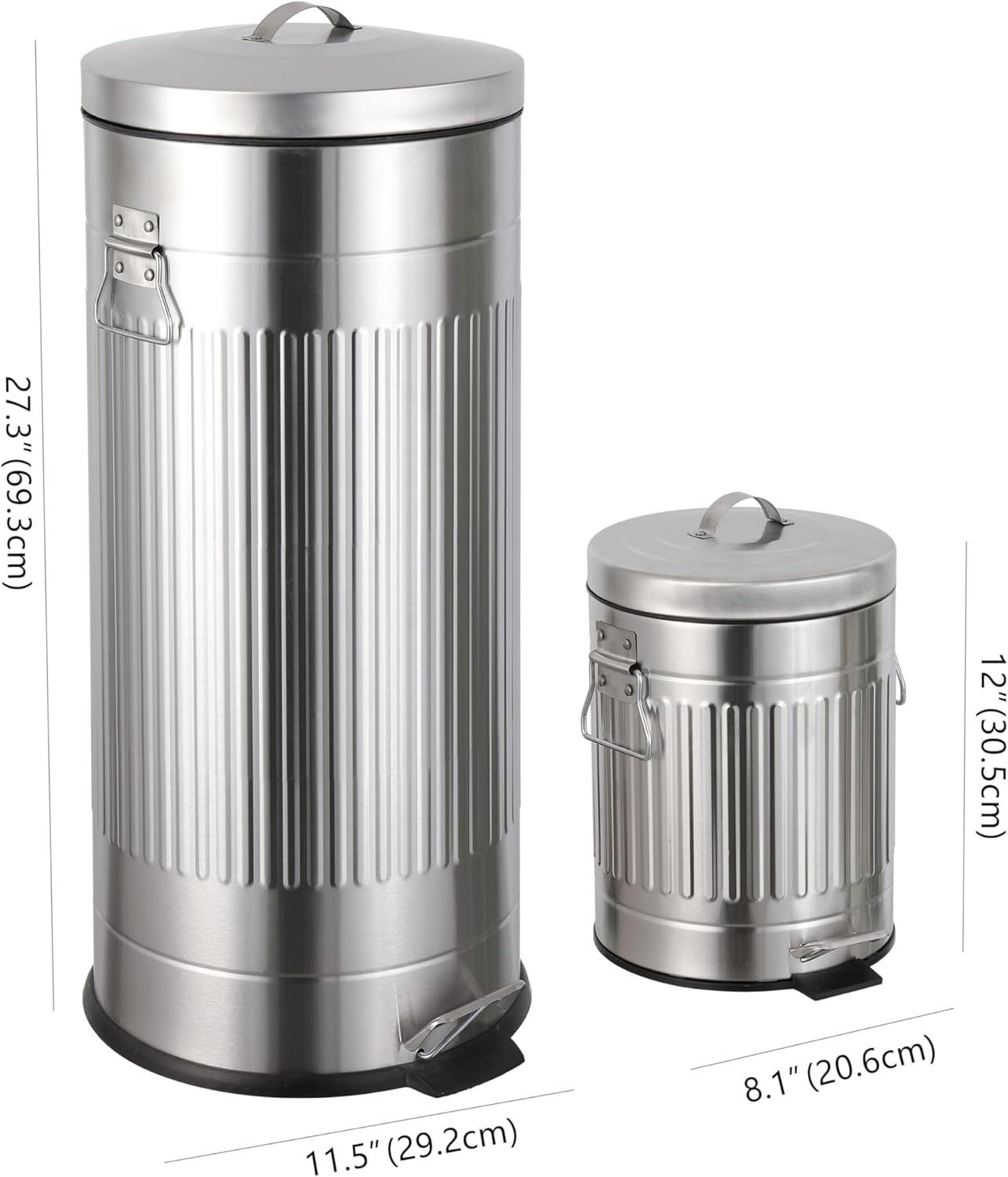 happimess HPM1018E Theo Retro 8-Gallon Step Trash Can with Soft-Close Lid and Free Mini Trash Can for Home, Kitchen, Bathroom, Living Room, Office, Platinum Silver