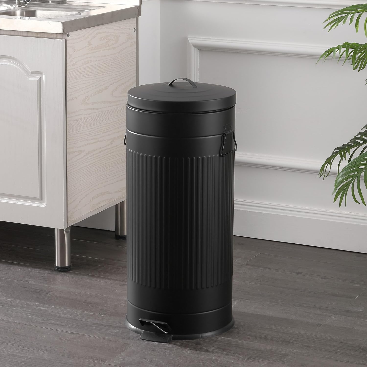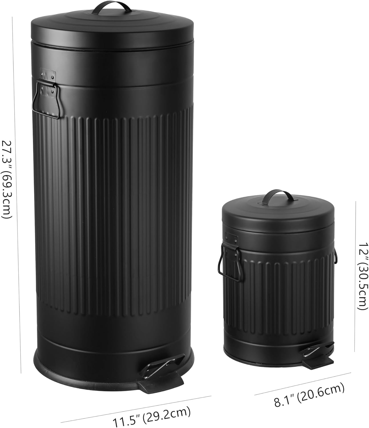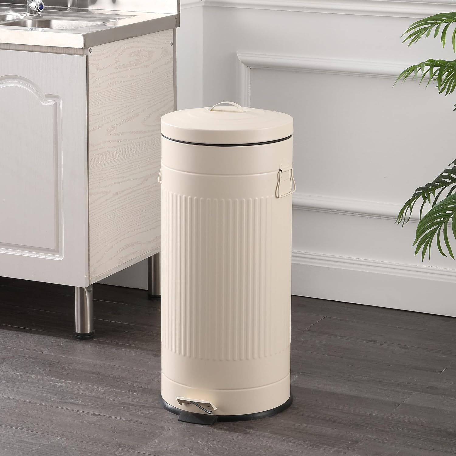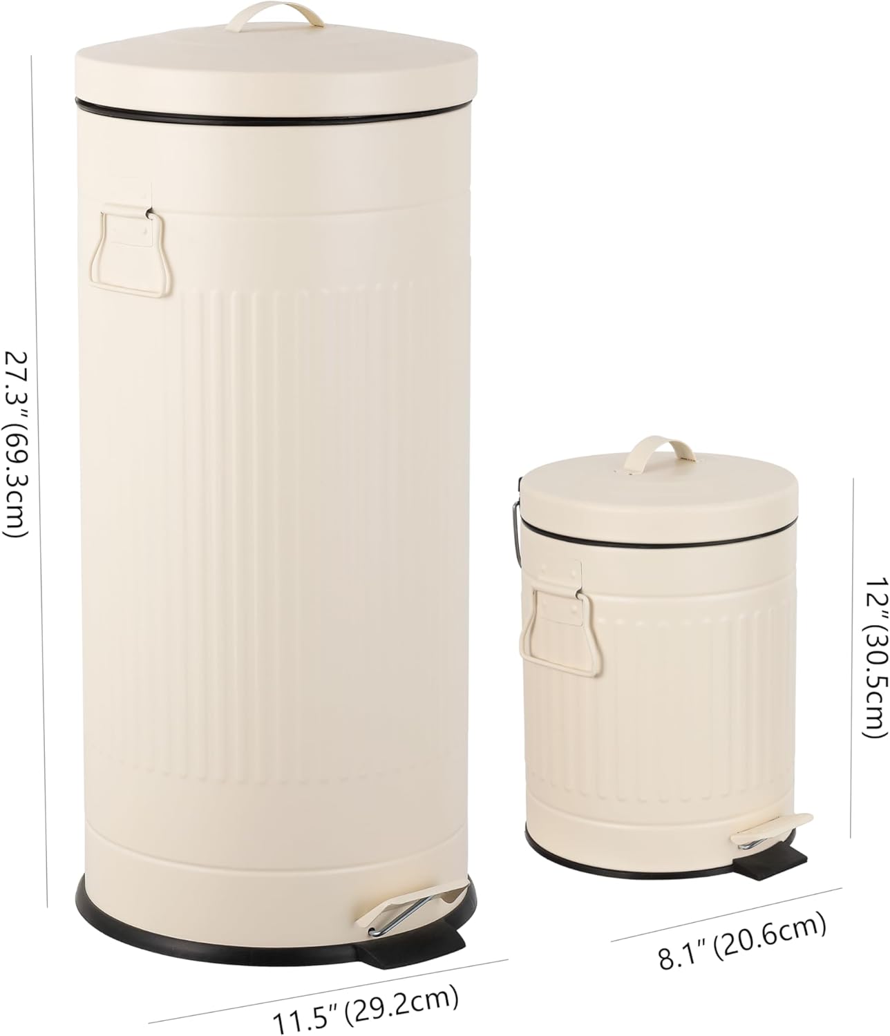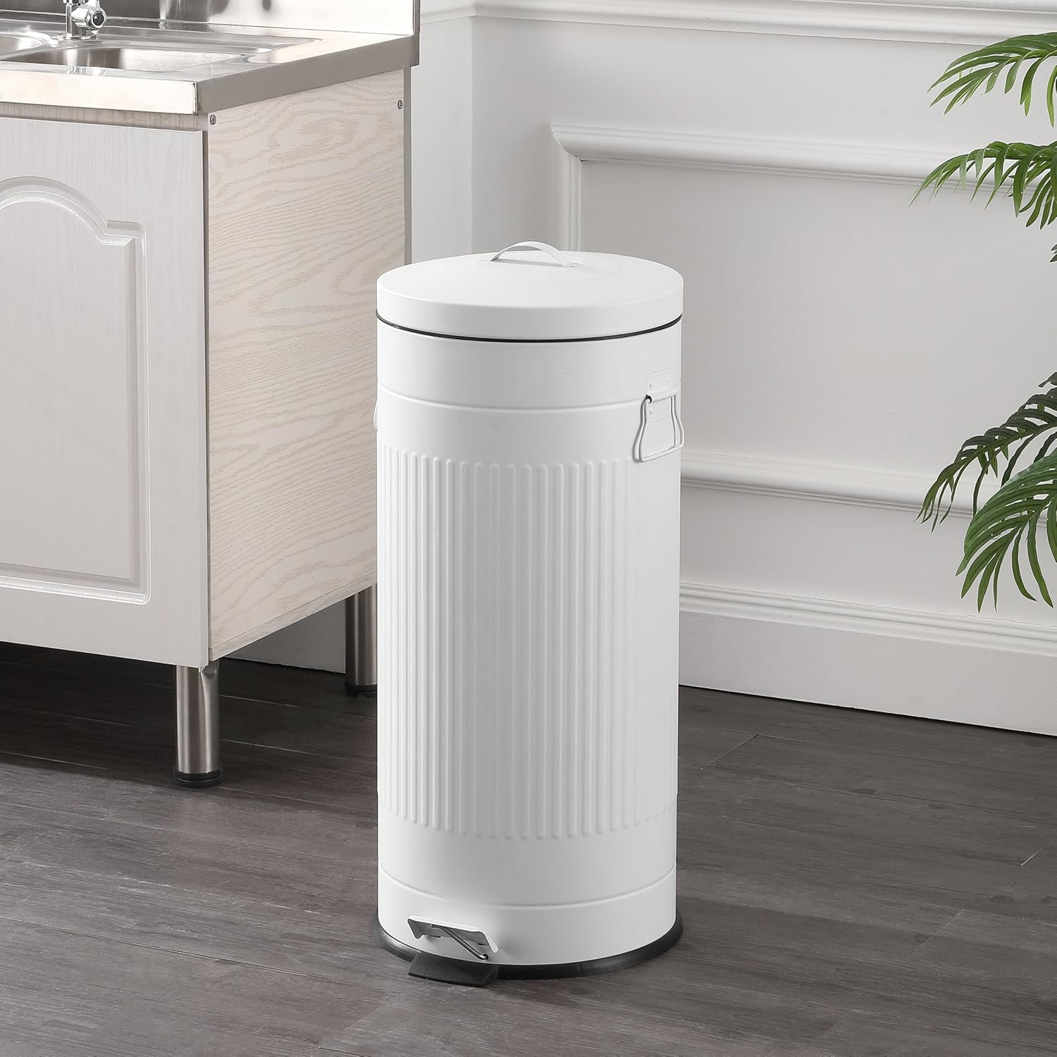 happimess HPM1018E Theo Retro 8-Gallon Step Trash Can with Soft-Close Lid and Free Mini Trash Can for Home, Kitchen, Bathroom, Living Room, Office, Platinum Silver