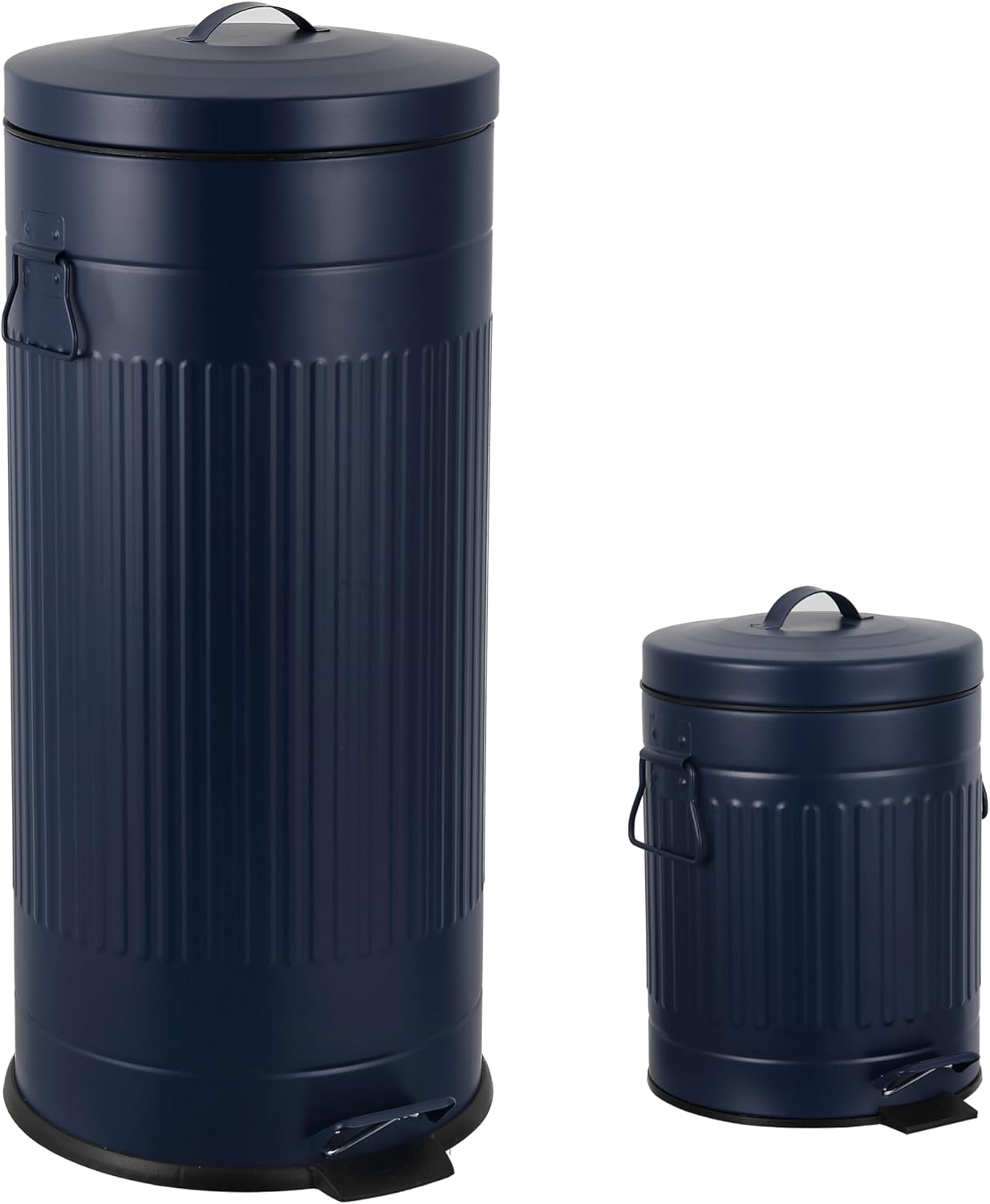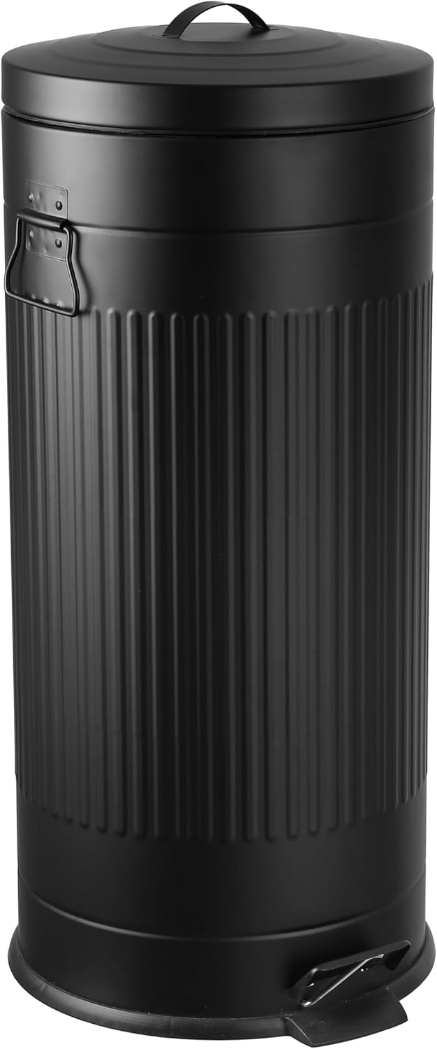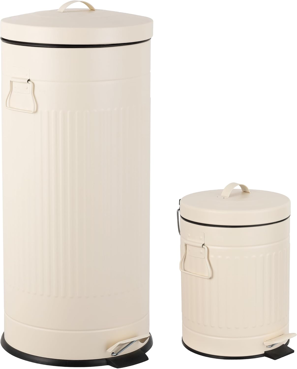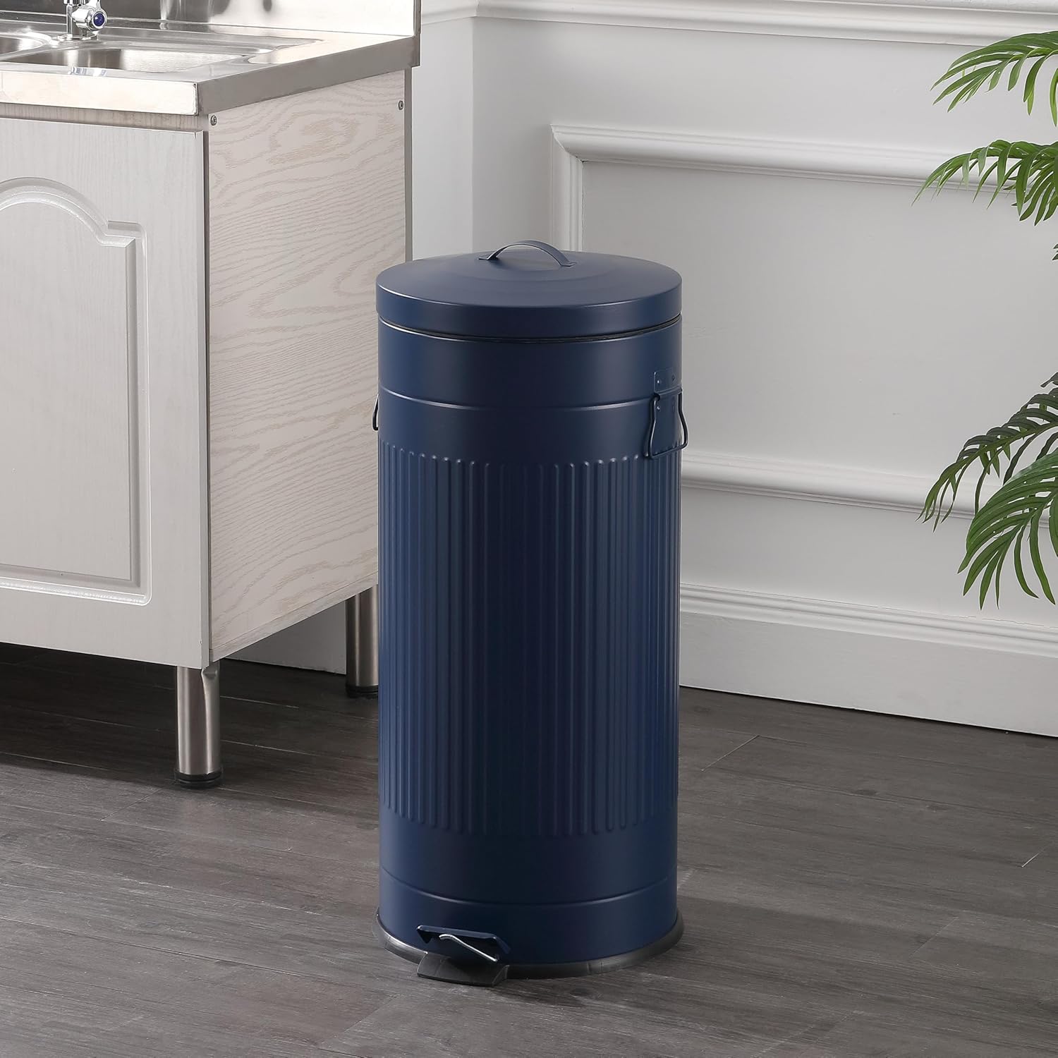 happimess HPM1018E Theo Retro 8-Gallon Step Trash Can with Soft-Close Lid and Free Mini Trash Can for Home, Kitchen, Bathroom, Living Room, Office, Platinum Silver