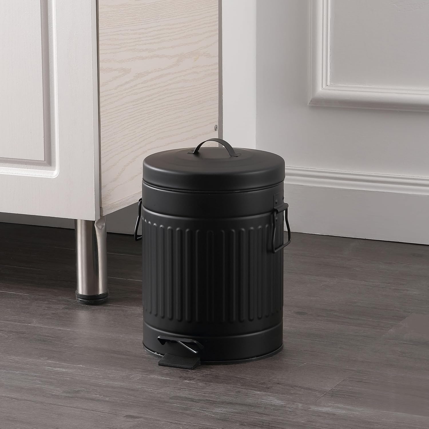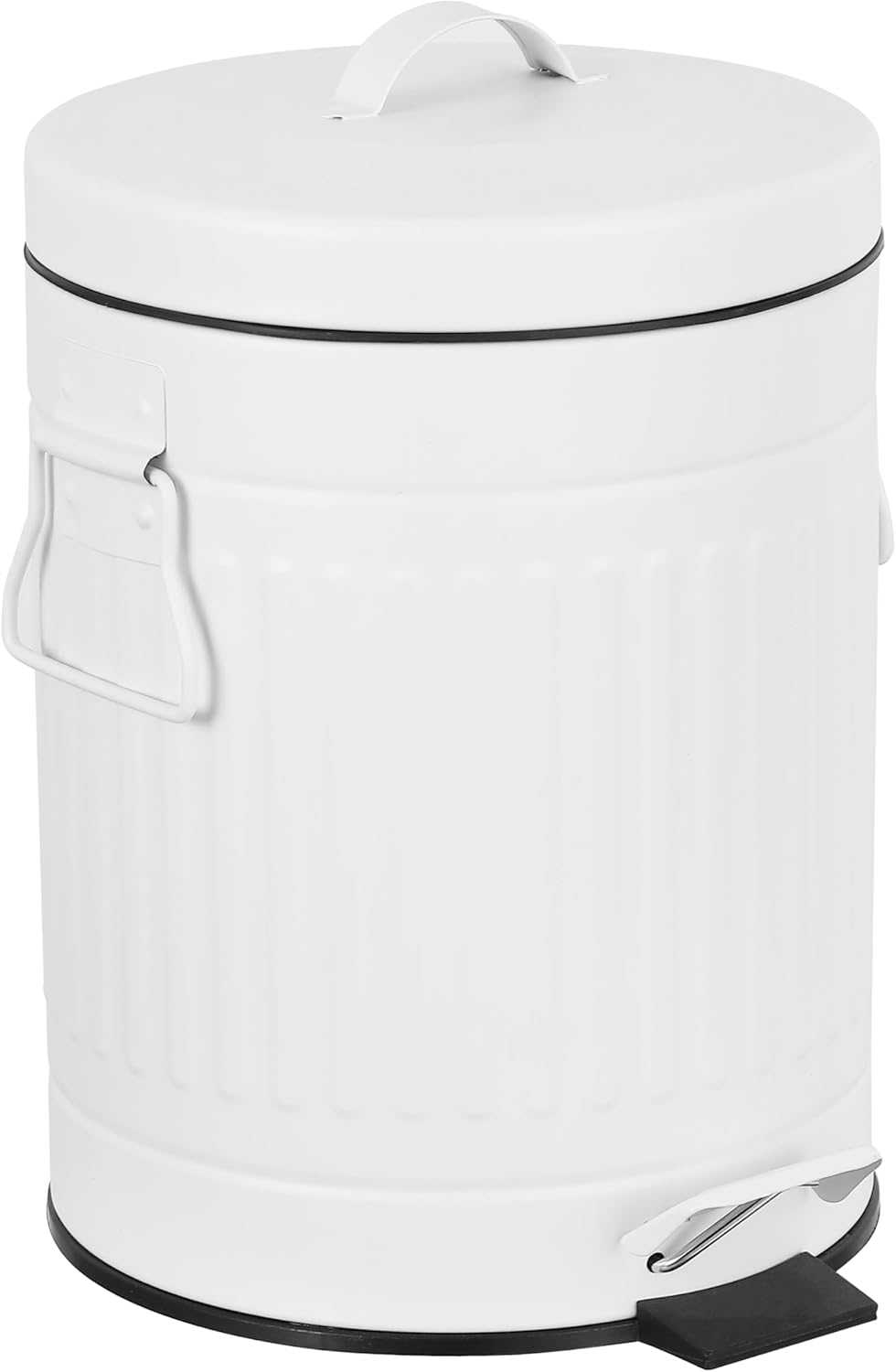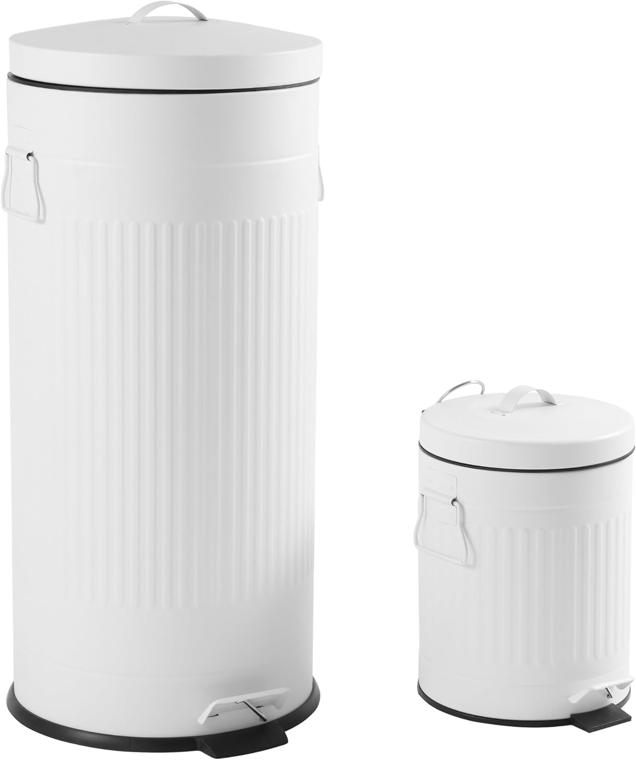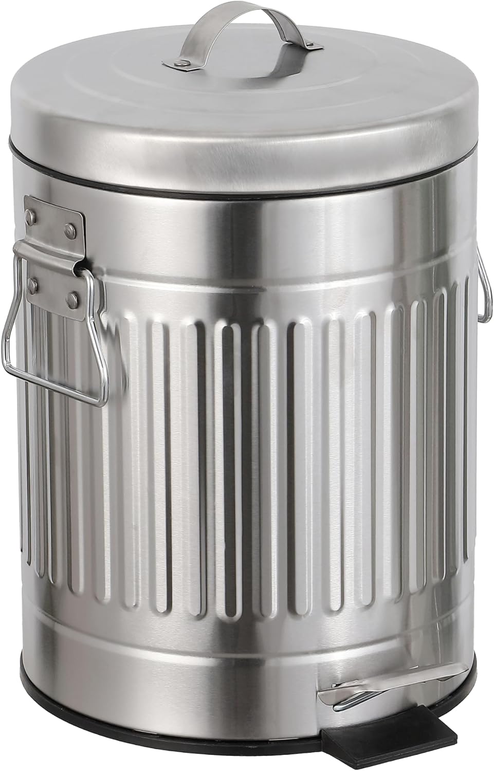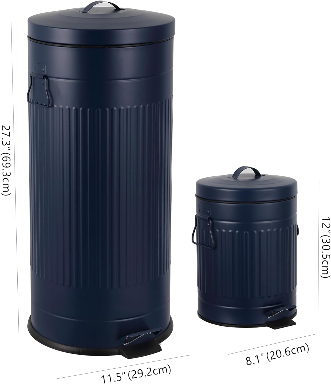 happimess HPM1018E Theo Retro 8-Gallon Step Trash Can with Soft-Close Lid and Free Mini Trash Can for Home, Kitchen, Bathroom, Living Room, Office, Platinum Silver