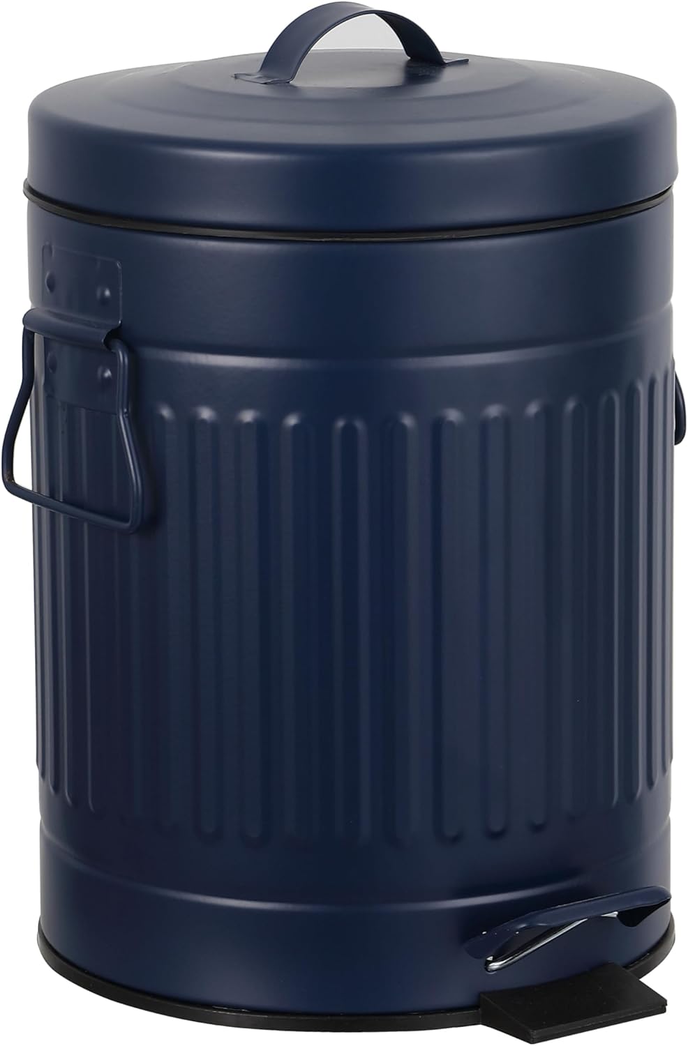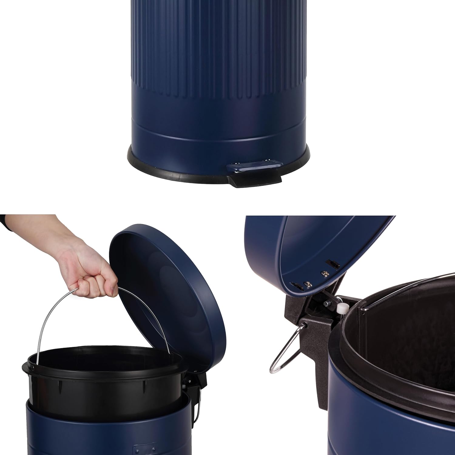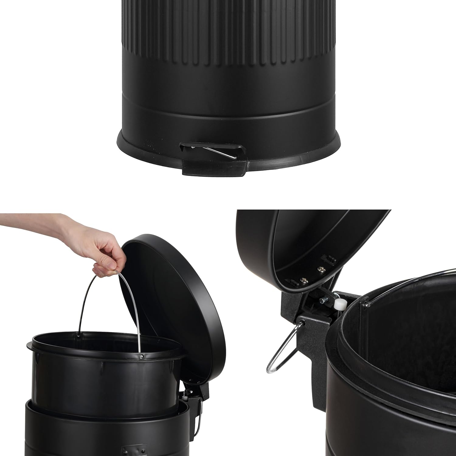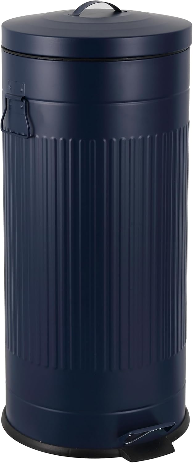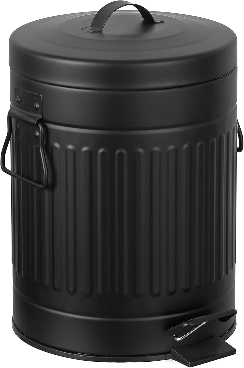 happimess HPM1018E Theo Retro 8-Gallon Step Trash Can with Soft-Close Lid and Free Mini Trash Can for Home, Kitchen, Bathroom, Living Room, Office, Platinum Silver