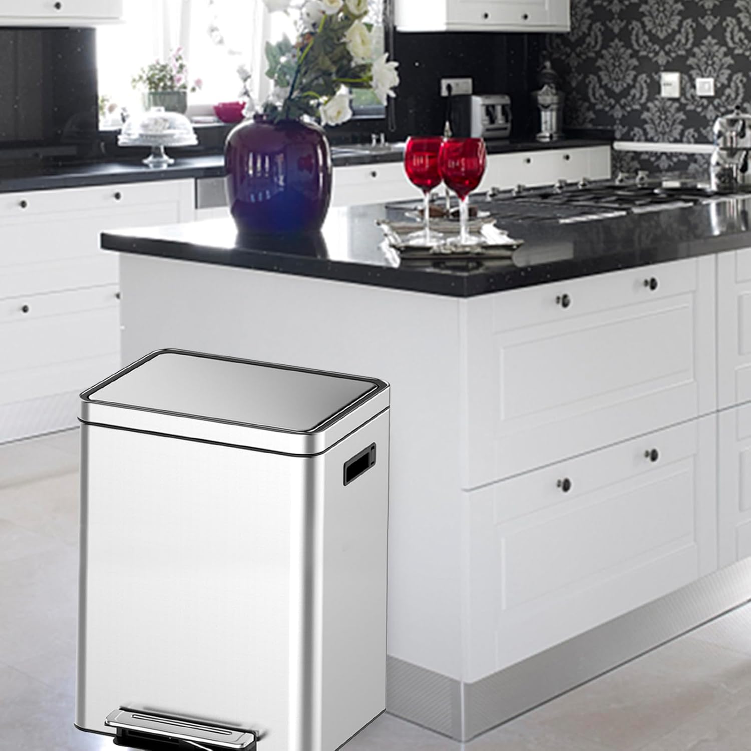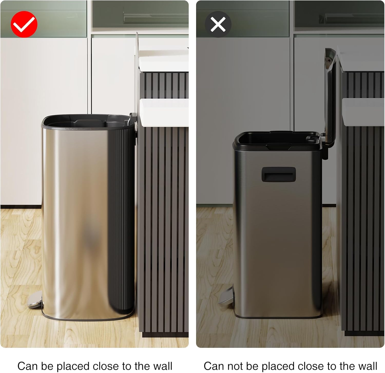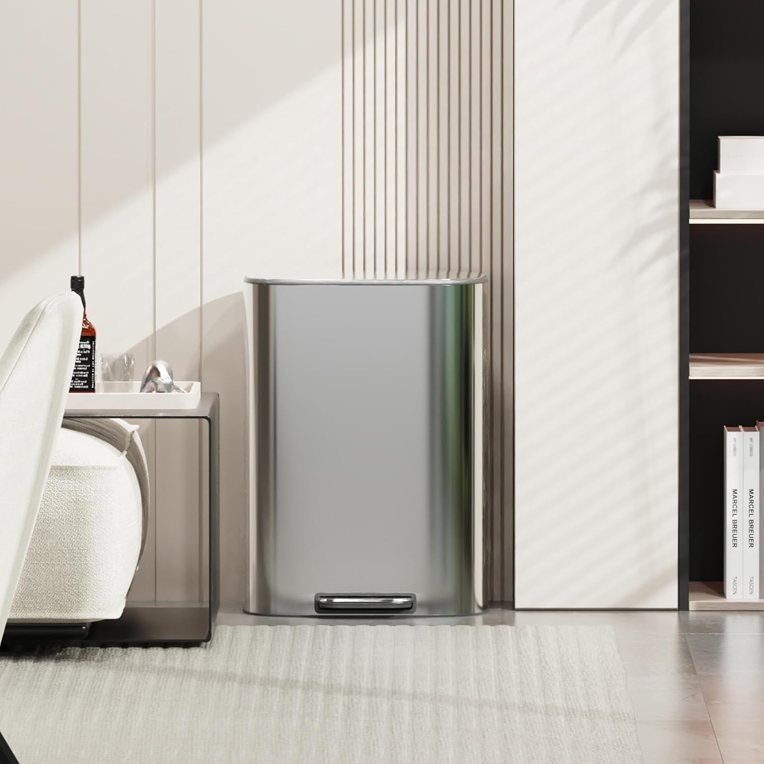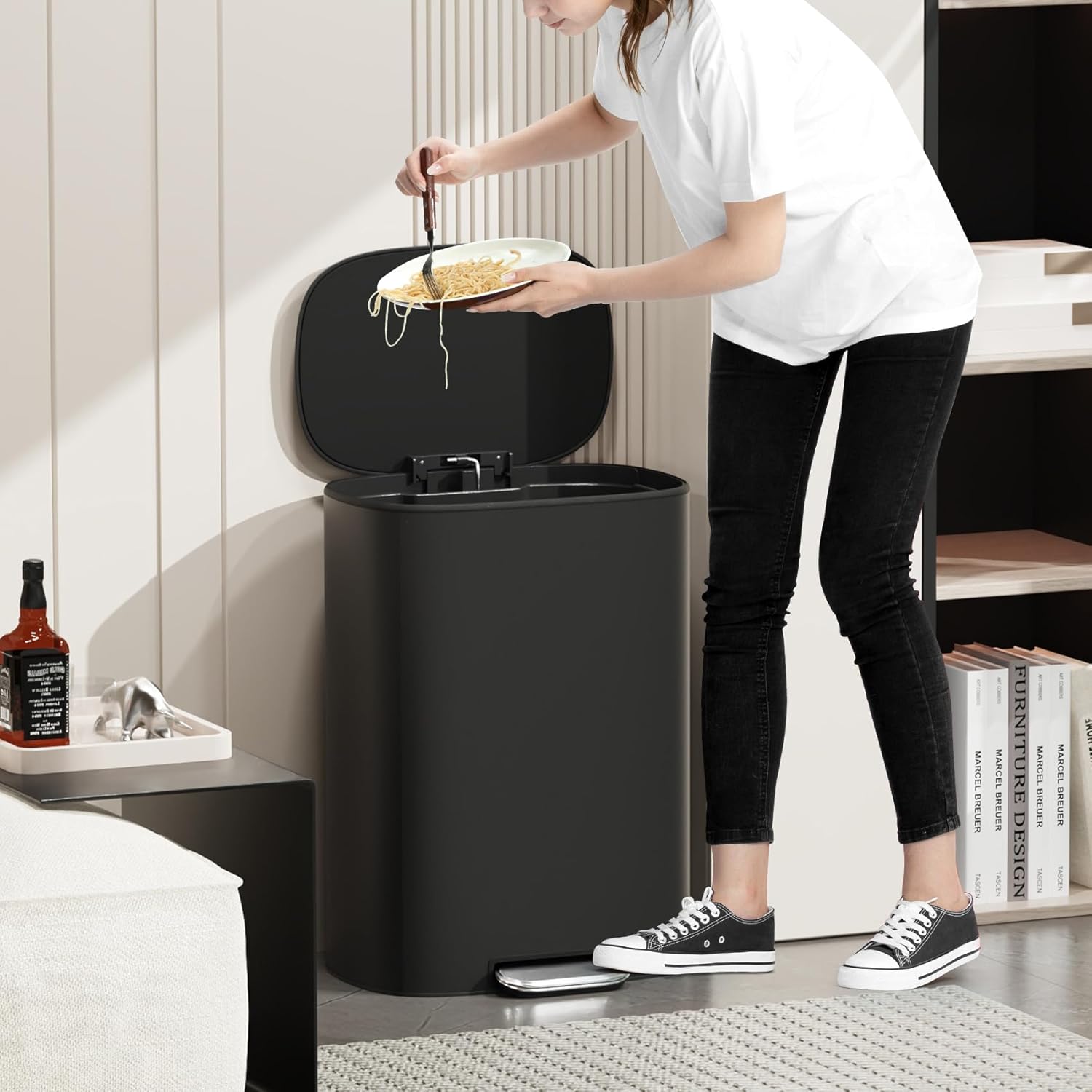 40L/10.6 Gallon Dual Trash Can - Stainless Steel Garbage CanWith Double Inner Bucket & Step Foot Pedal, Easy to Clean for Kitchen, Home, Office