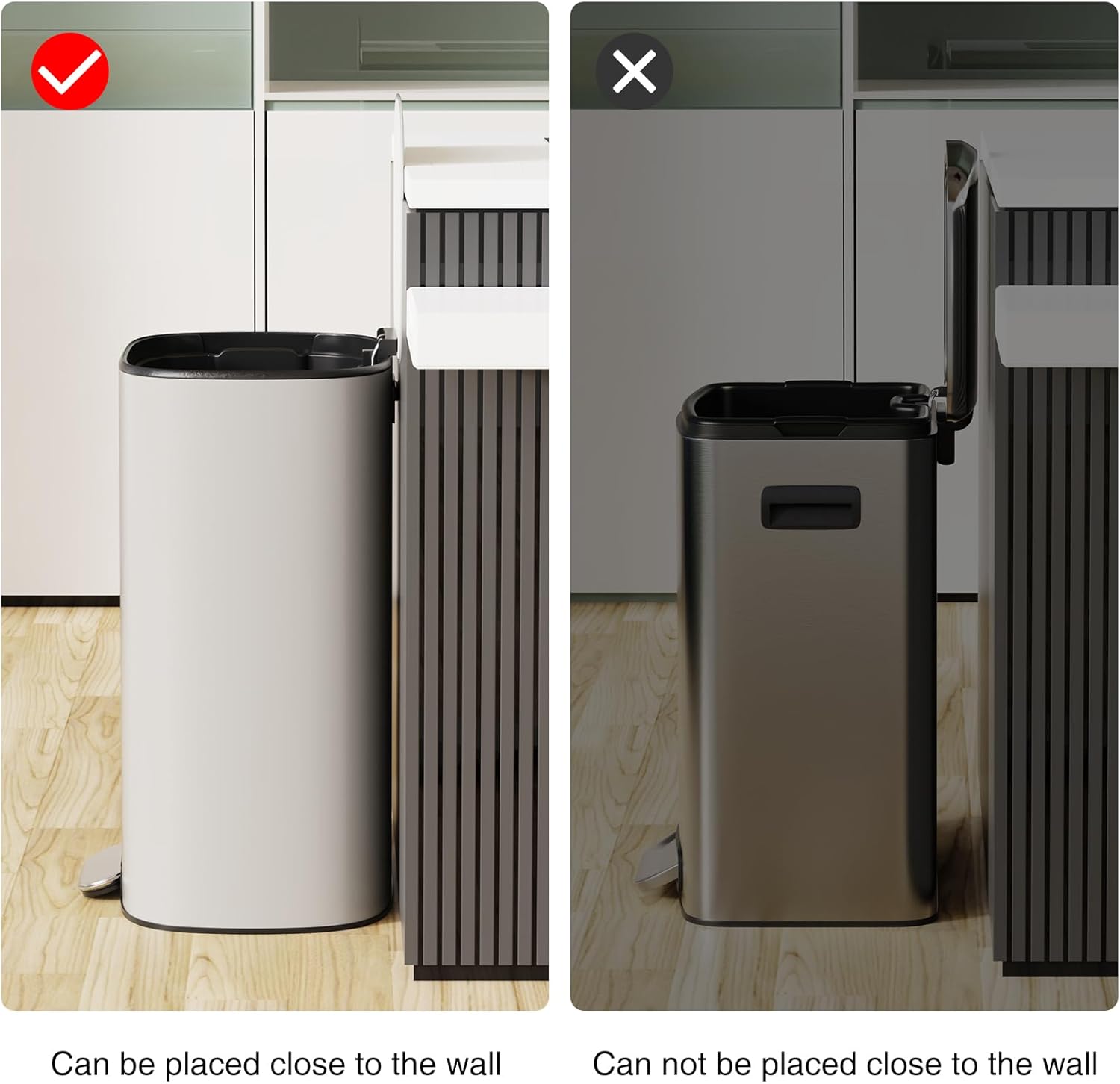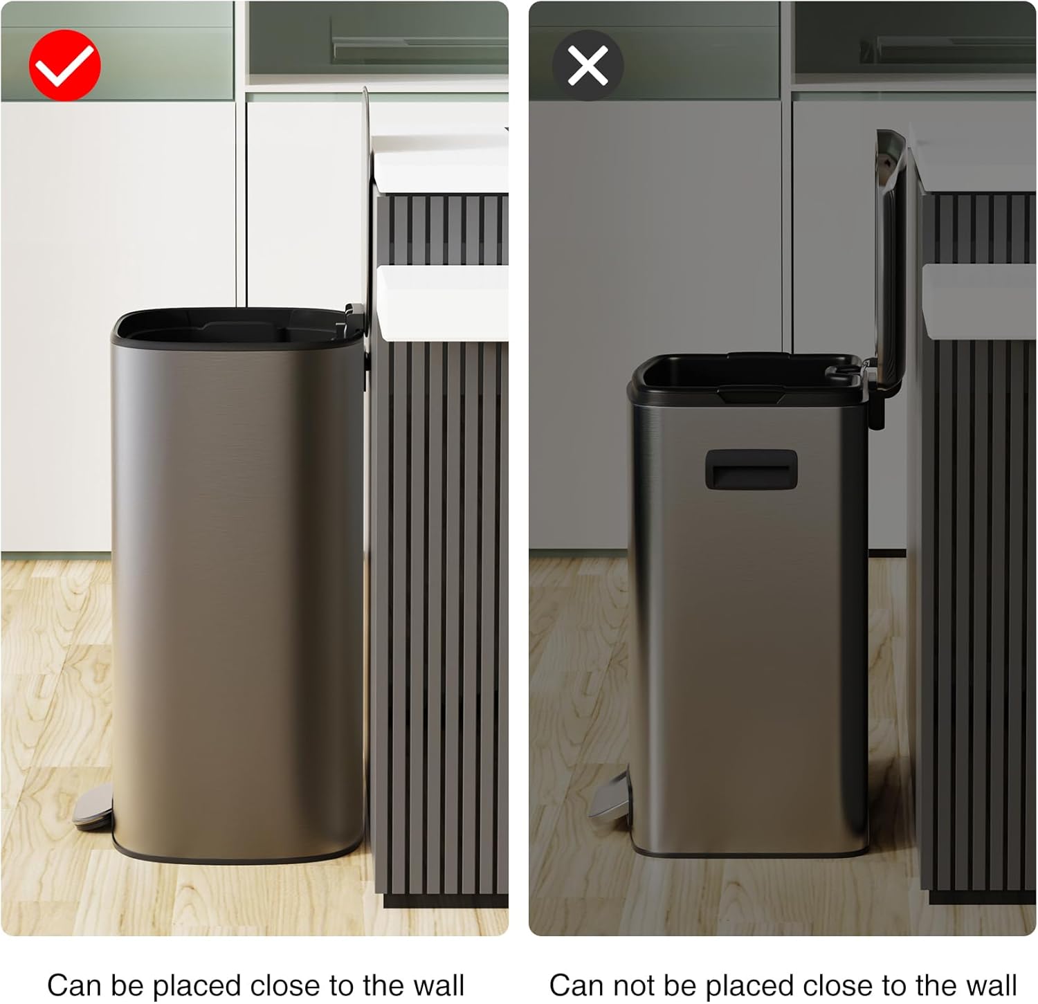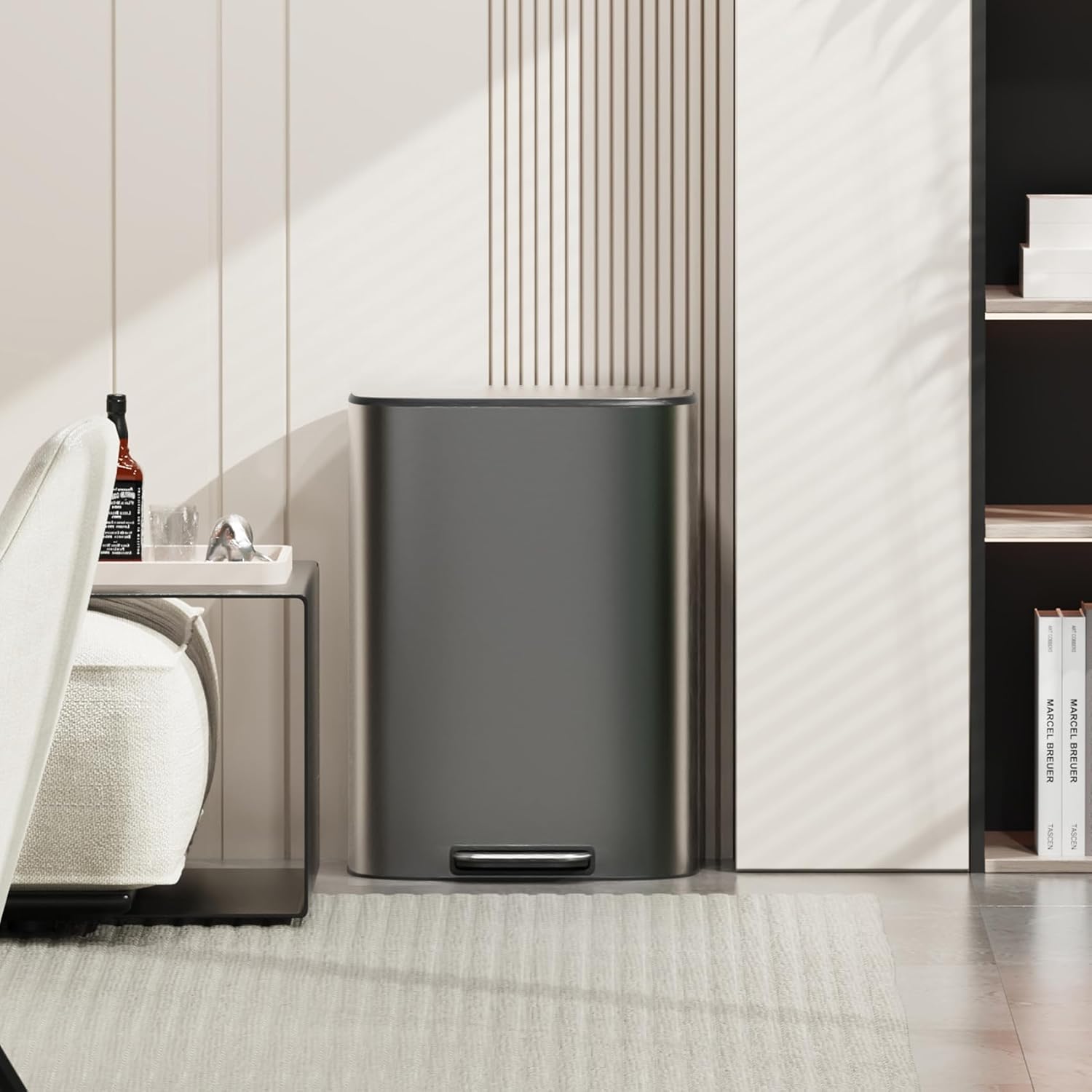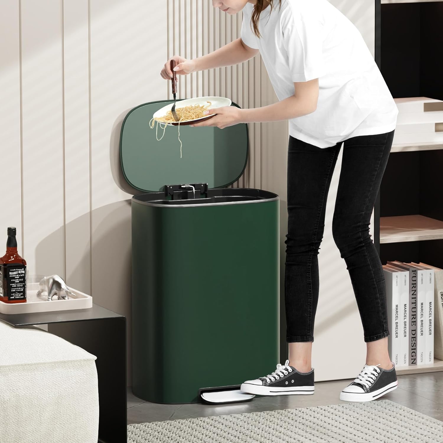 40L/10.6 Gallon Dual Trash Can - Stainless Steel Garbage CanWith Double Inner Bucket & Step Foot Pedal, Easy to Clean for Kitchen, Home, Office