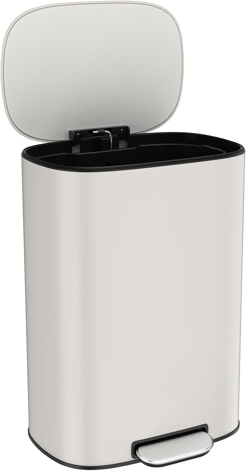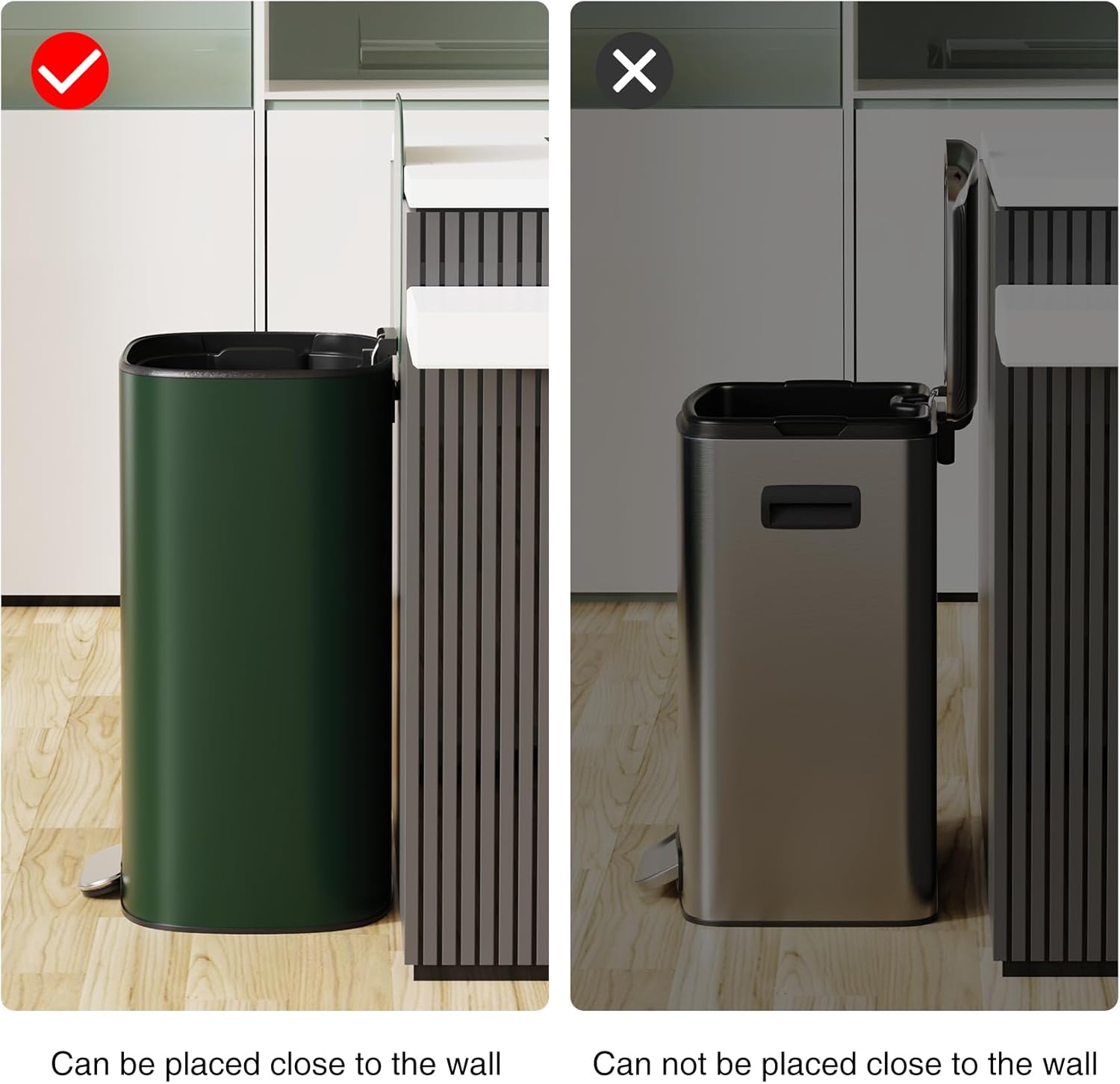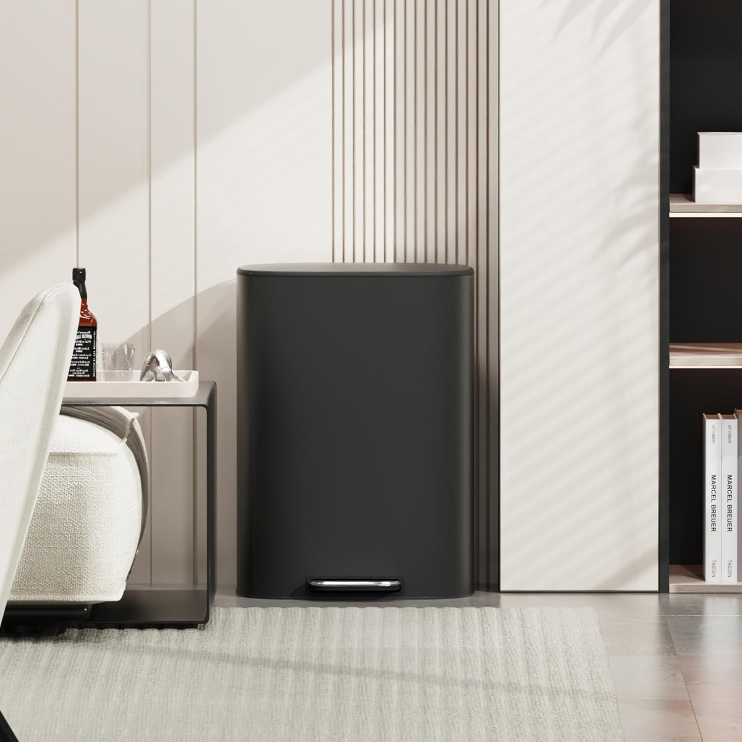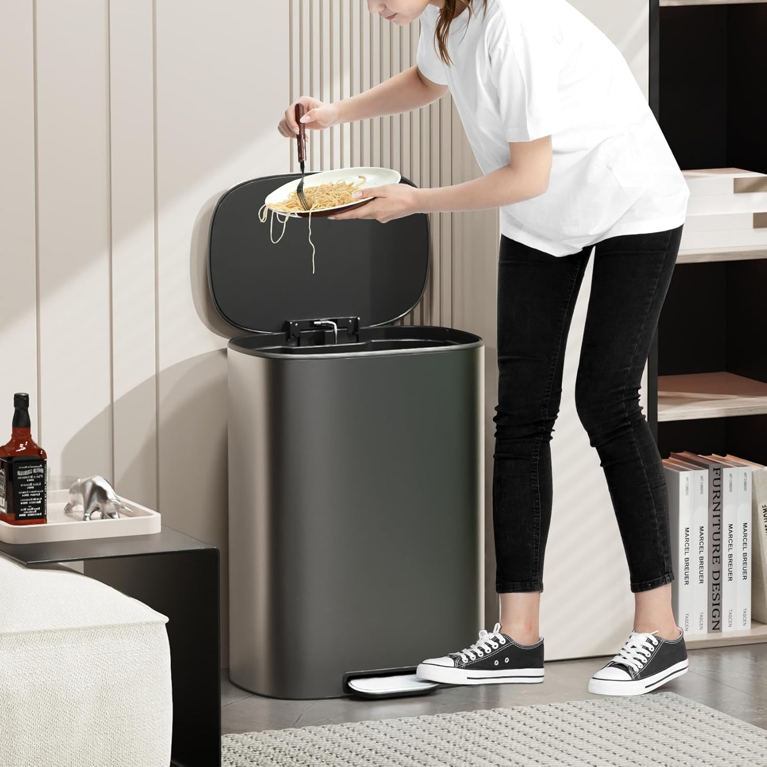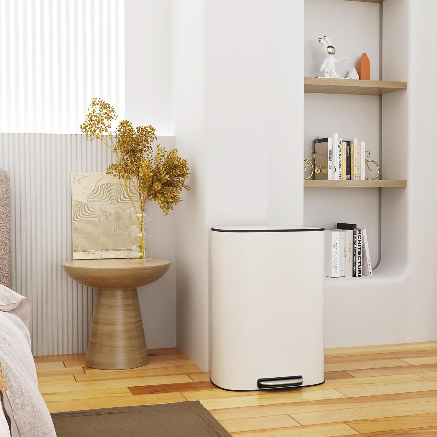 40L/10.6 Gallon Dual Trash Can - Stainless Steel Garbage CanWith Double Inner Bucket & Step Foot Pedal, Easy to Clean for Kitchen, Home, Office