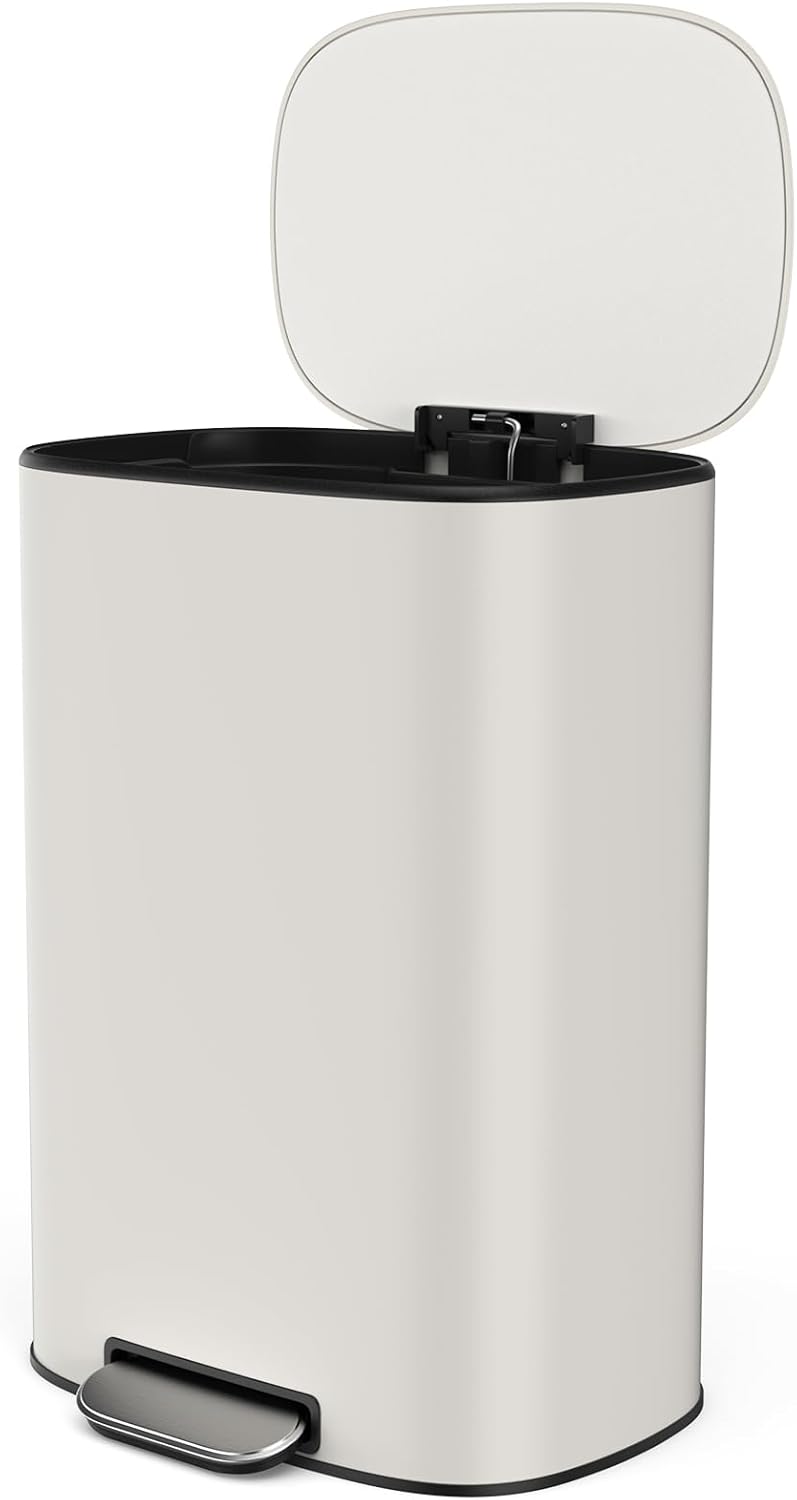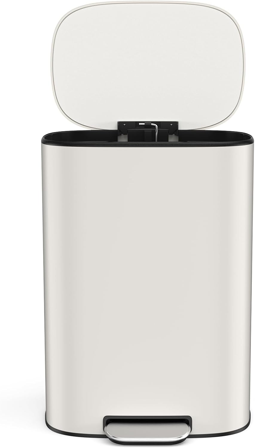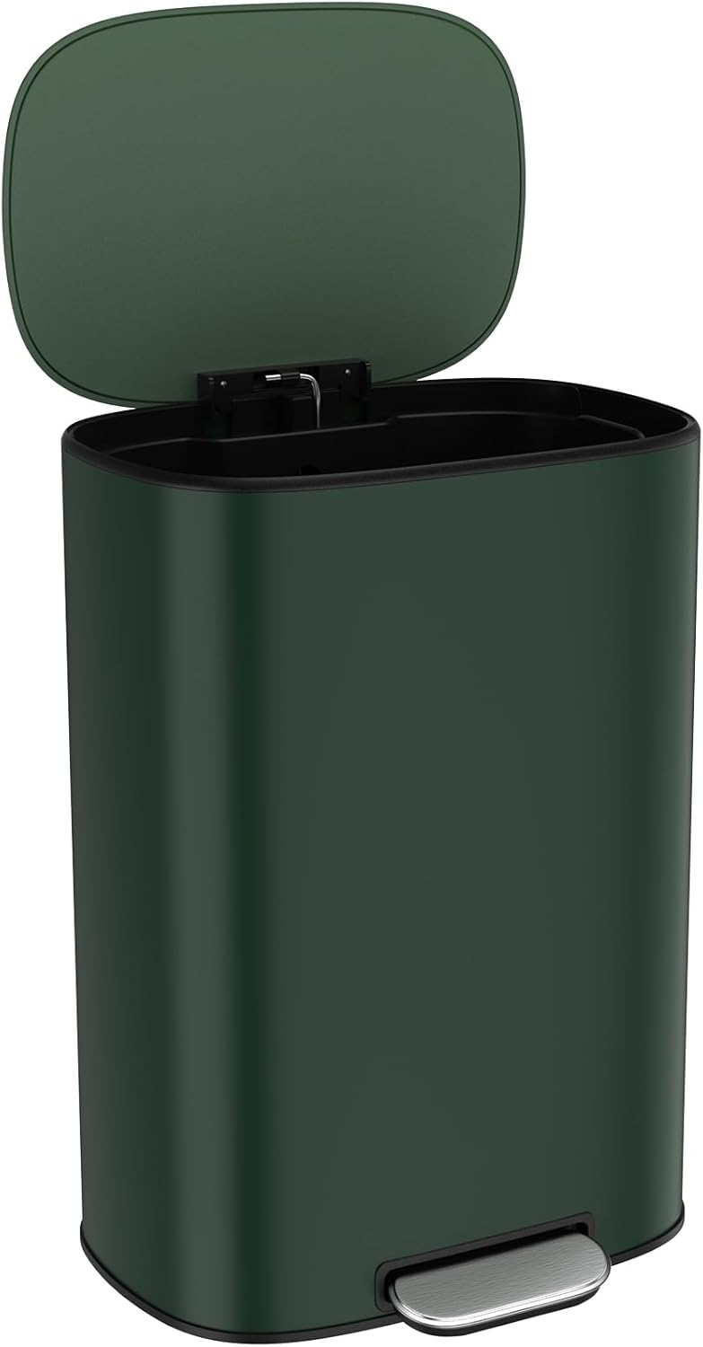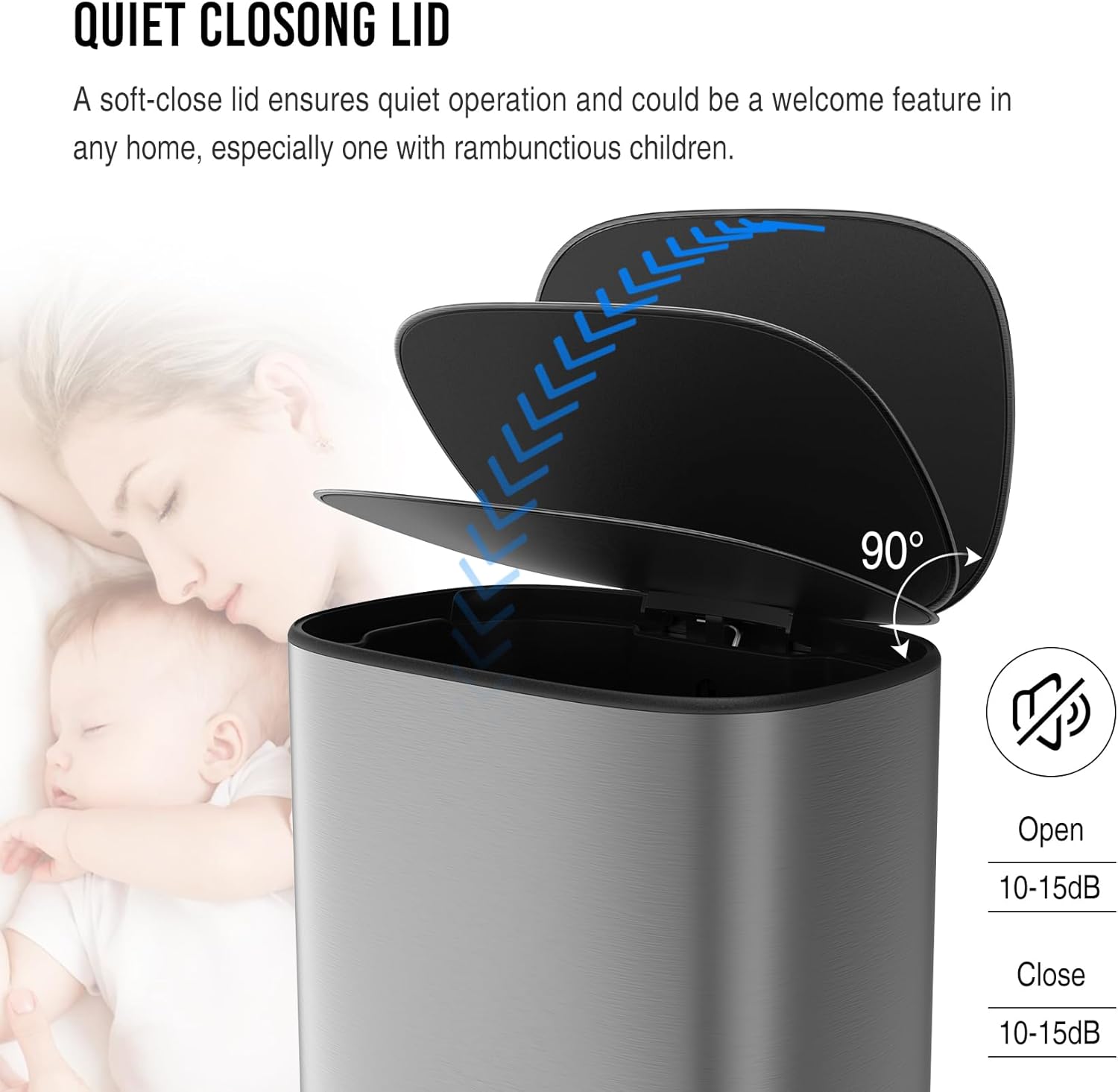 40L/10.6 Gallon Dual Trash Can - Stainless Steel Garbage CanWith Double Inner Bucket & Step Foot Pedal, Easy to Clean for Kitchen, Home, Office
