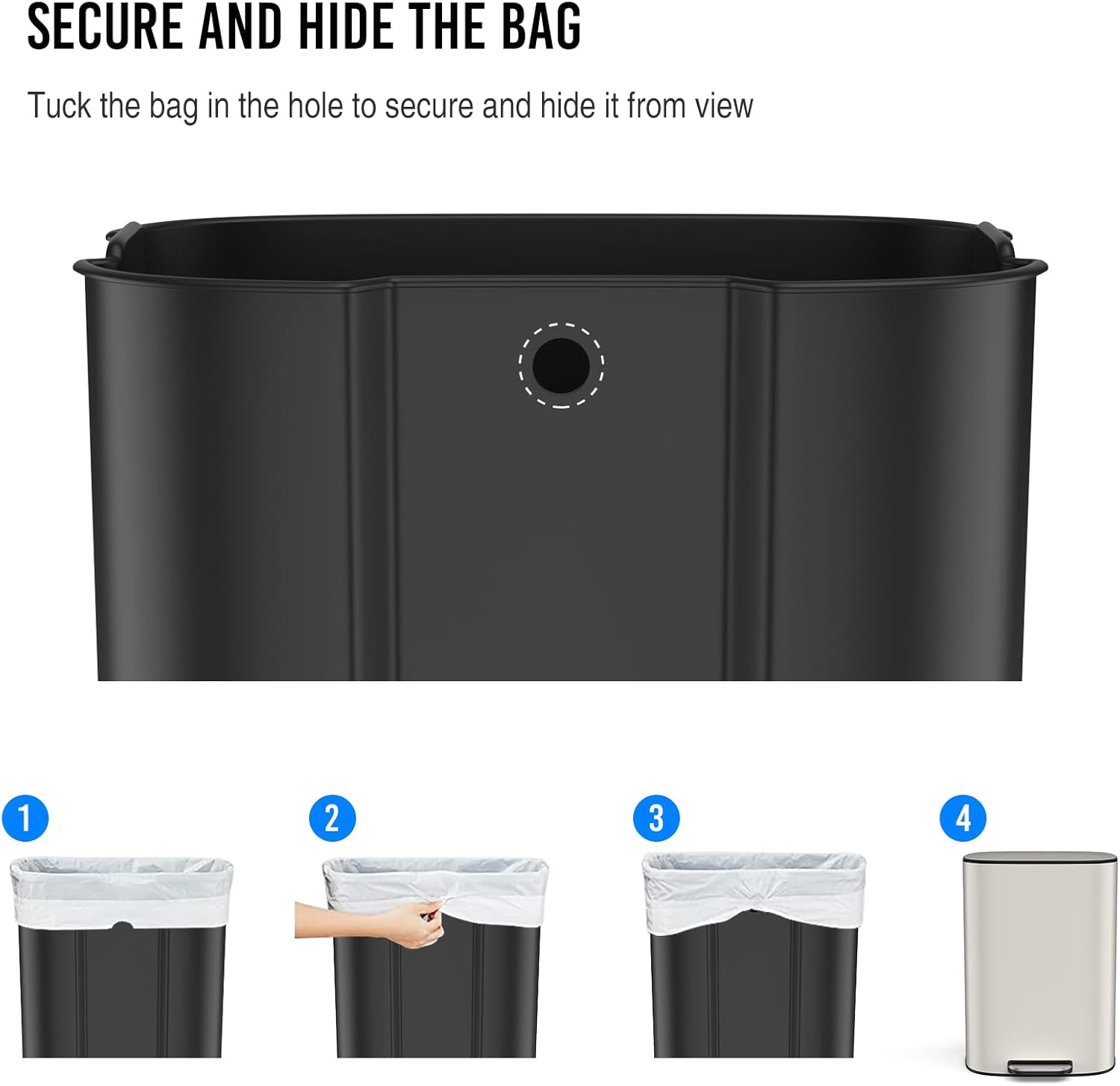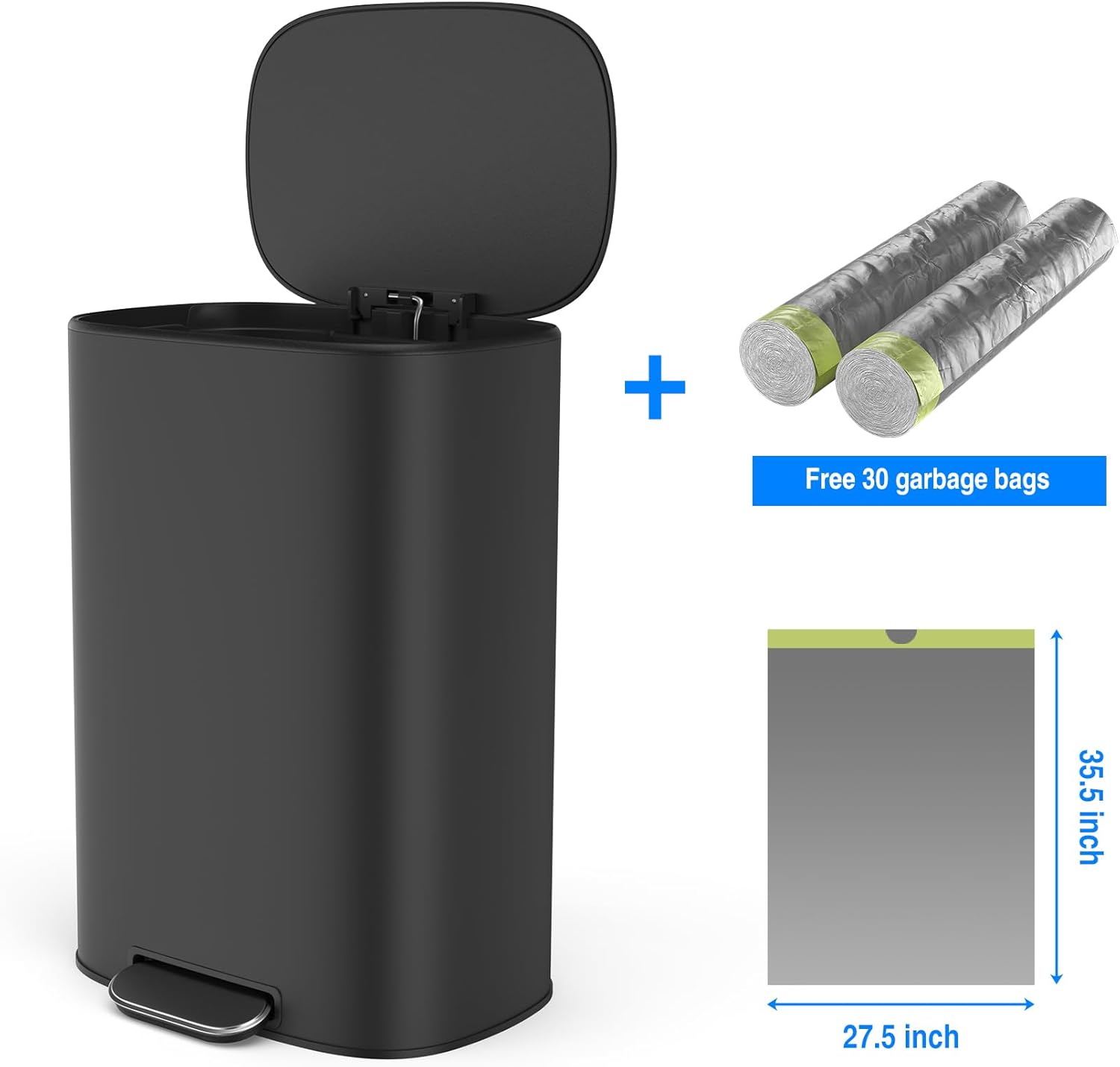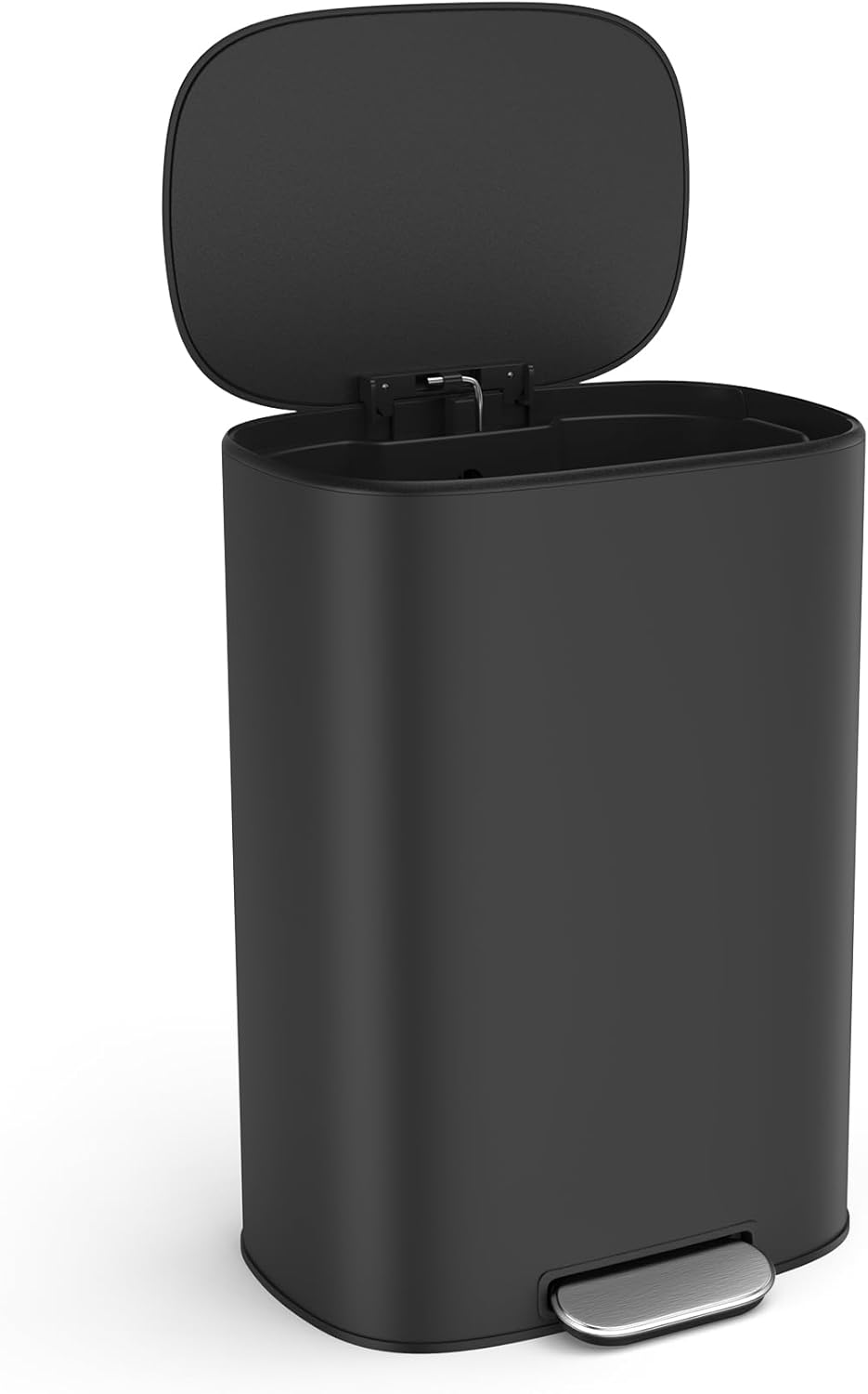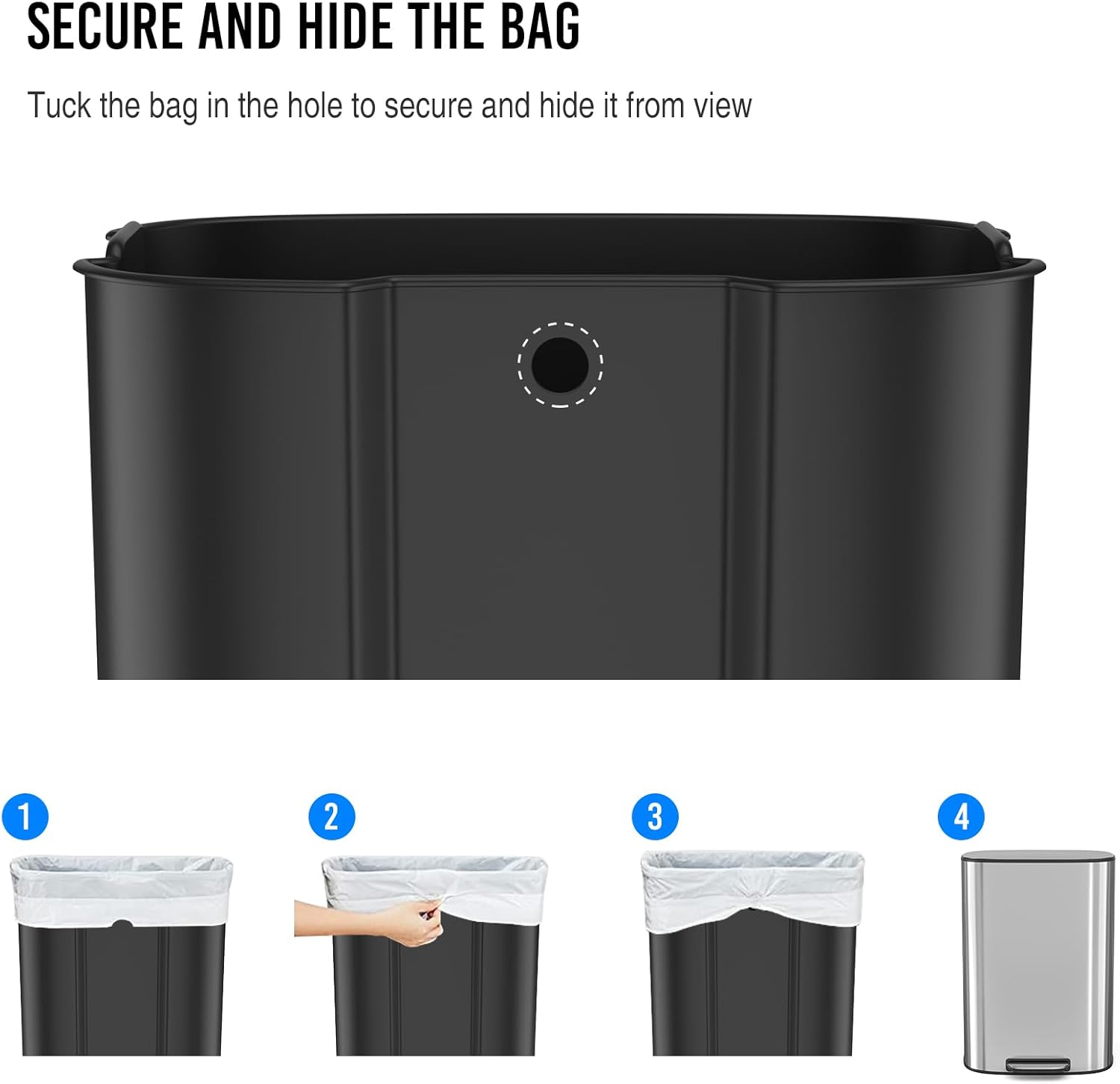 40L/10.6 Gallon Dual Trash Can - Stainless Steel Garbage CanWith Double Inner Bucket & Step Foot Pedal, Easy to Clean for Kitchen, Home, Office
