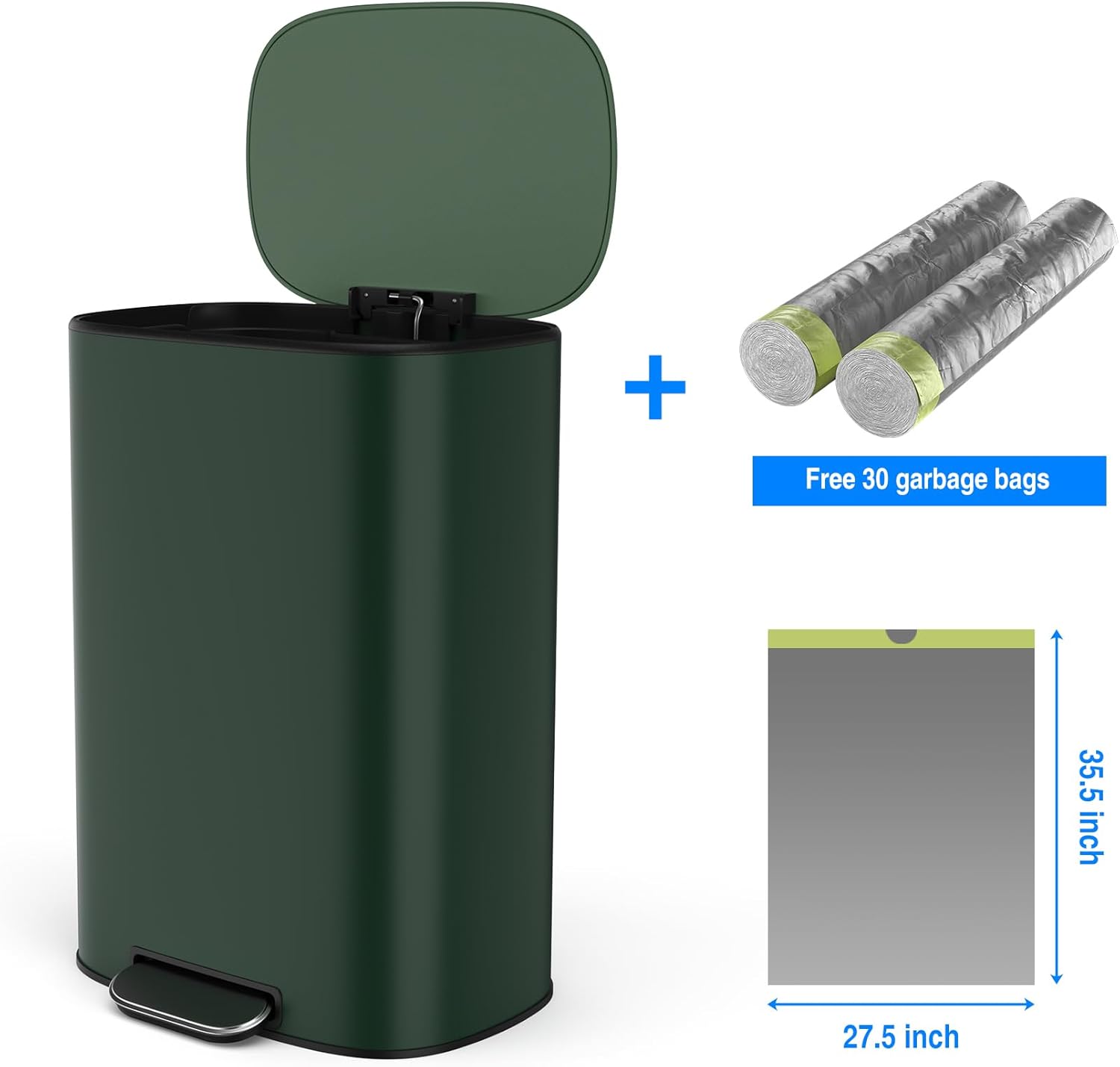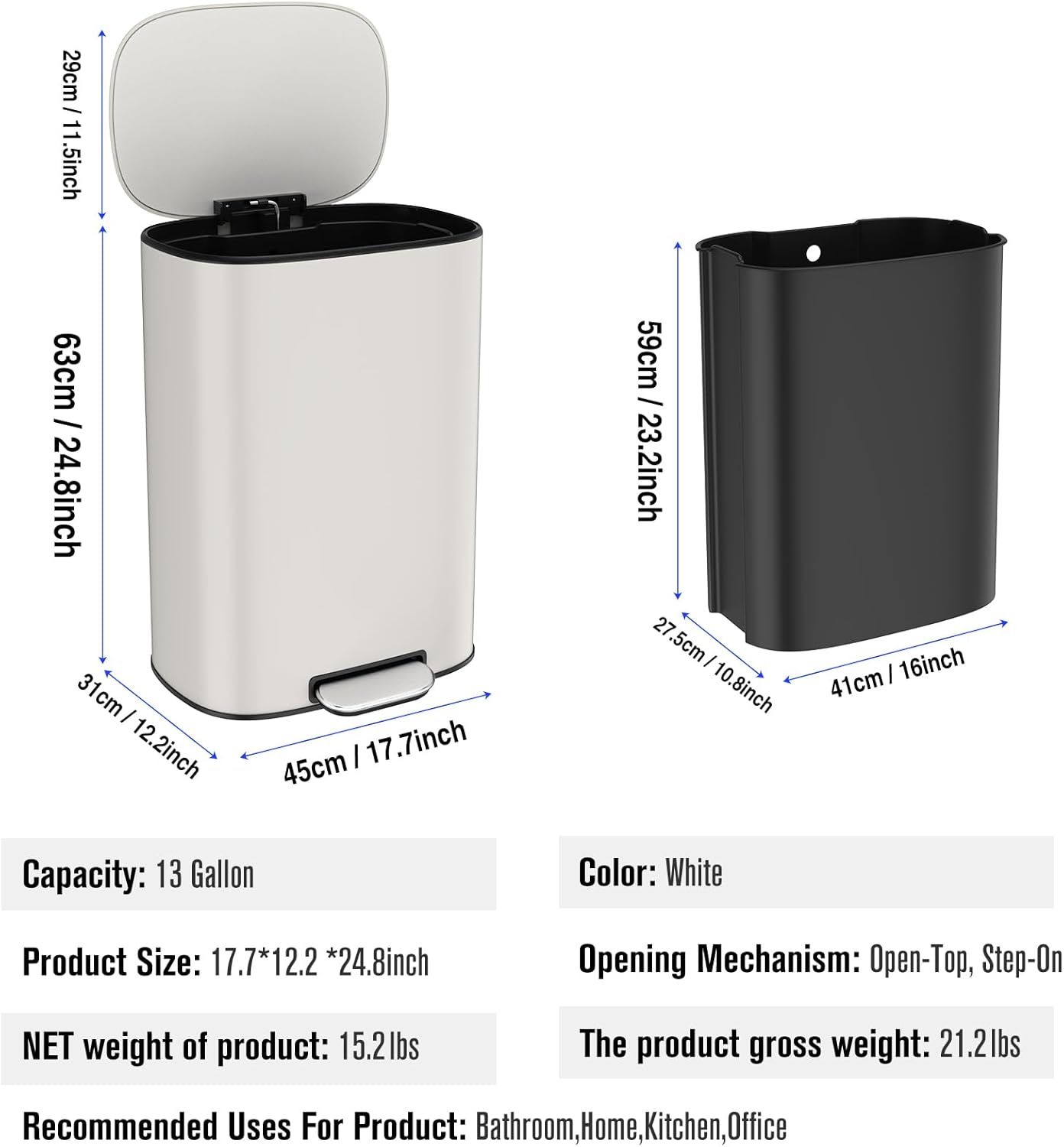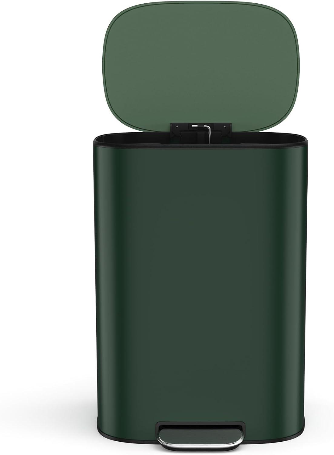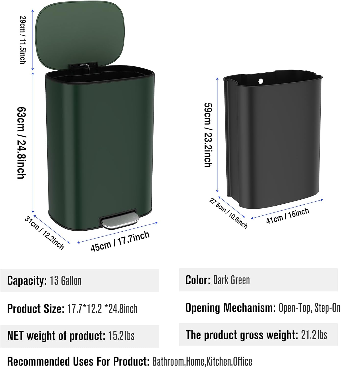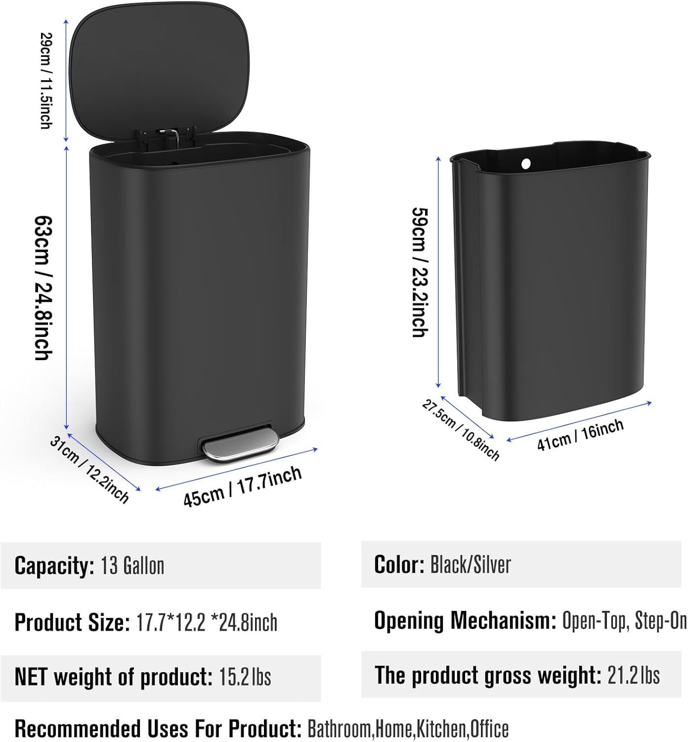 Dolonm 13 Gallon Stainless Steel Foot Pedal Large Trash Can with Soft Close Quiet Lid, Oval Shape, 12.2"L x 17.7"W x 24.8"H, Silver