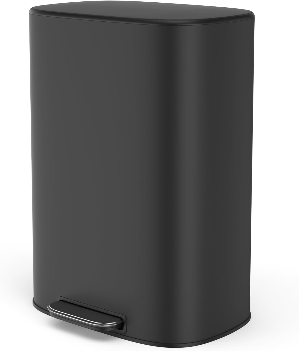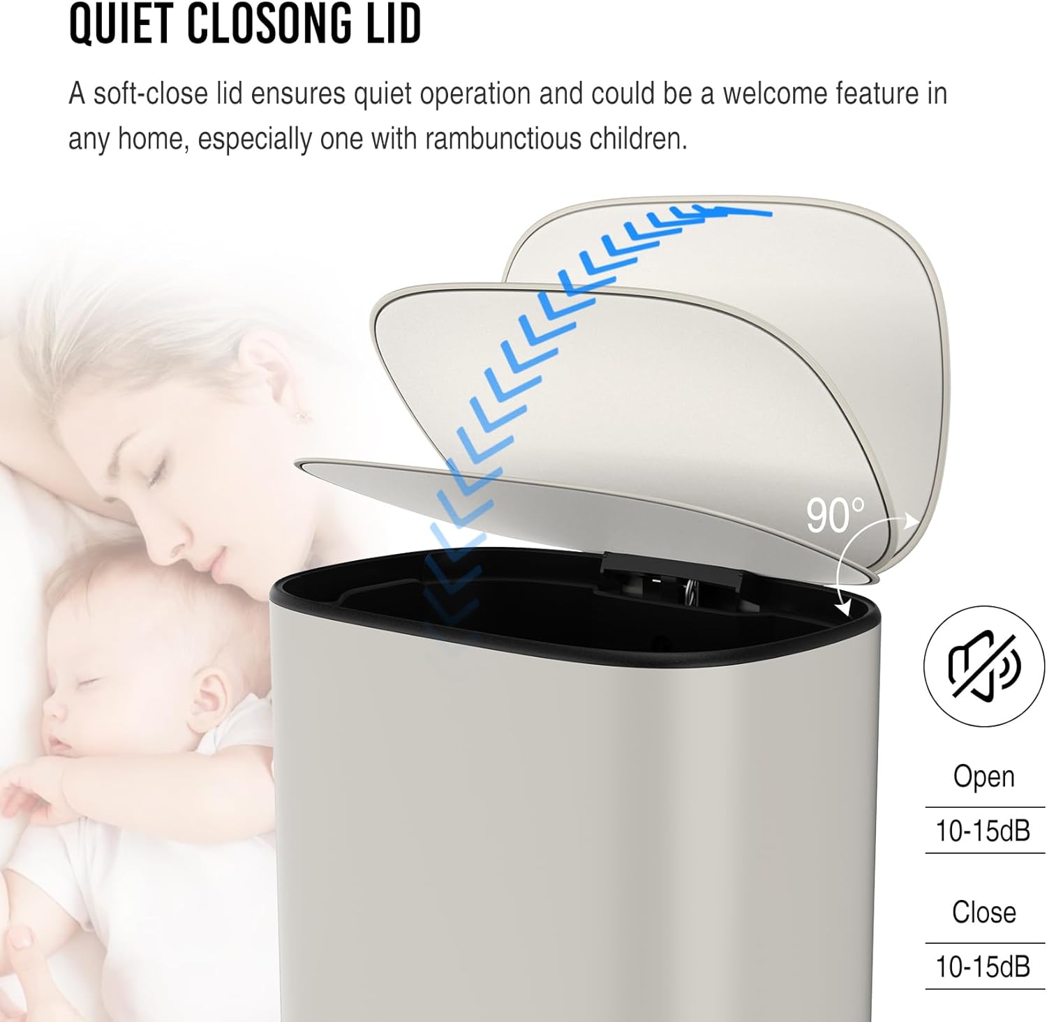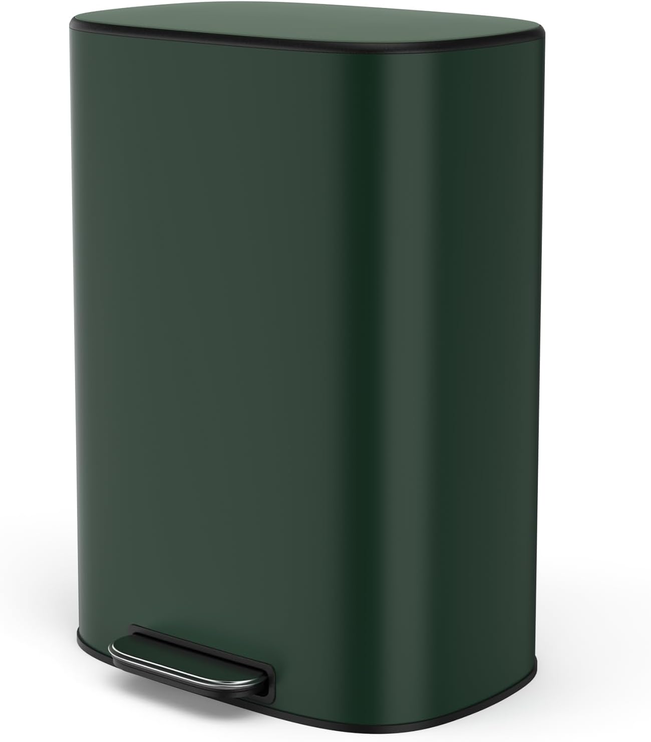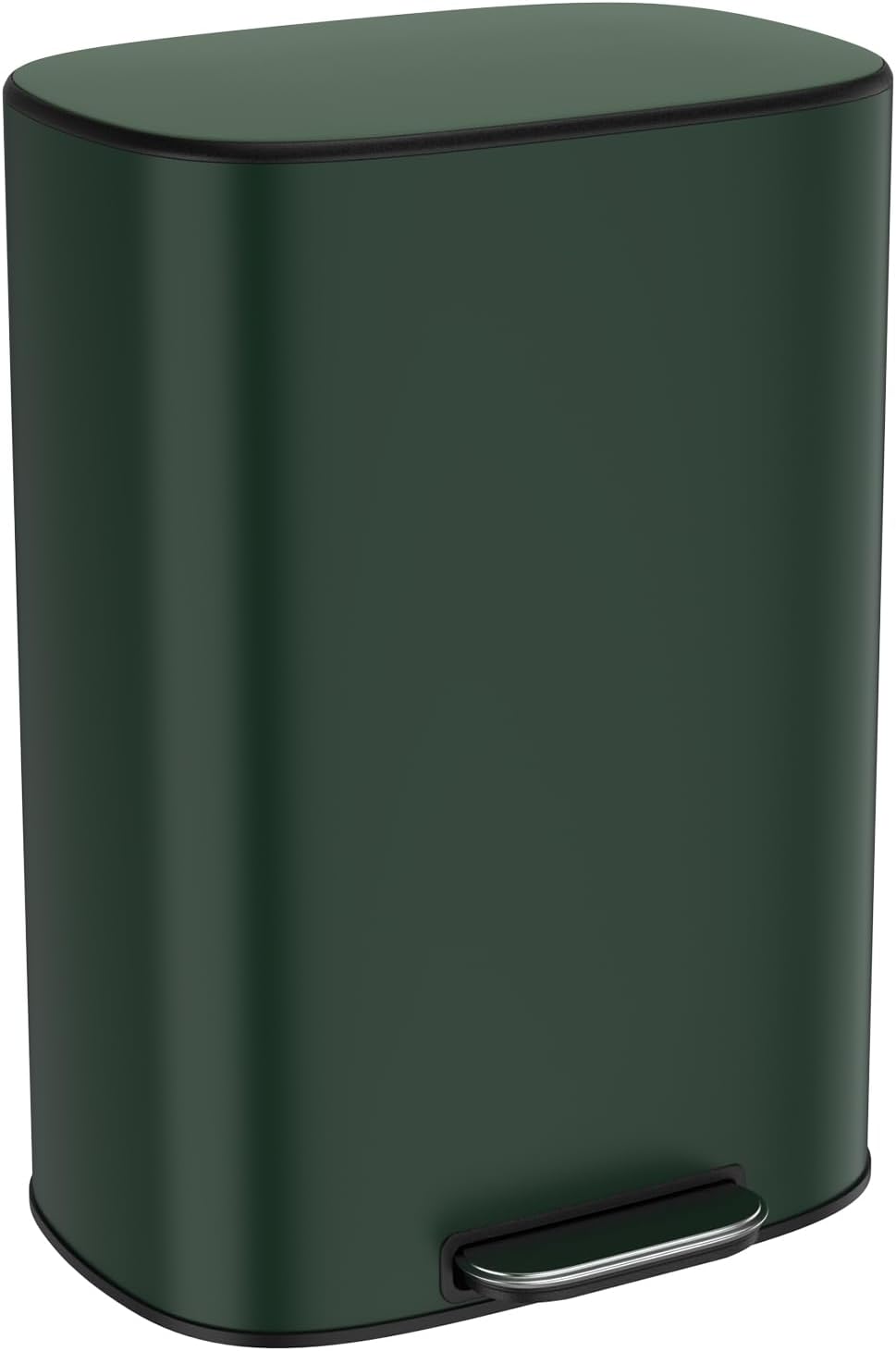 Dolonm 13 Gallon Stainless Steel Foot Pedal Large Trash Can with Soft Close Quiet Lid, Oval Shape, 12.2"L x 17.7"W x 24.8"H, Silver