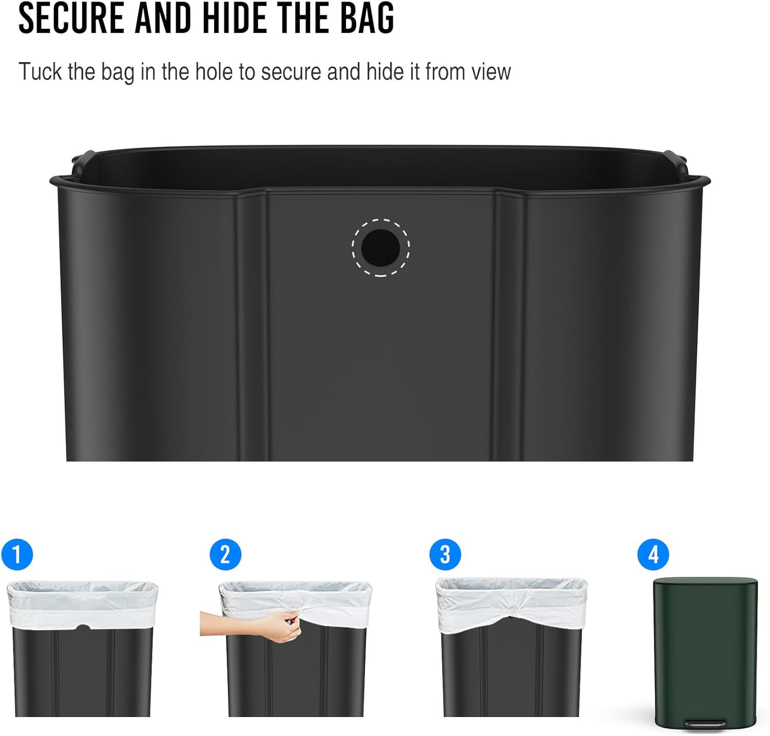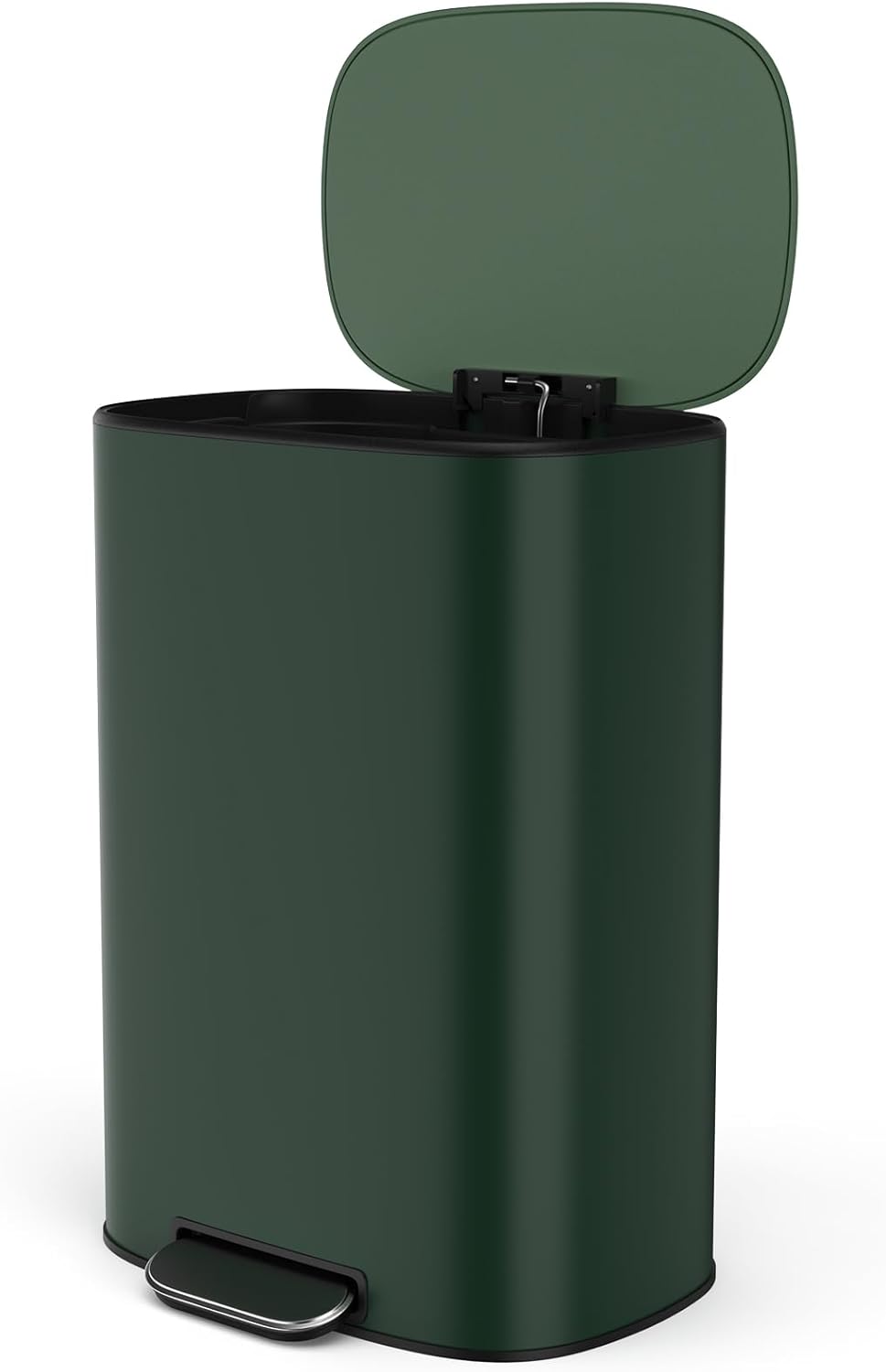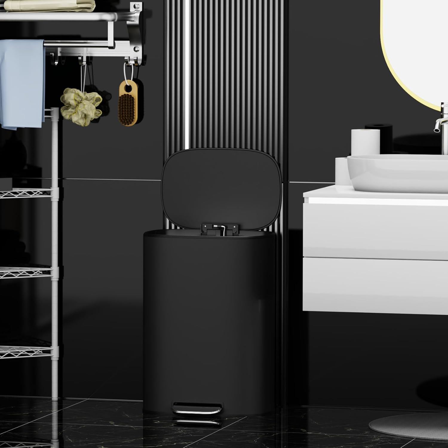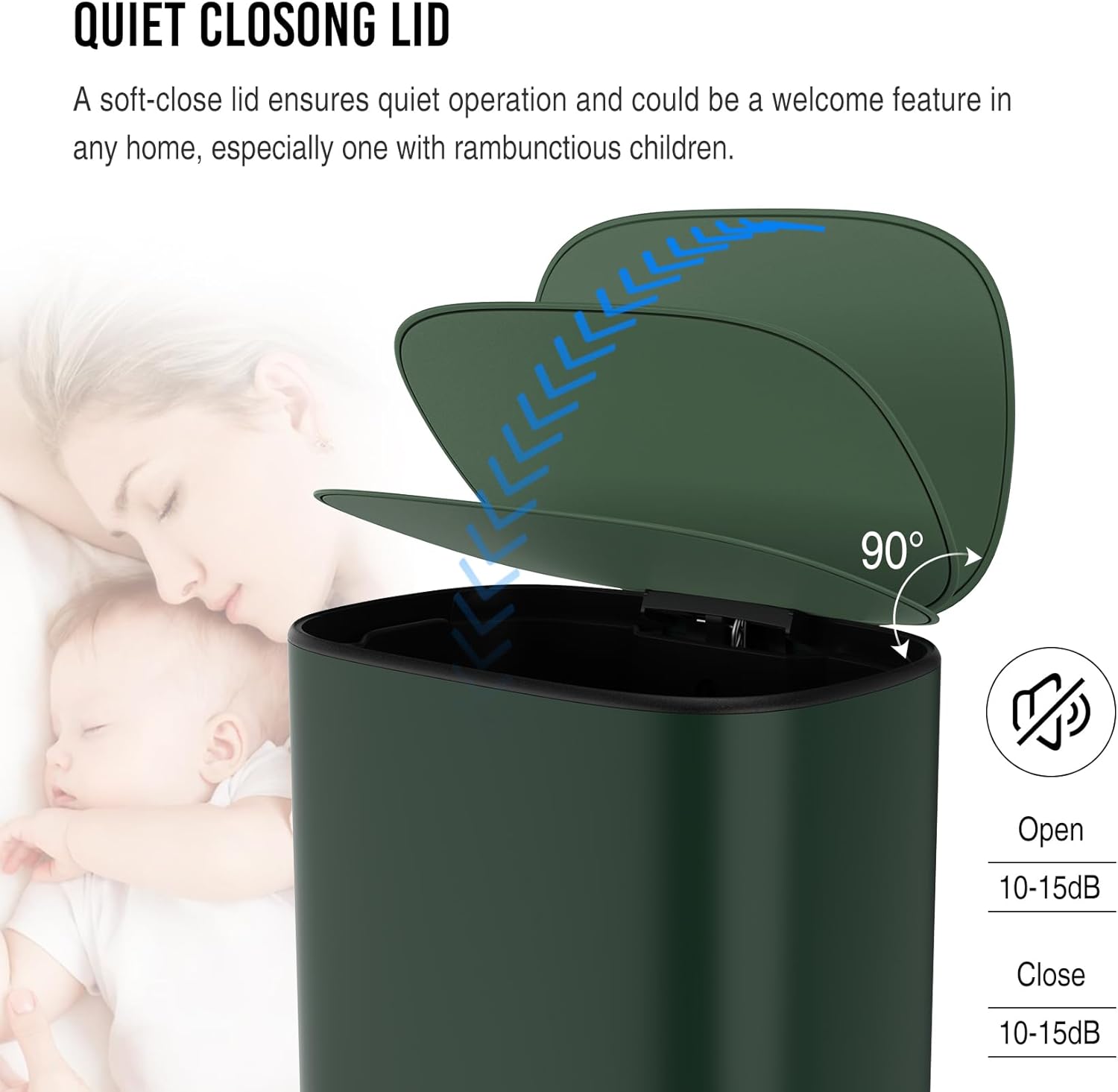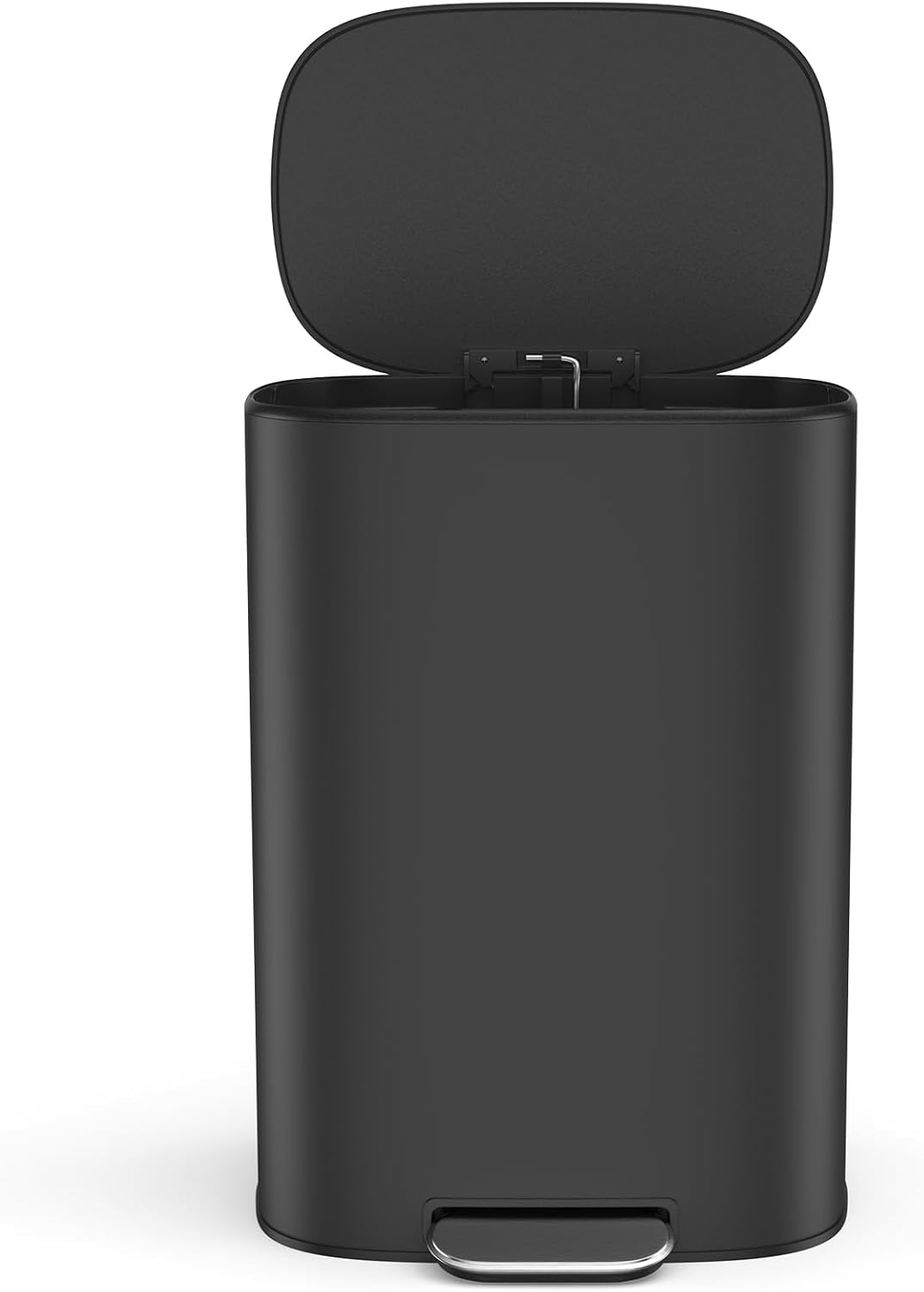 Dolonm 13 Gallon Stainless Steel Foot Pedal Large Trash Can with Soft Close Quiet Lid, Oval Shape, 12.2"L x 17.7"W x 24.8"H, Silver