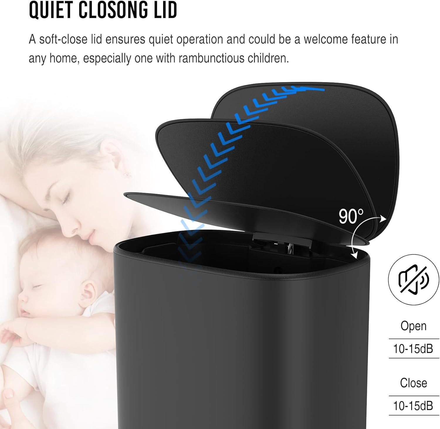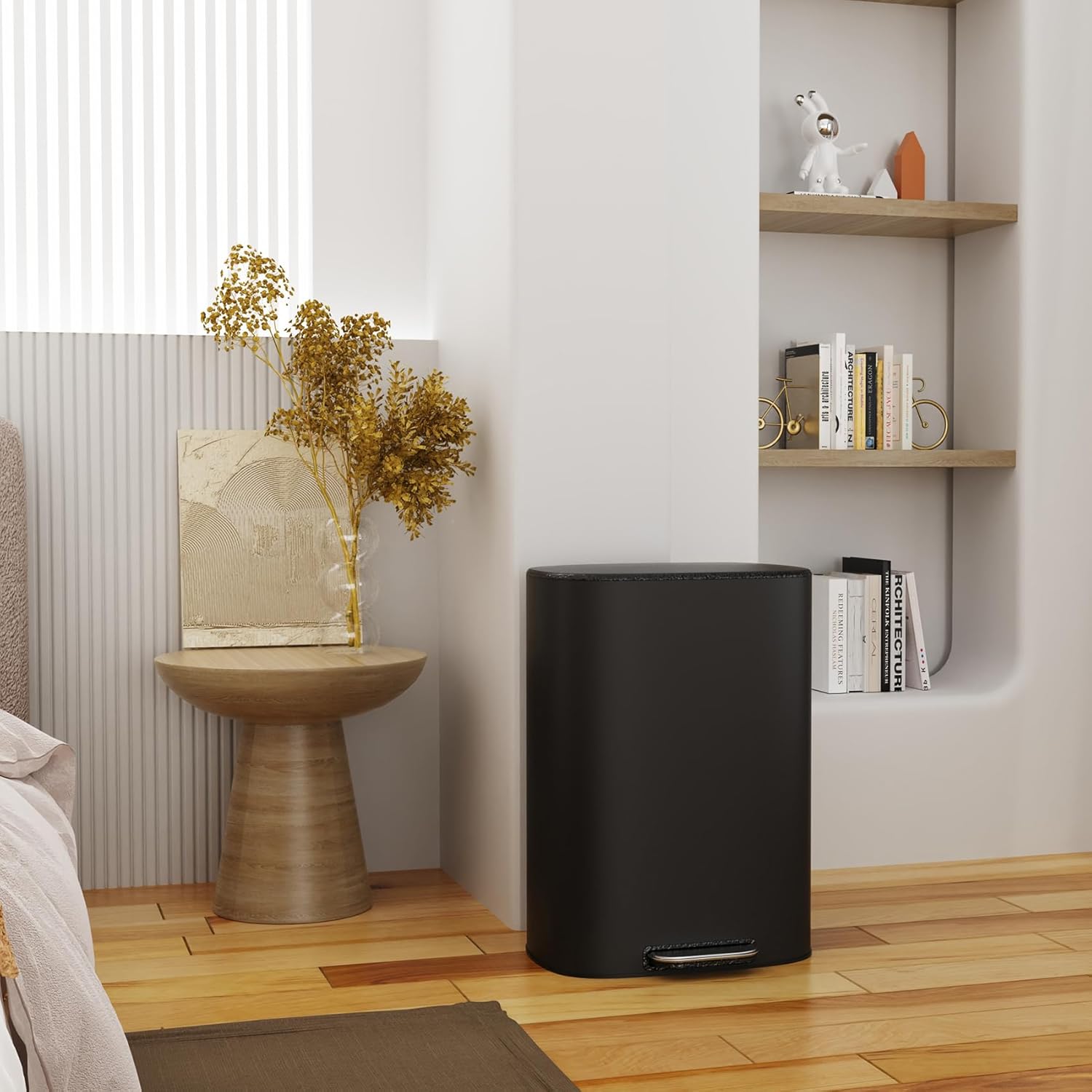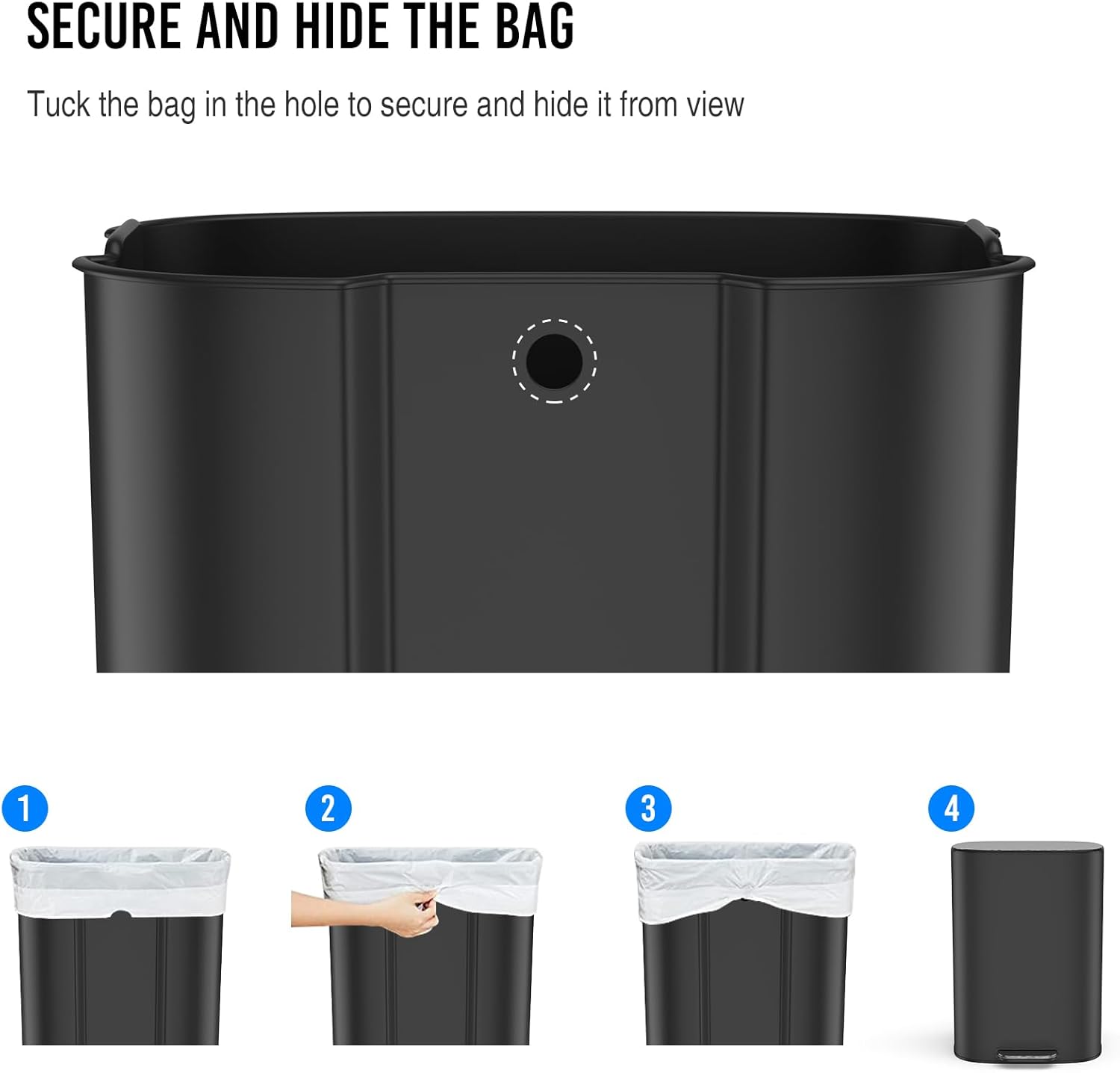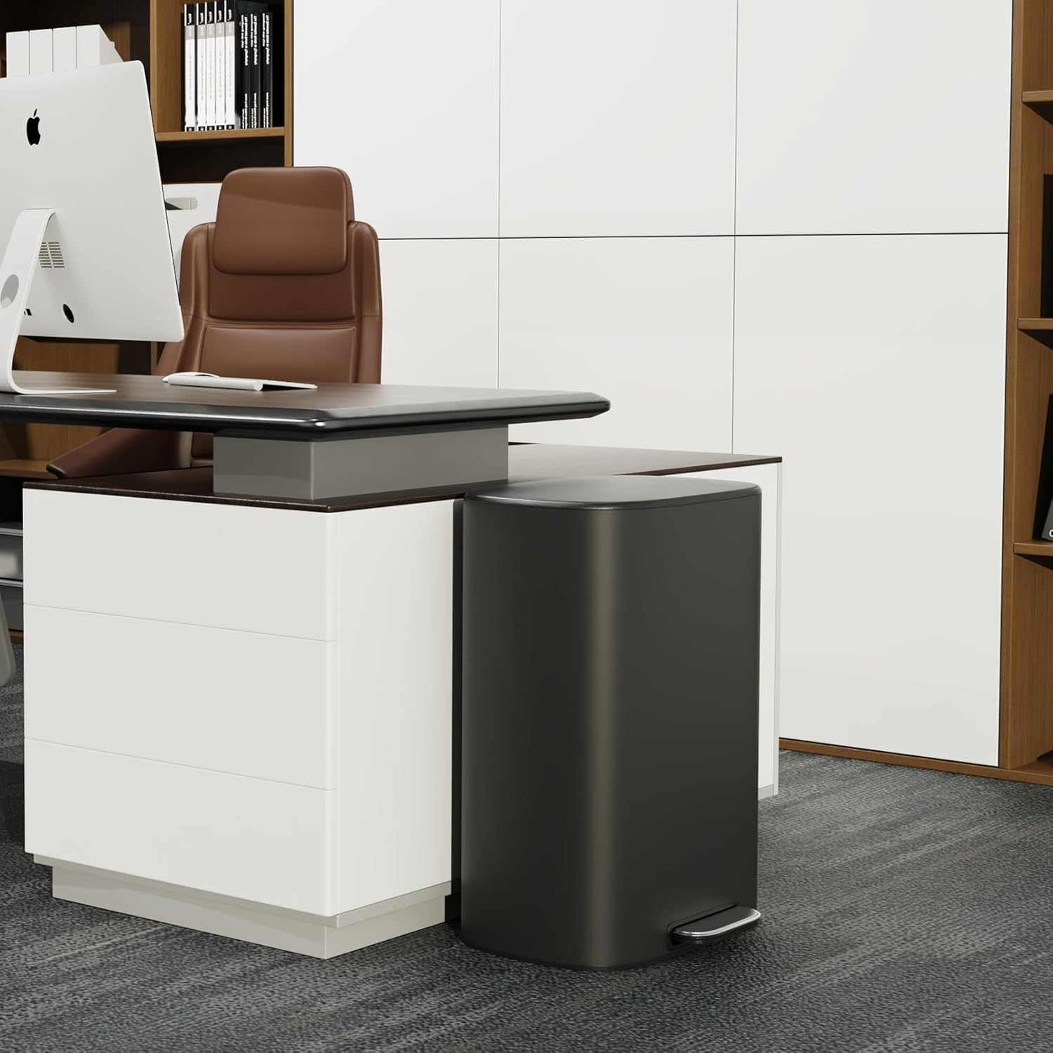Dolonm 13 Gallon Stainless Steel Foot Pedal Large Trash Can with Soft Close Quiet Lid, Oval Shape, 12.2"L x 17.7"W x 24.8"H, Silver