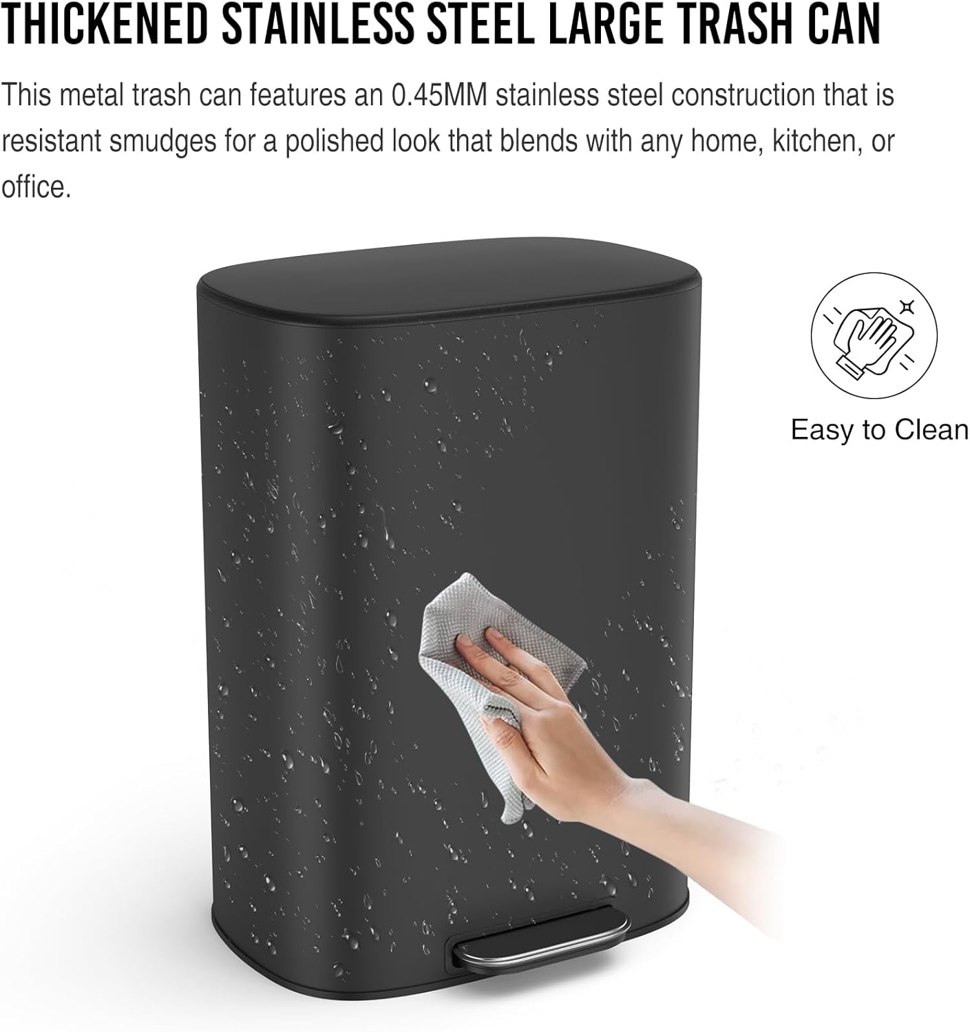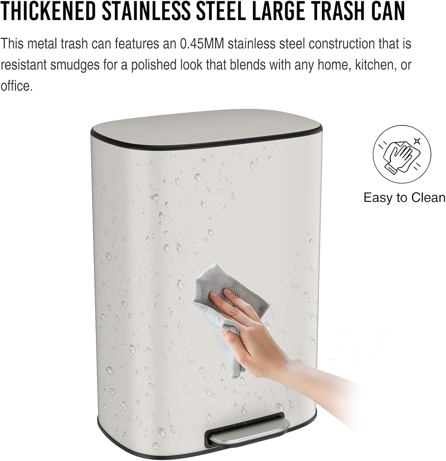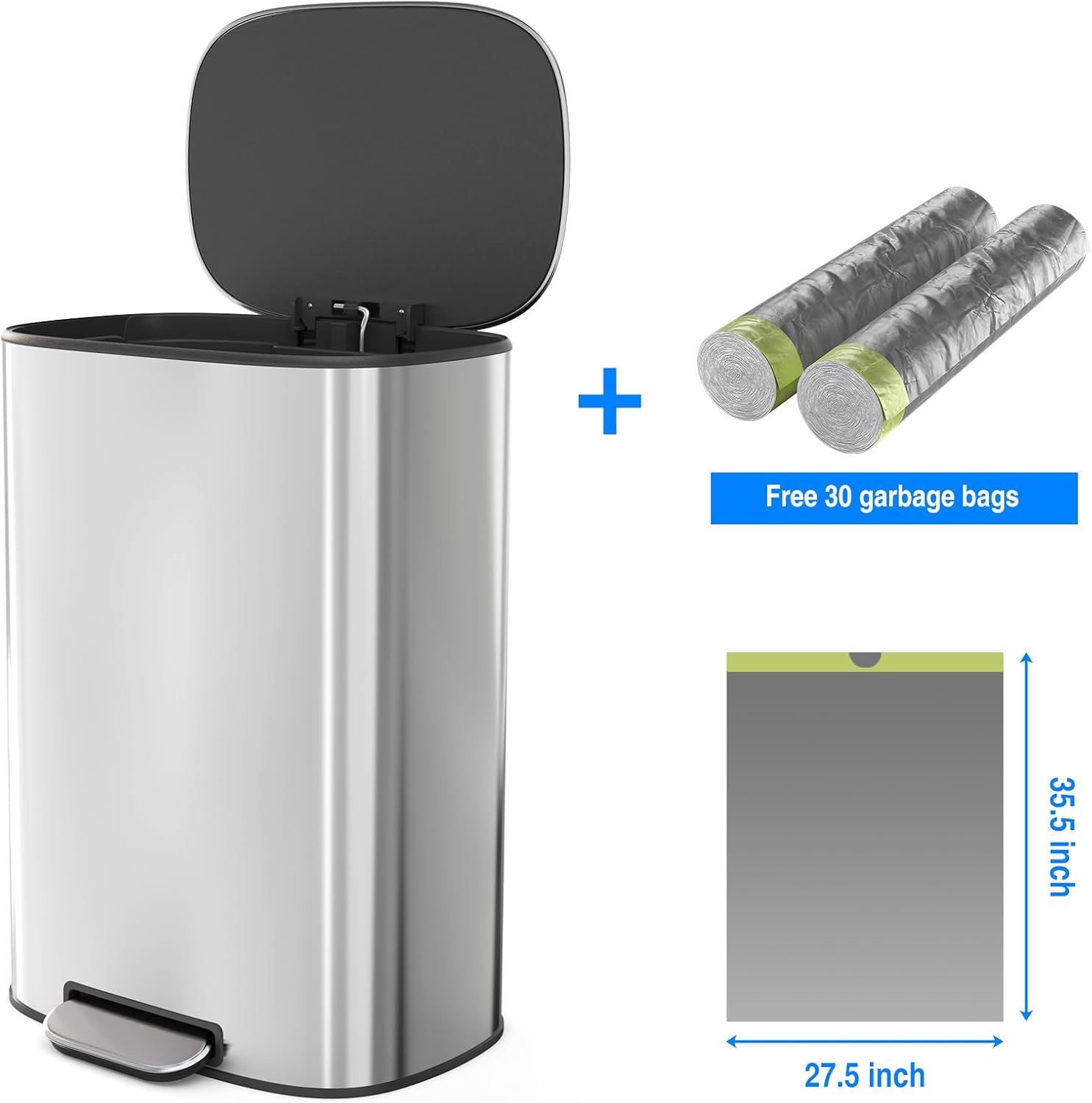 EconoHome 20 Gallon Stainless Steel Large Kitchen Trash Can with Foot Pedal, Soft Close Lid, and Trash Bag Retainer Rim