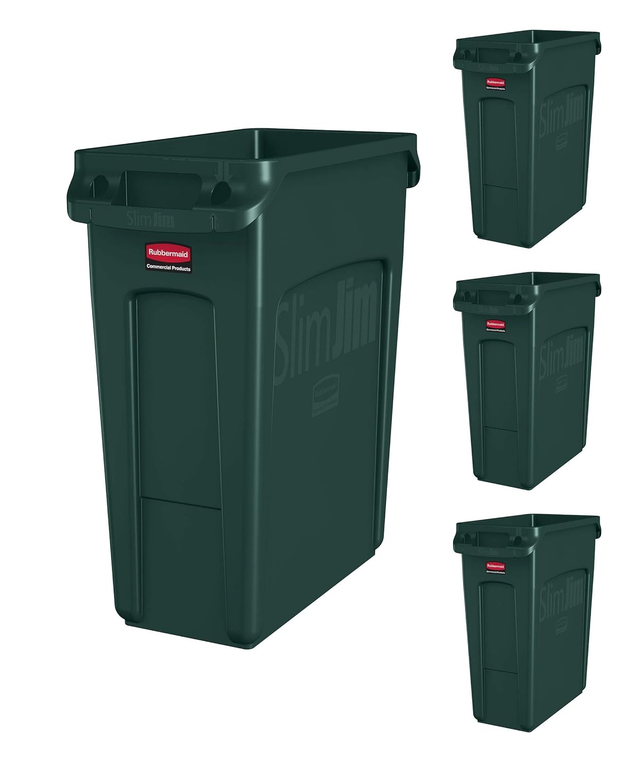 Rubbermaid Commercial Products Slim Jim Trash/Garbage Can with Venting Channels 16-Gallon Black for Kitchen/Office/Workspace Pack of 4