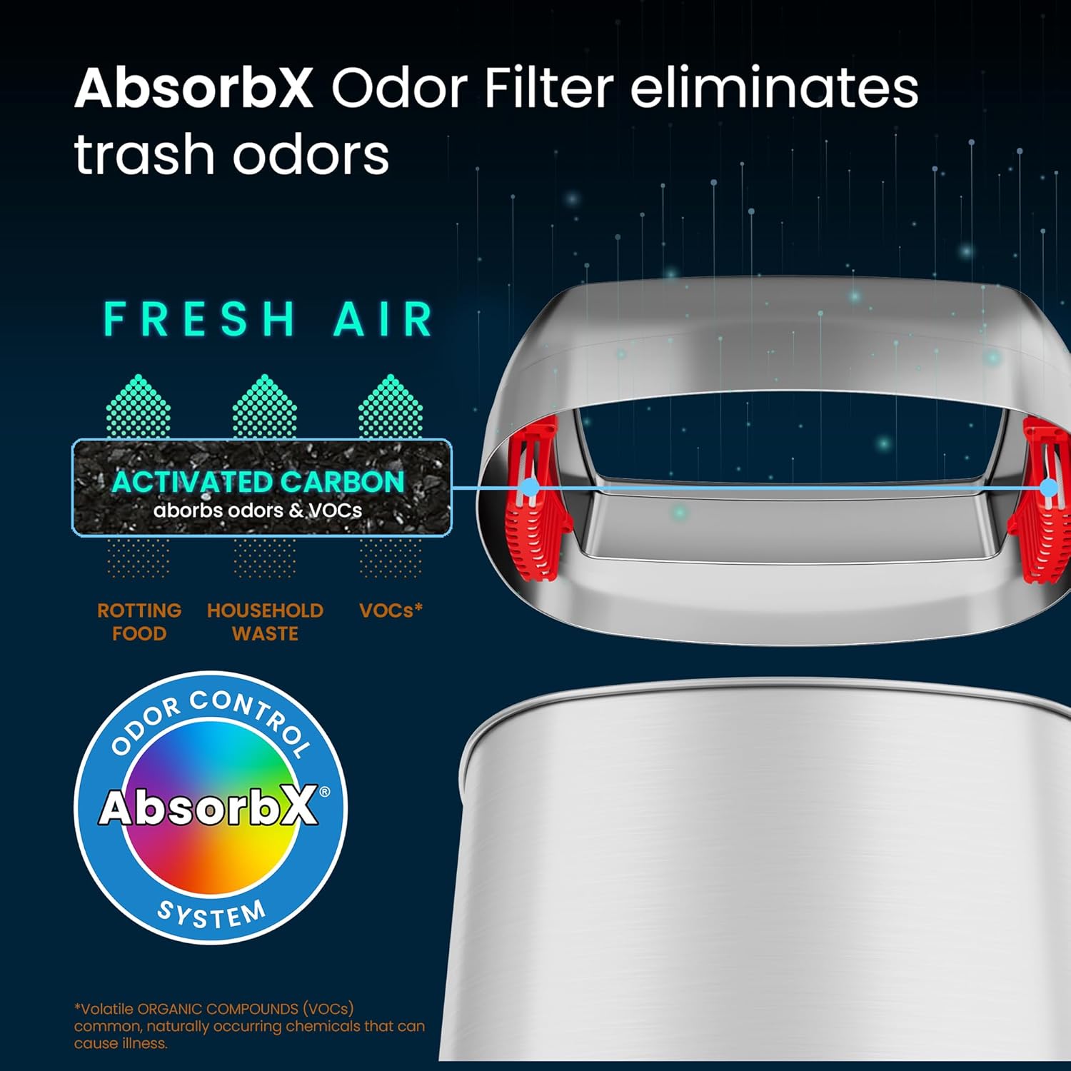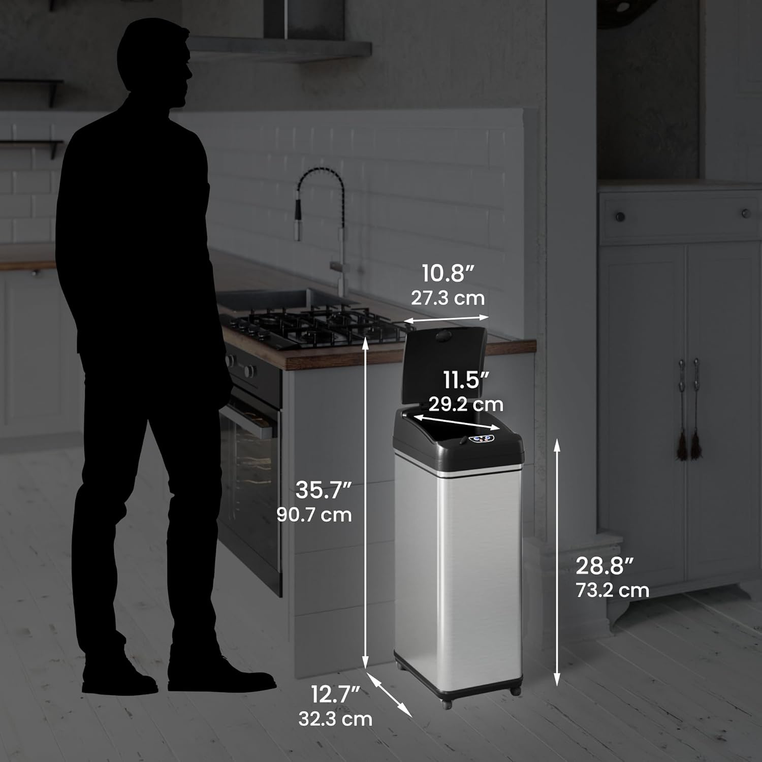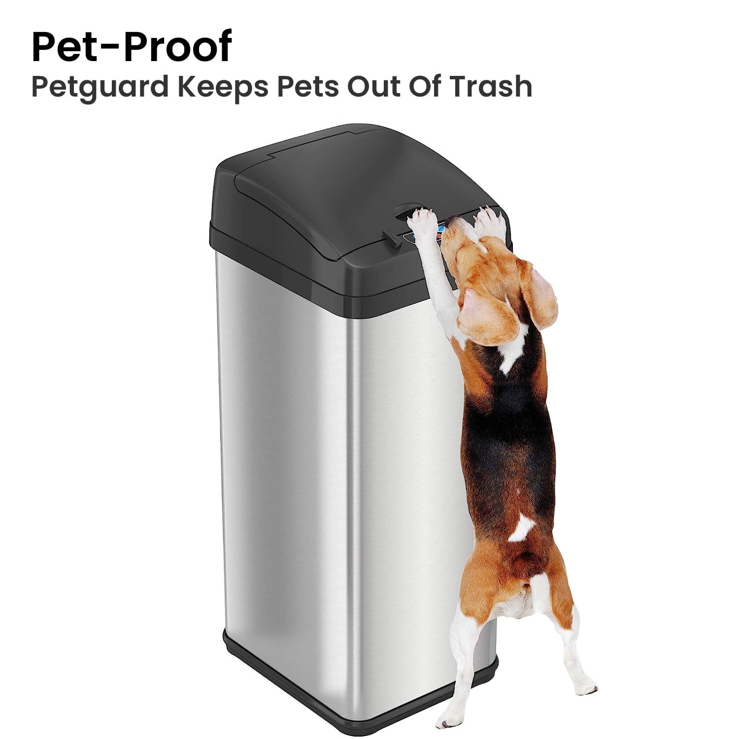 iTouchless Glide 13 Gallon Pet-Proof Sensor Trash Can with Wheels and Odor Control System, Stainless Steel