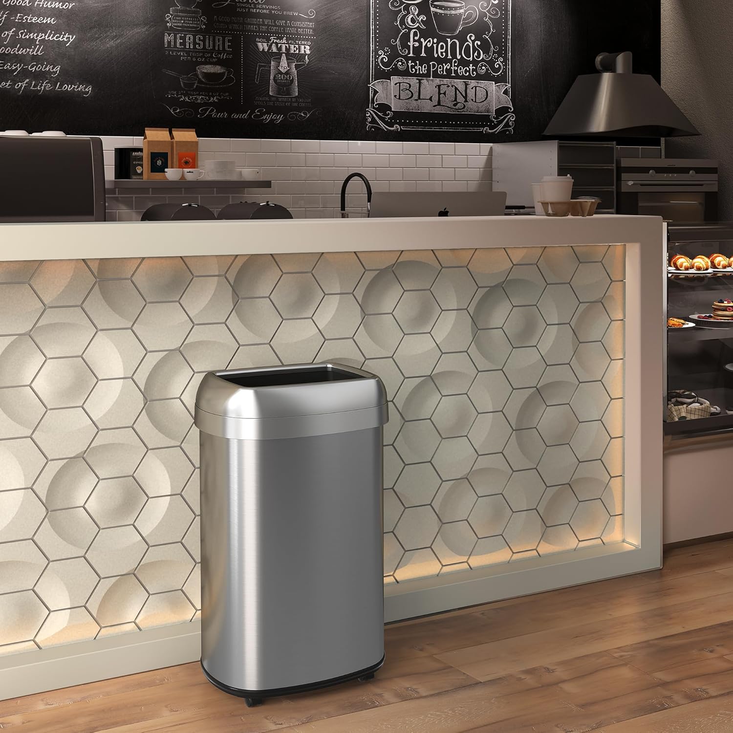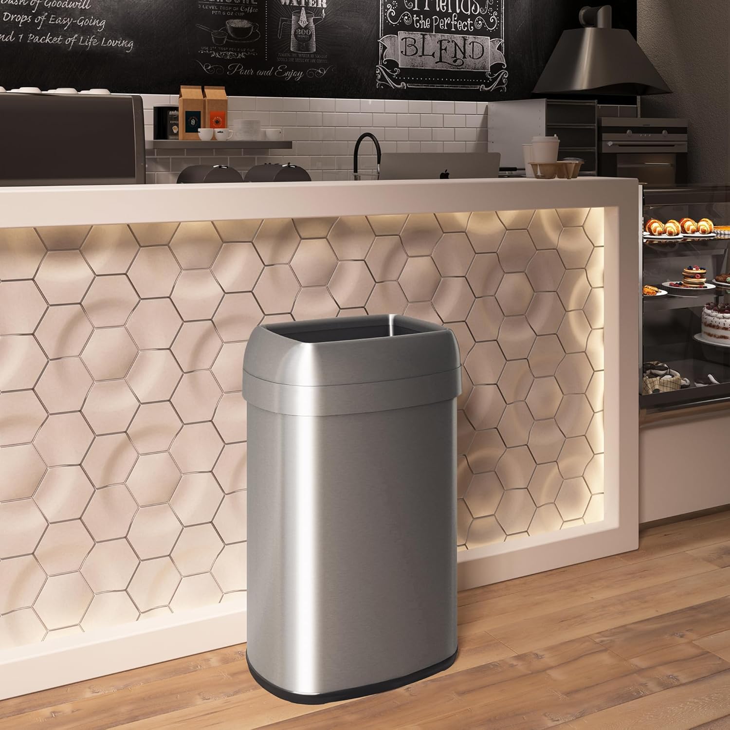 65L/17Gal Heavy Duty Open Top Commercial/Kitchen Trash Can, Fingerprint-Resistant Waste Bin for Office Bedroom Restaurant, Brushed Stainless Steel