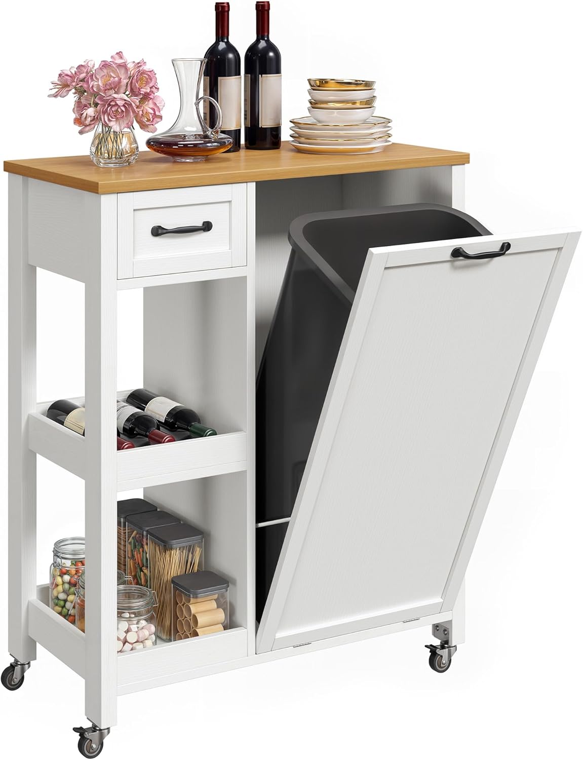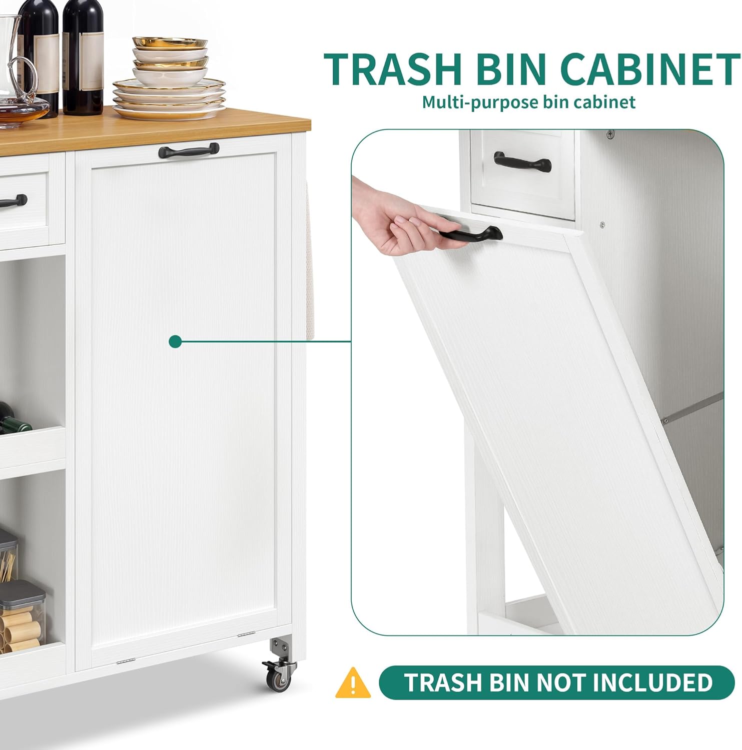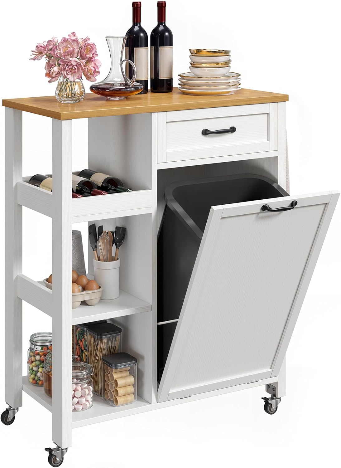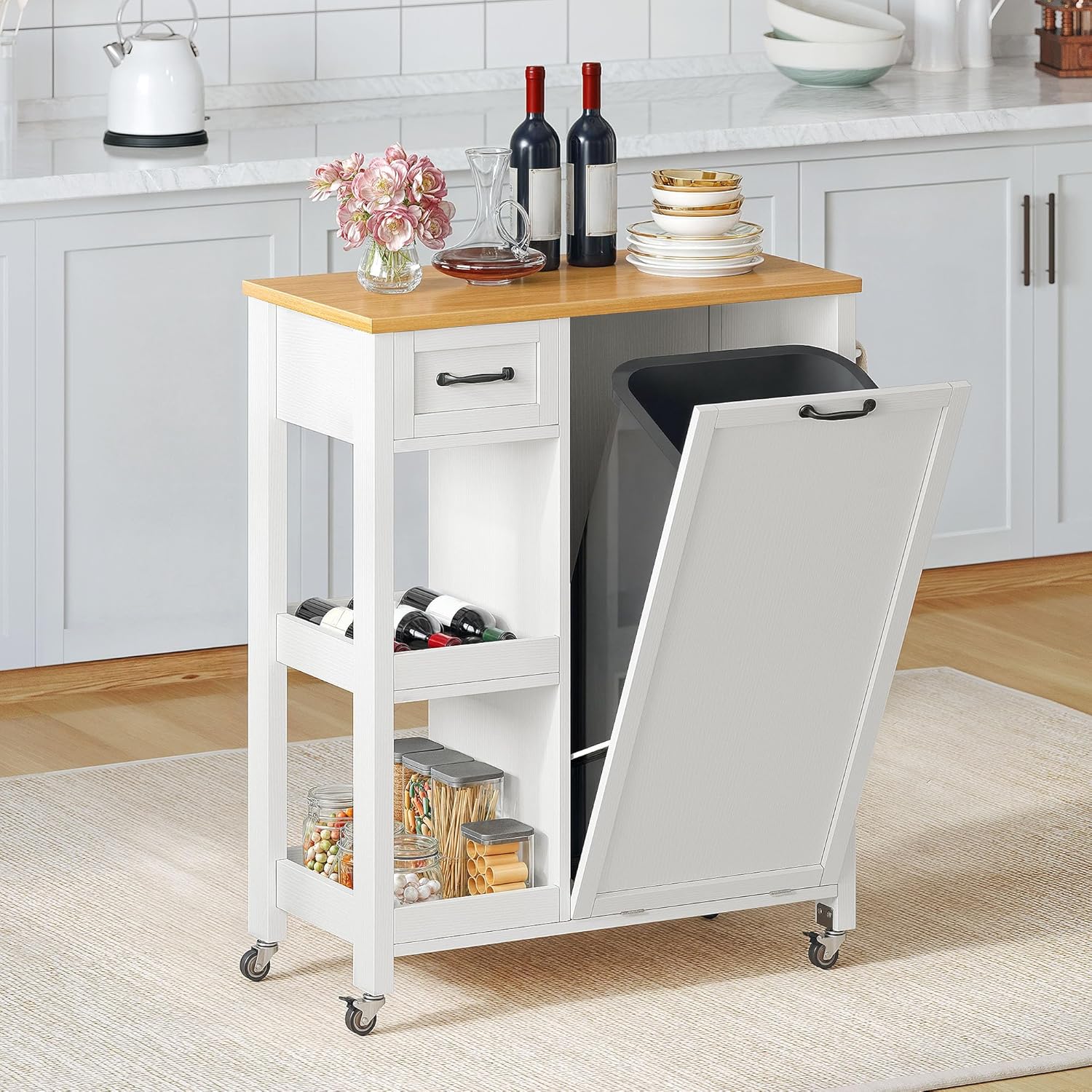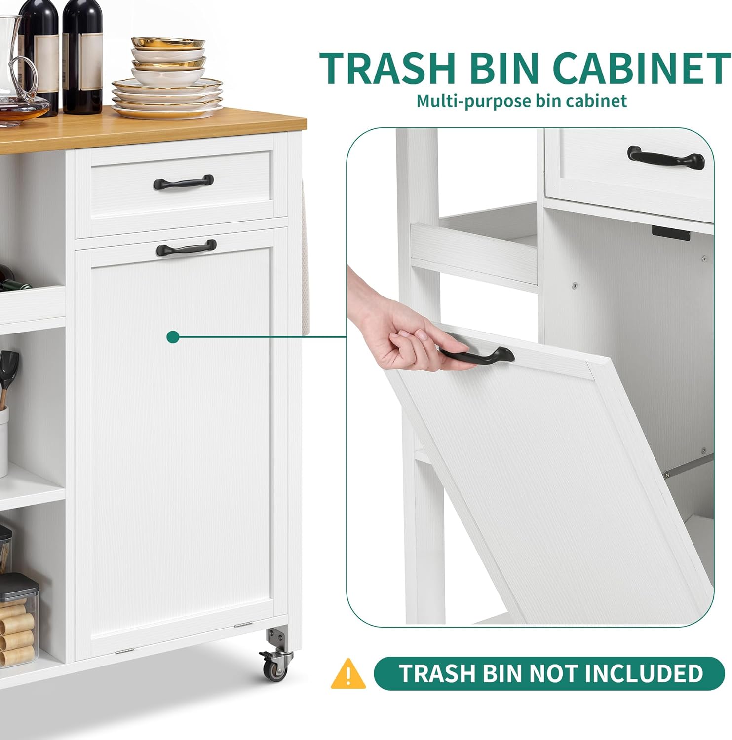 YITAHOME Kitchen Island Tilt-Out Trash Cabinet - Rolling Cart with Storage Shelves/Drawers, Fits 10 Gallon Bin, Oak & White