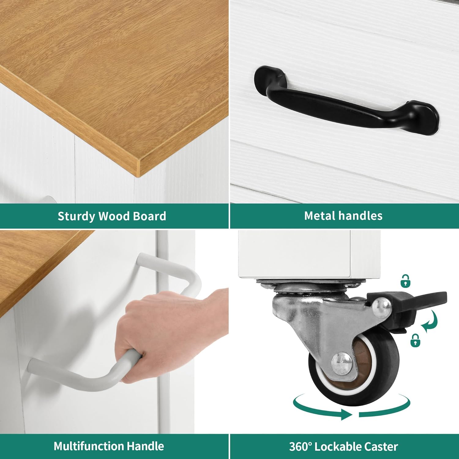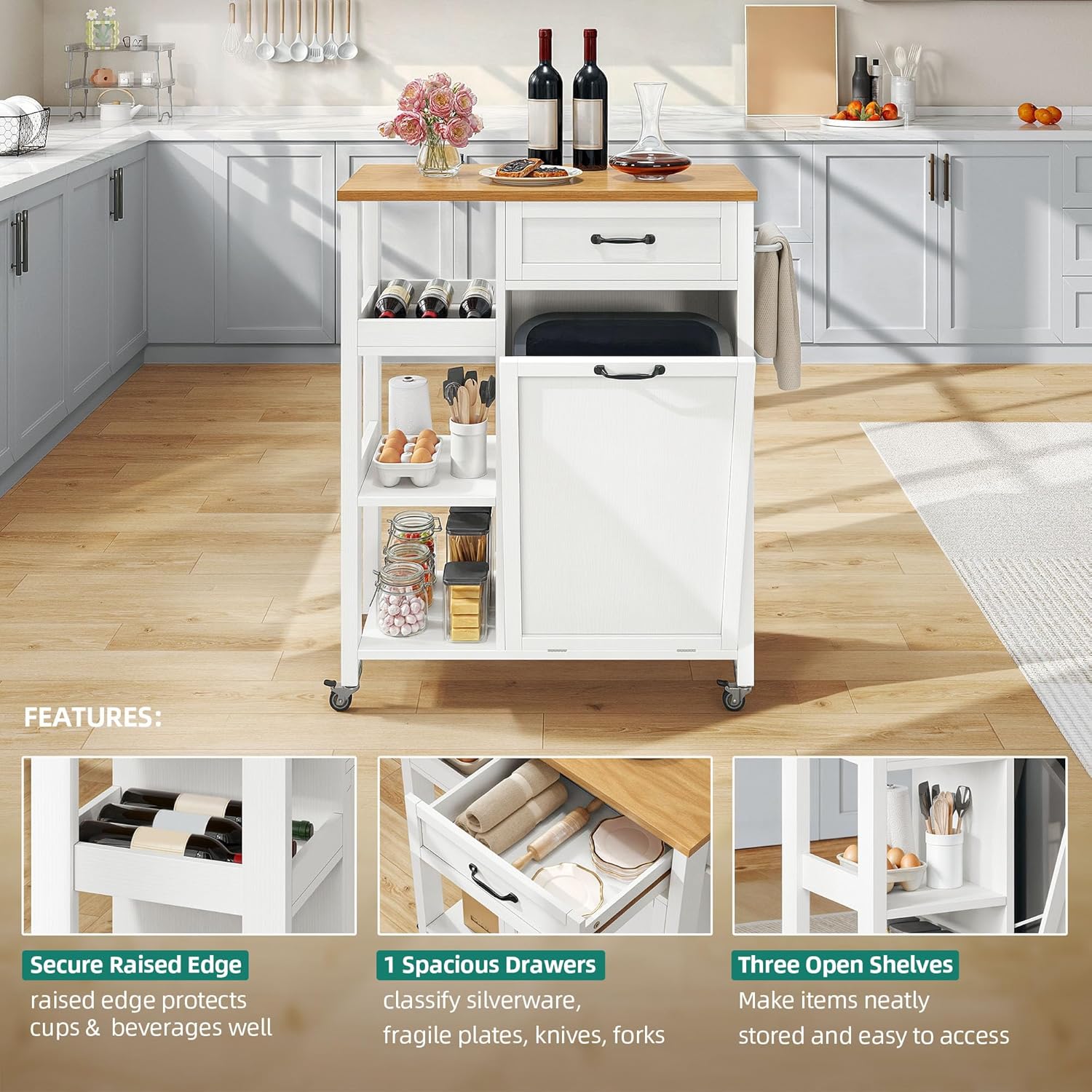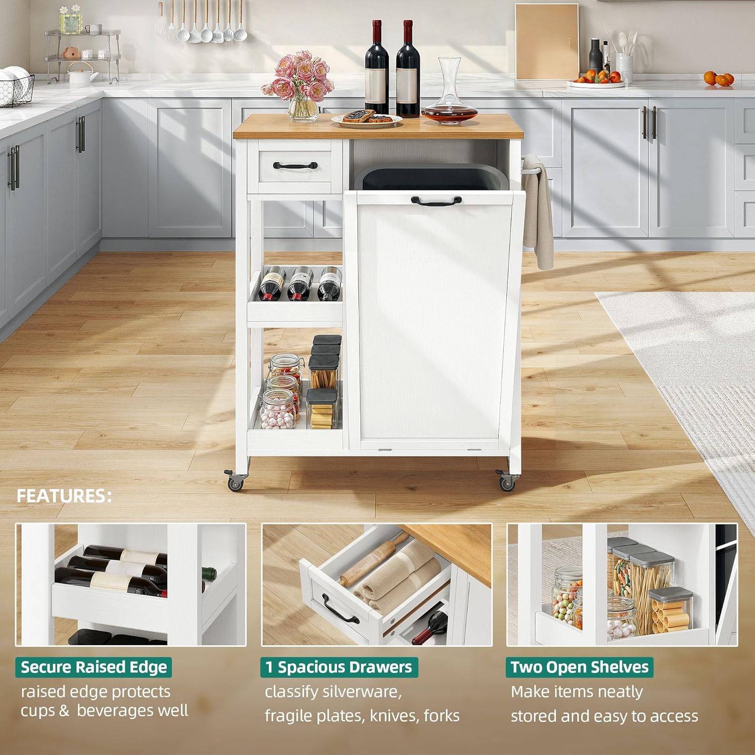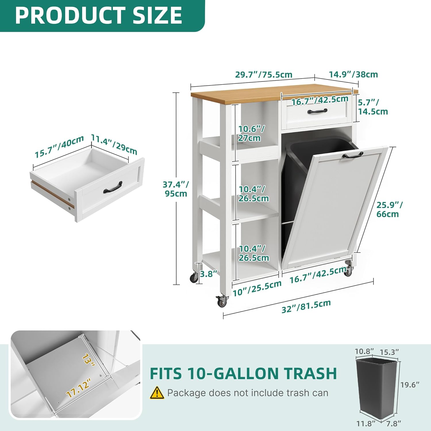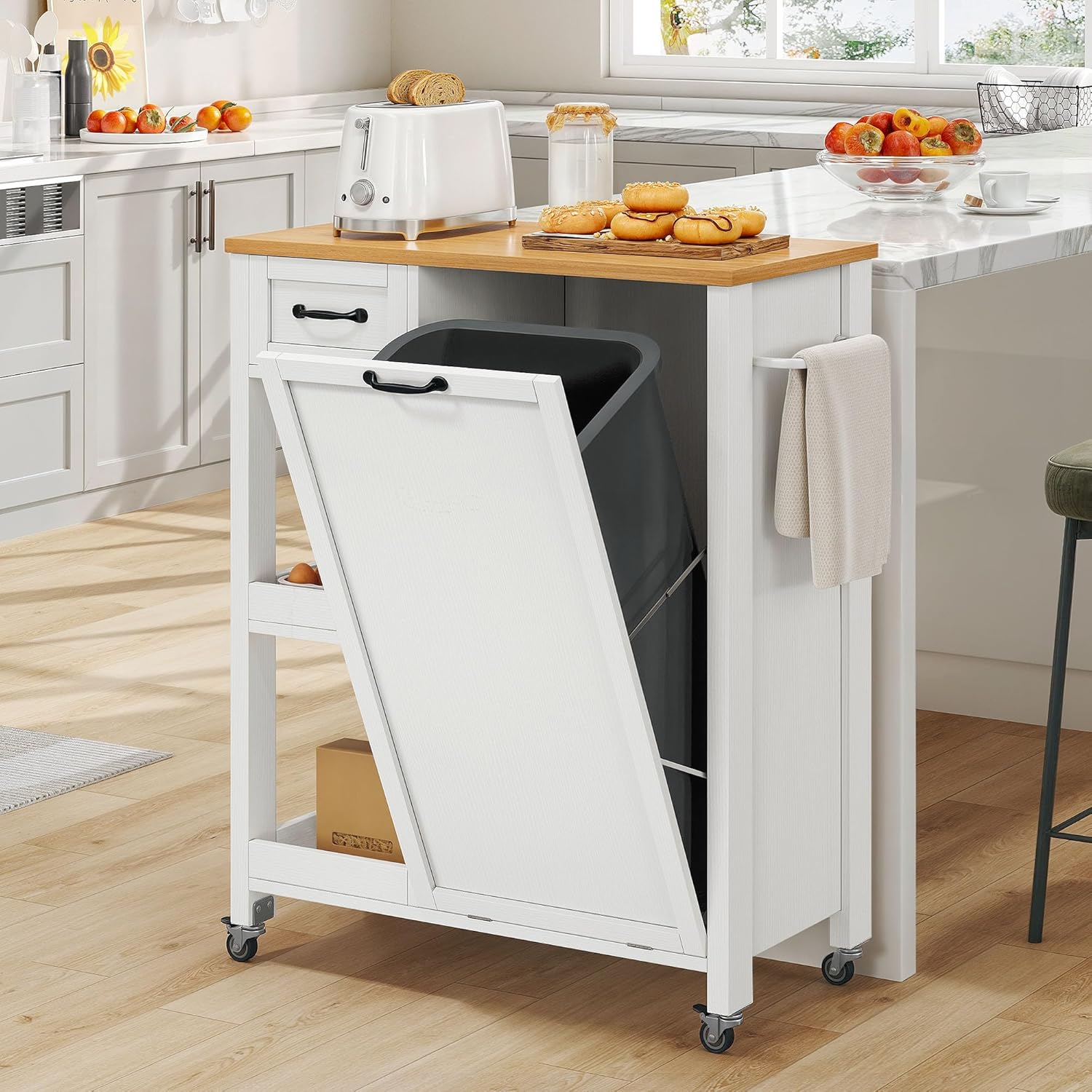 YITAHOME Kitchen Island Tilt-Out Trash Cabinet - Rolling Cart with Storage Shelves/Drawers, Fits 10 Gallon Bin, Oak & White