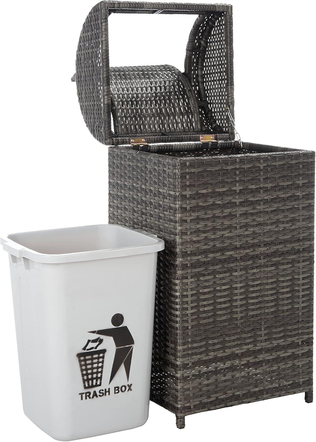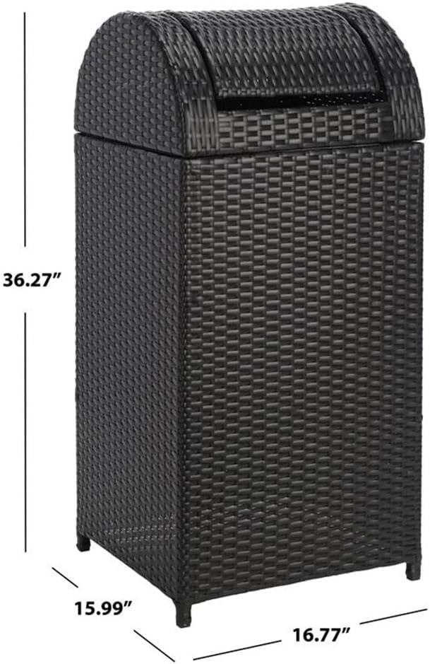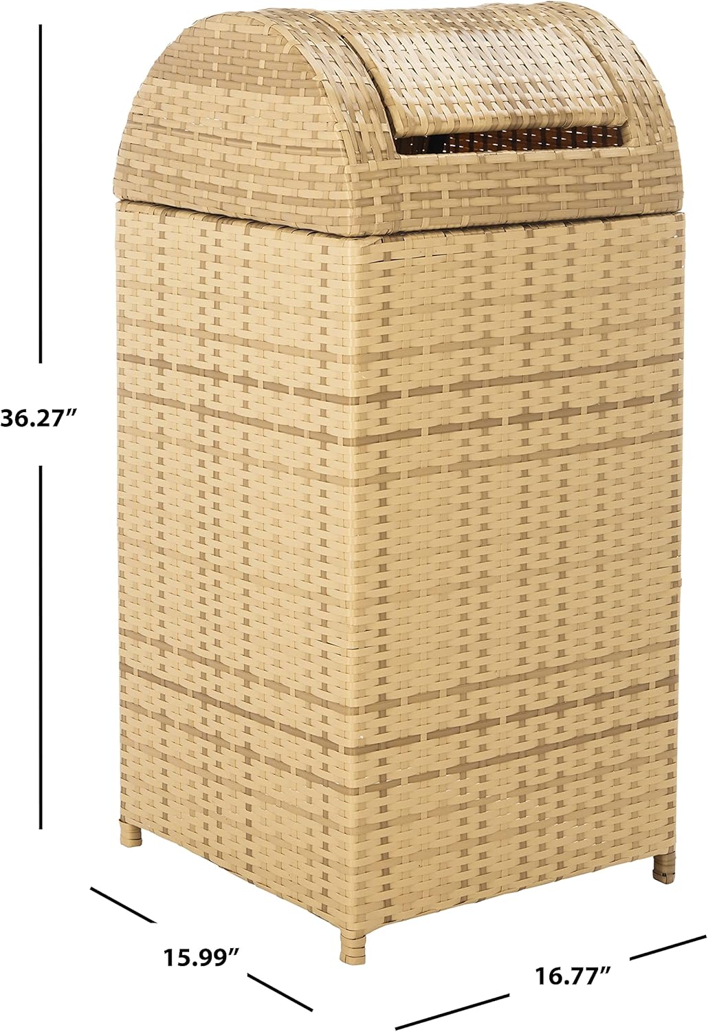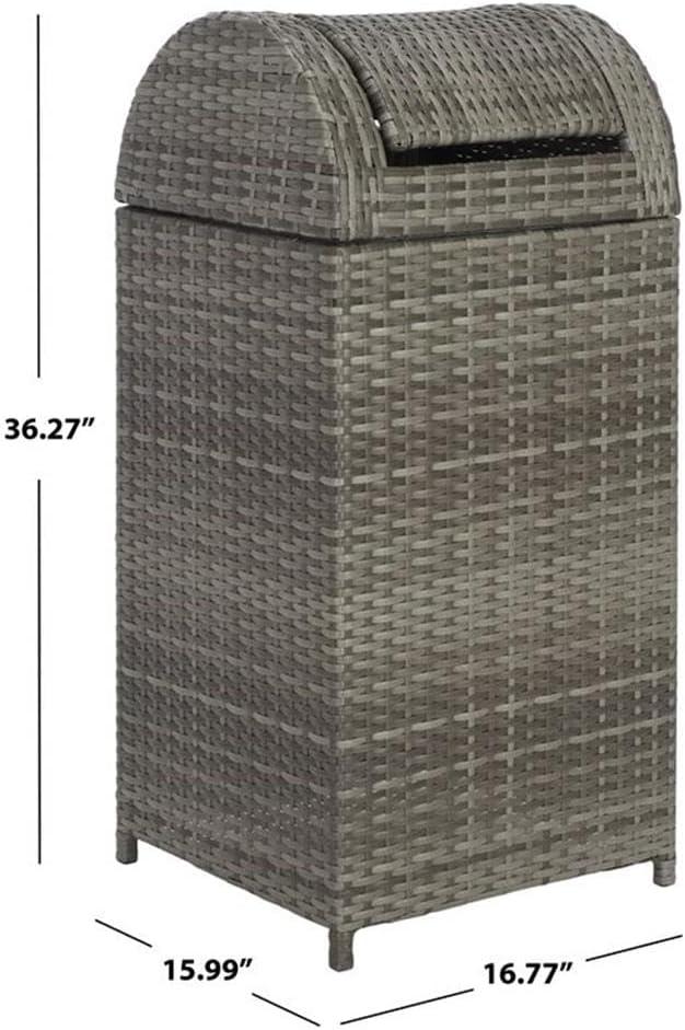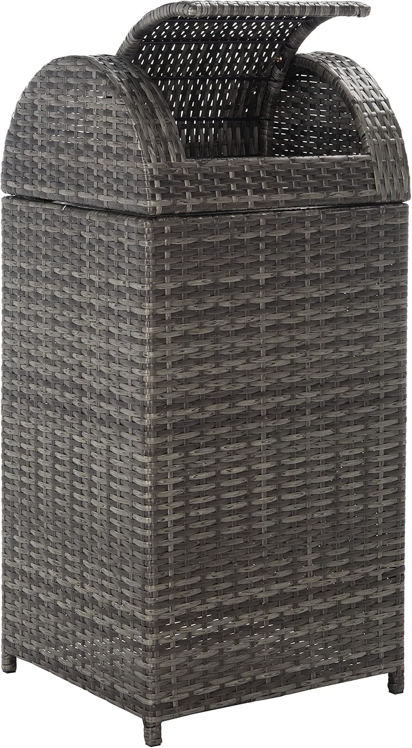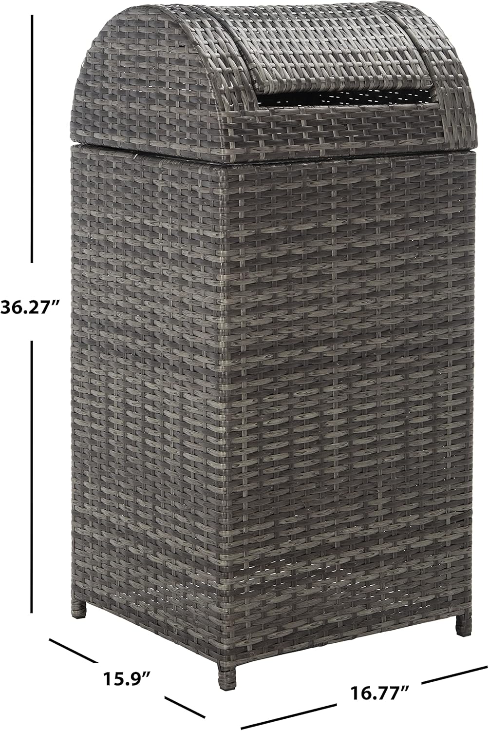 SAFAVIEH Outdoor Collection Mazeli Grey Brown Woven Swing Top Dome Lid Trash Bin (Fully Assembled) PAT7511C
