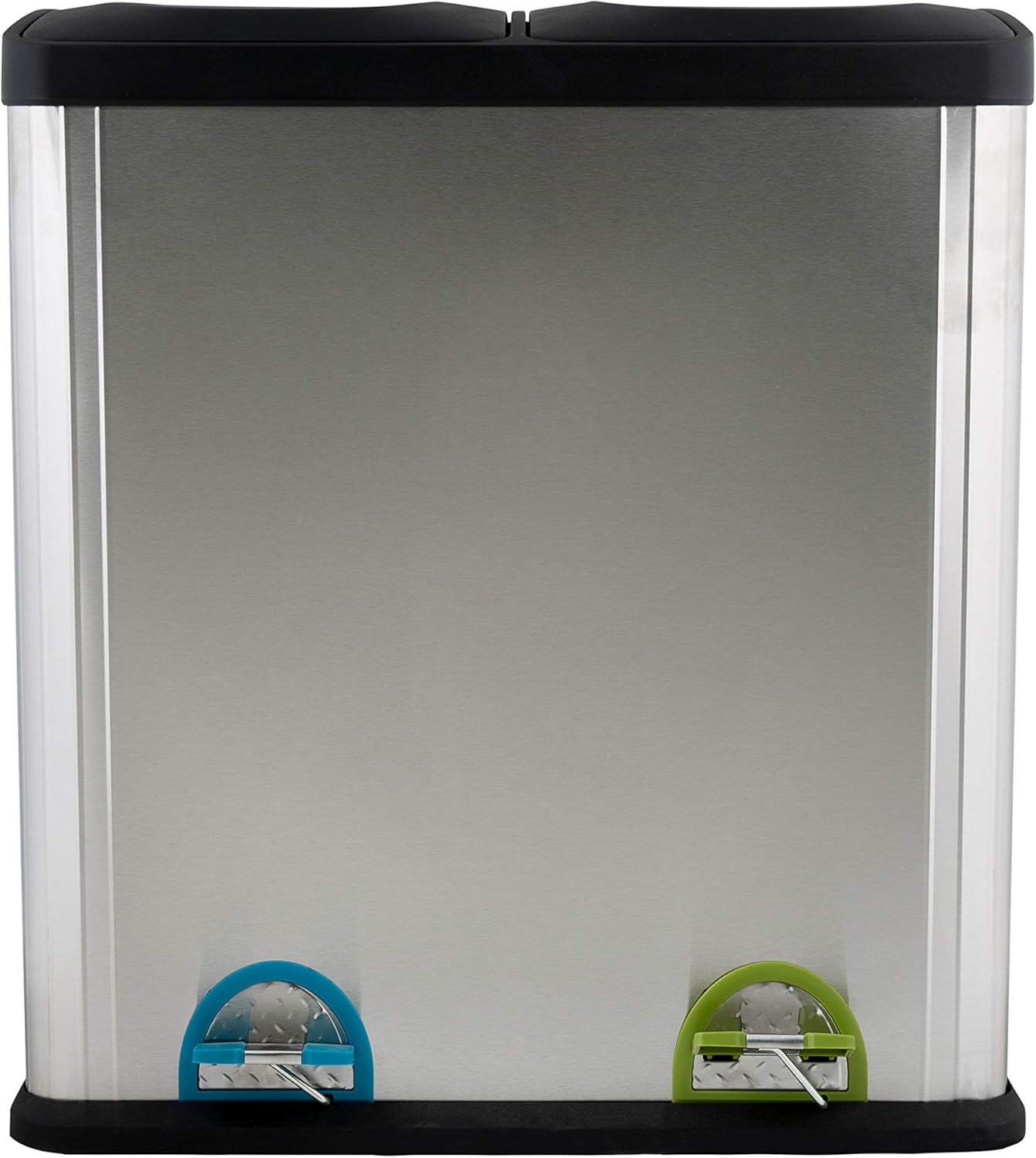 Organize It All Dual Compartment Step-On Recycling Bin Trash Can, 16-Gallon, Silver, Black
