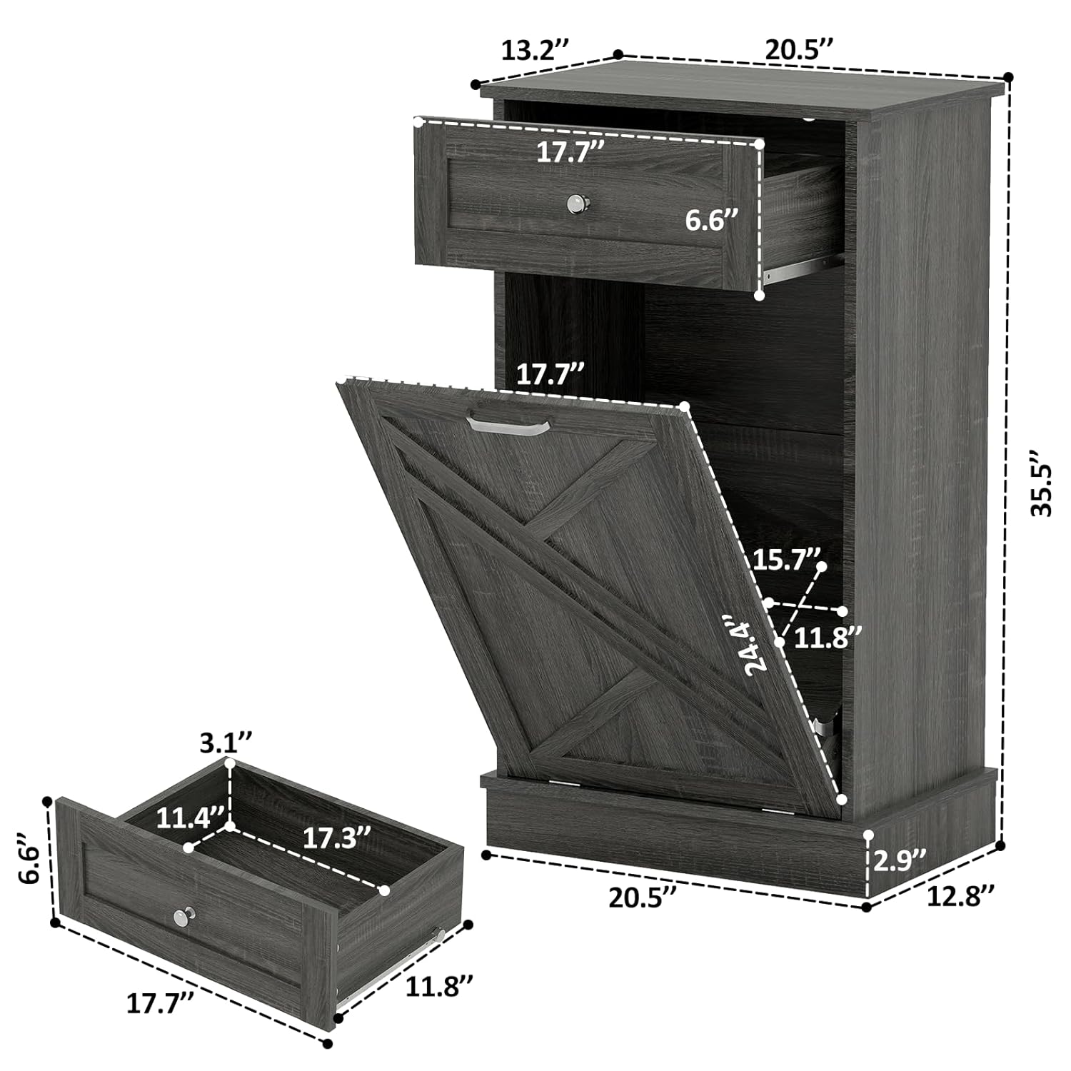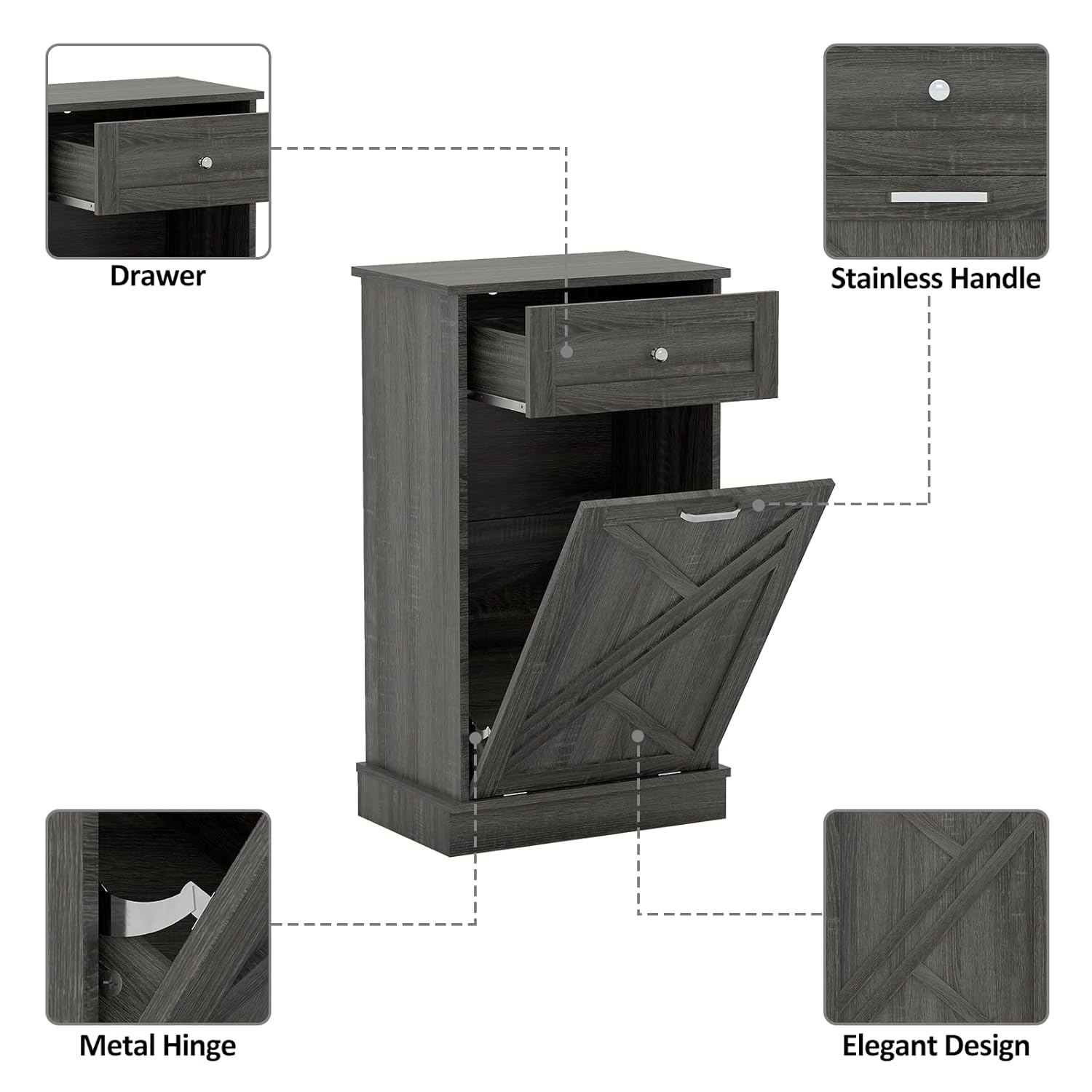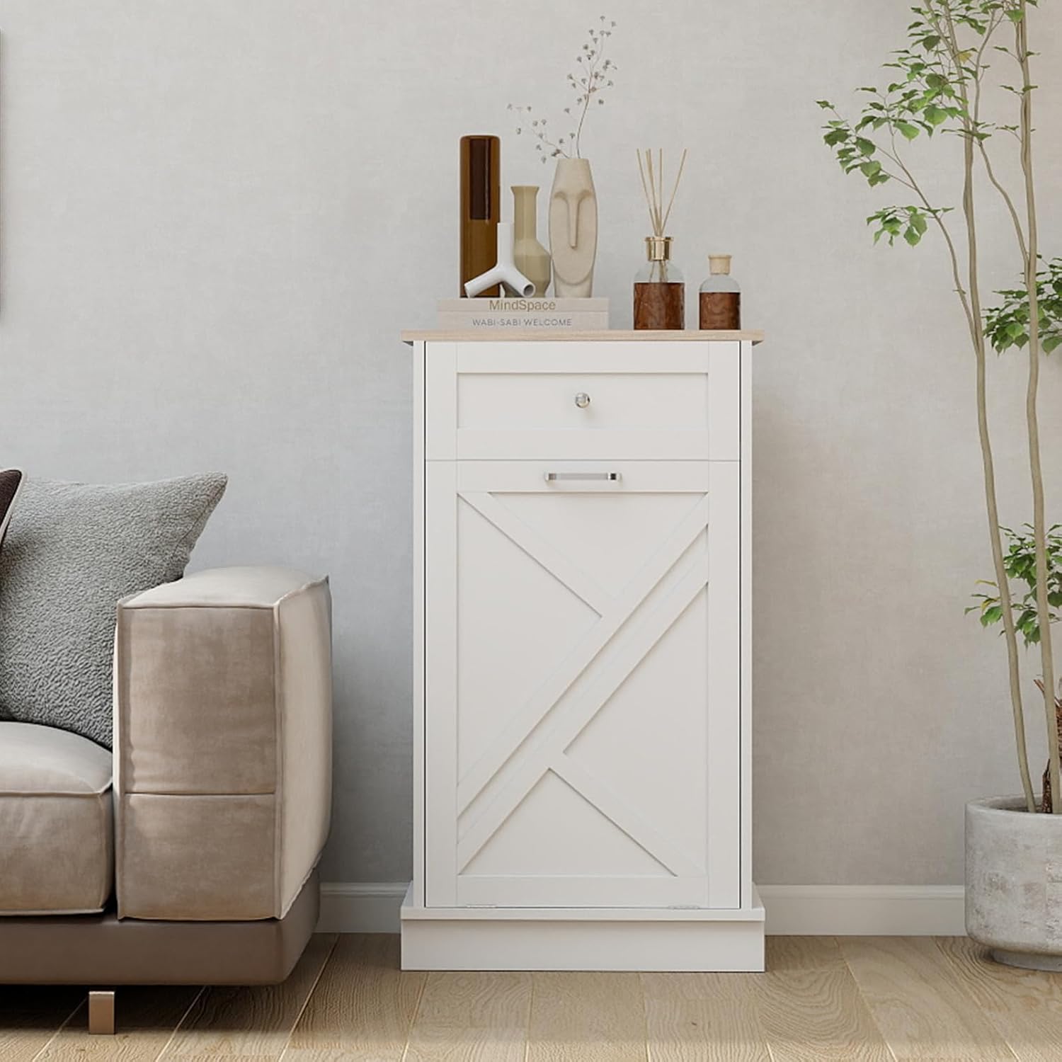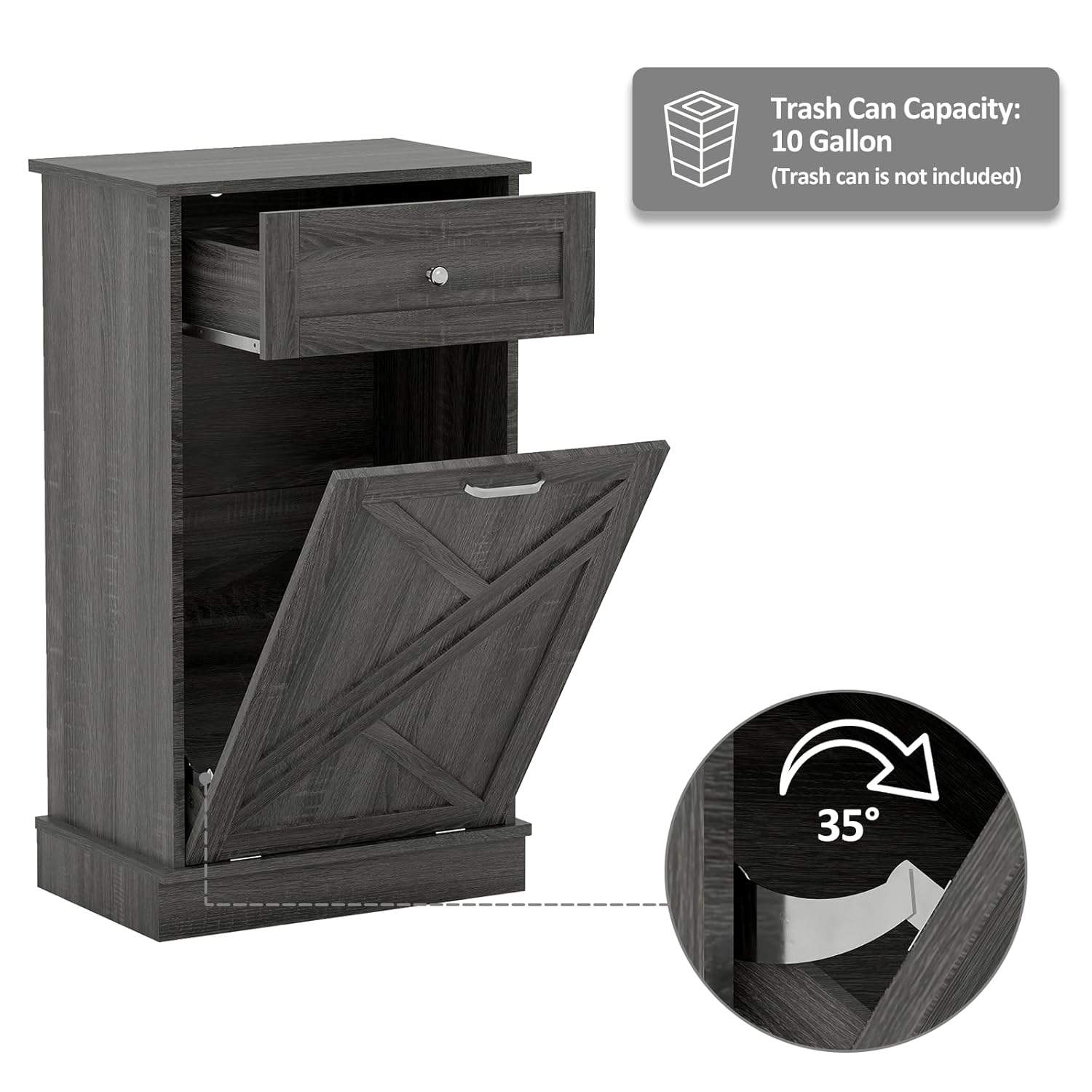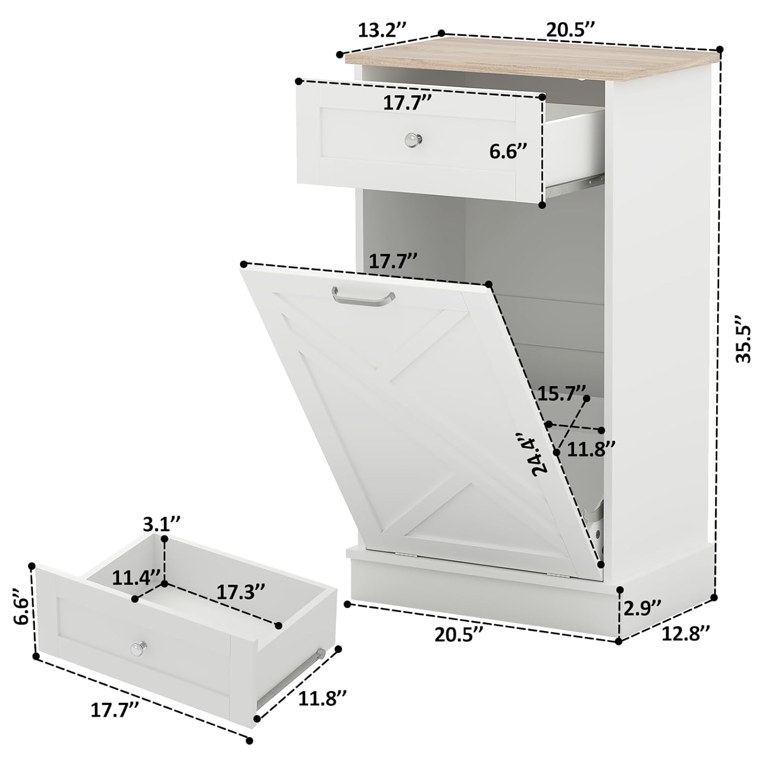 Tilt Out Trash Cabinet-Free Standing Kitchen Waste Bin-Wooden Recycling Trash Cabinet with Drawer-White