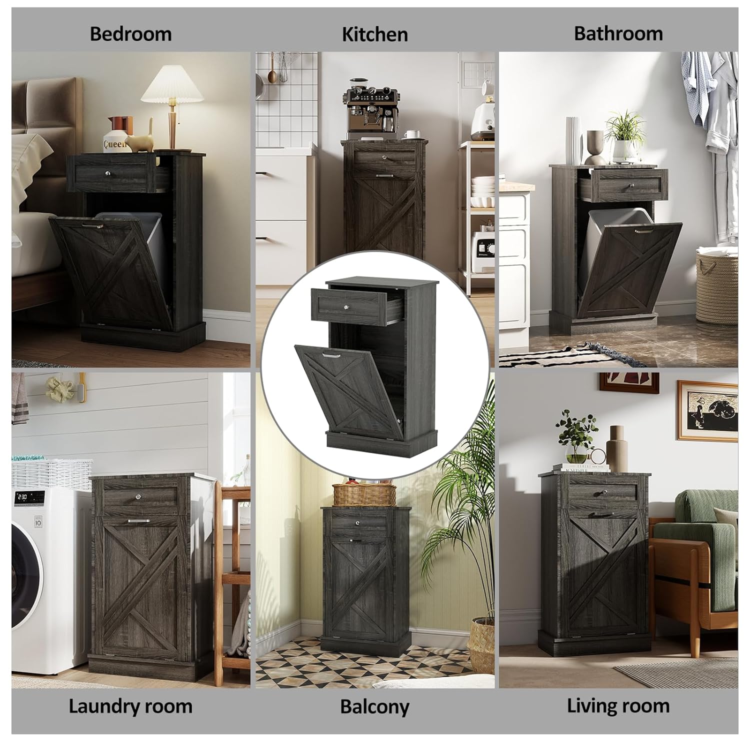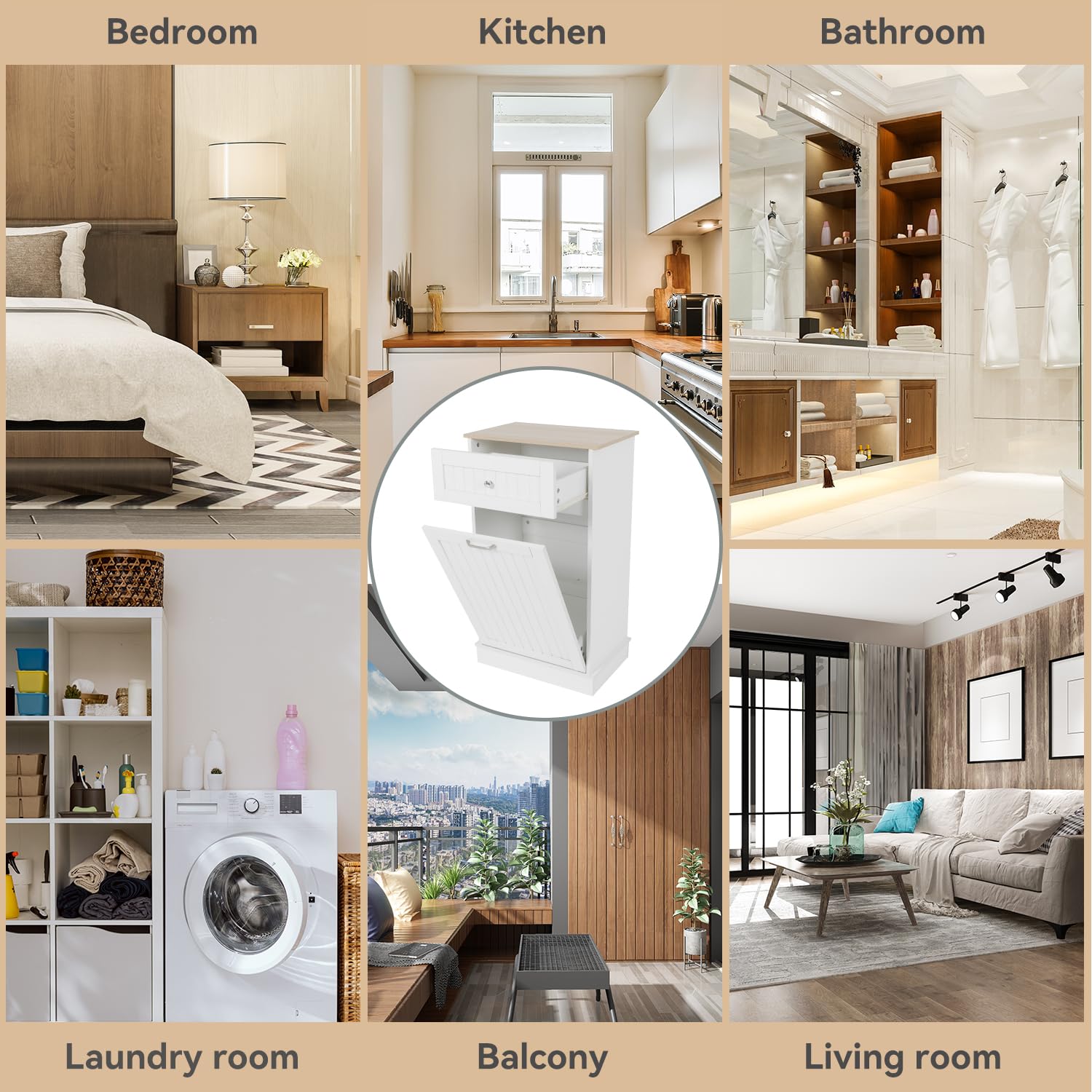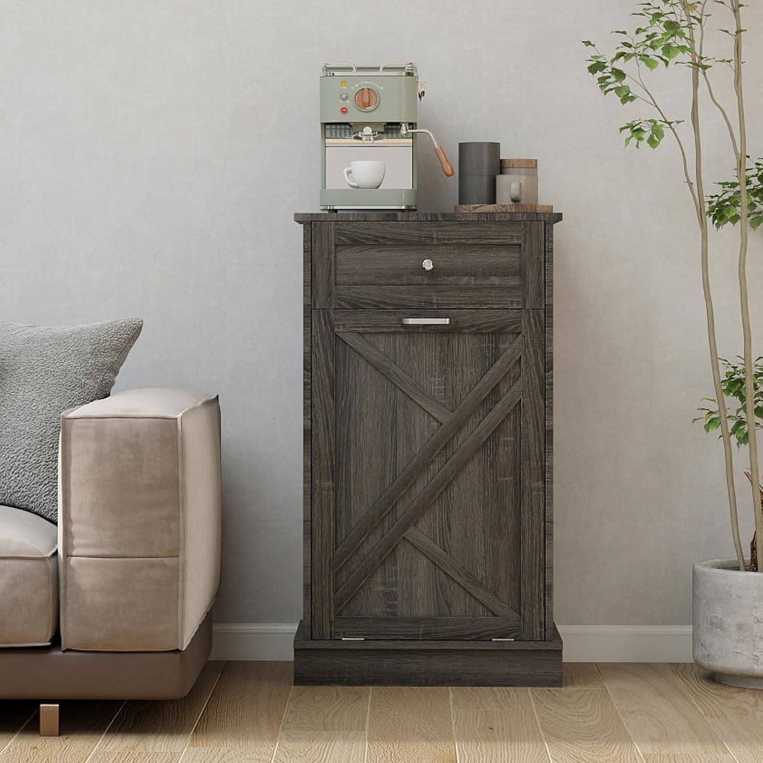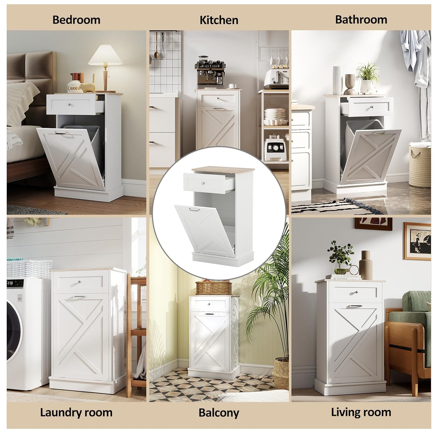 Tilt Out Trash Cabinet-Free Standing Kitchen Waste Bin-Wooden Recycling Trash Cabinet with Drawer-White