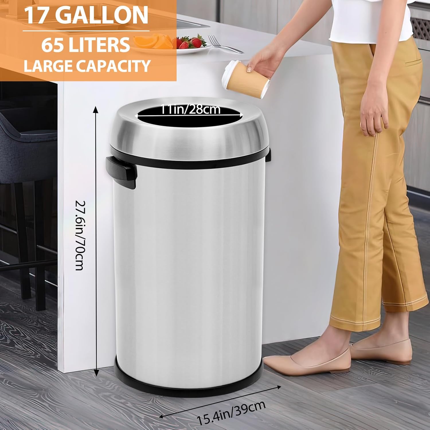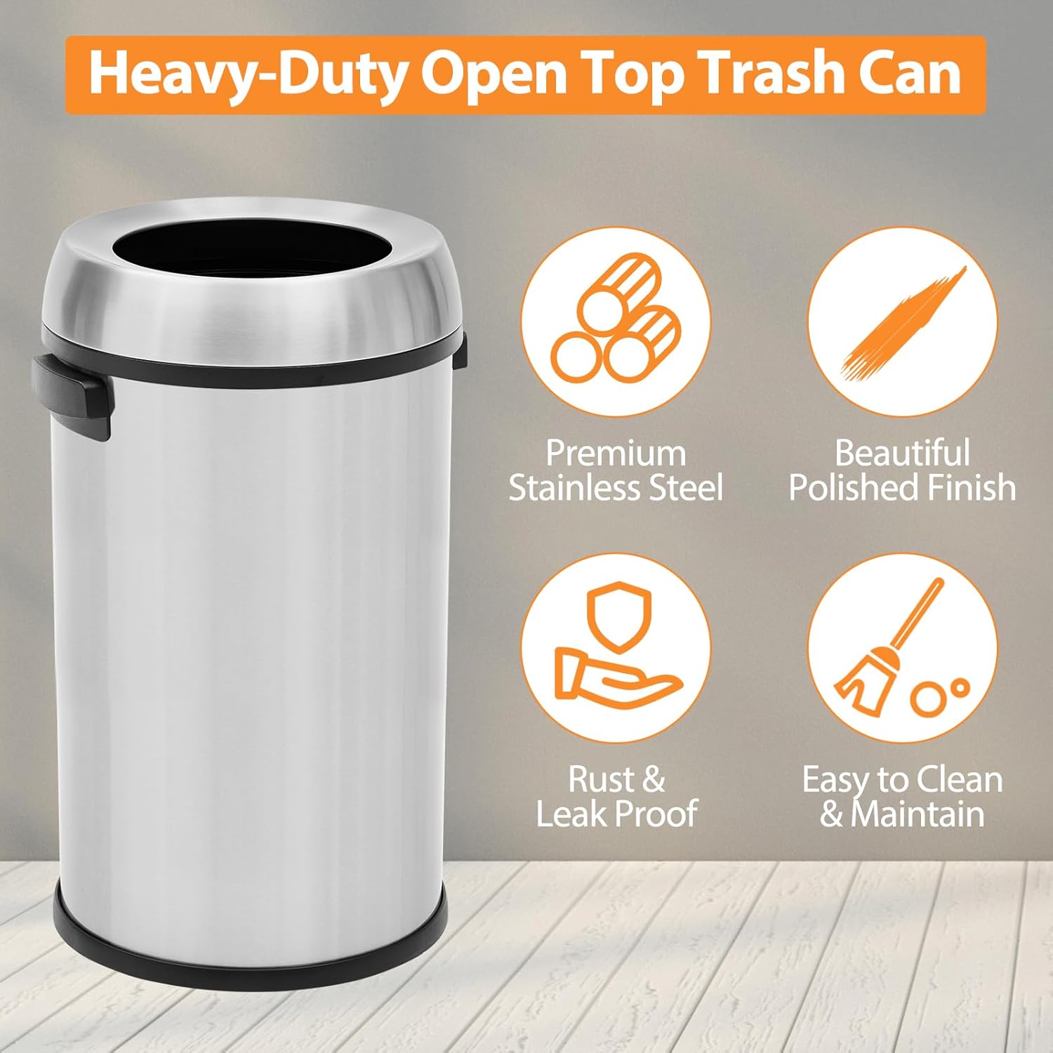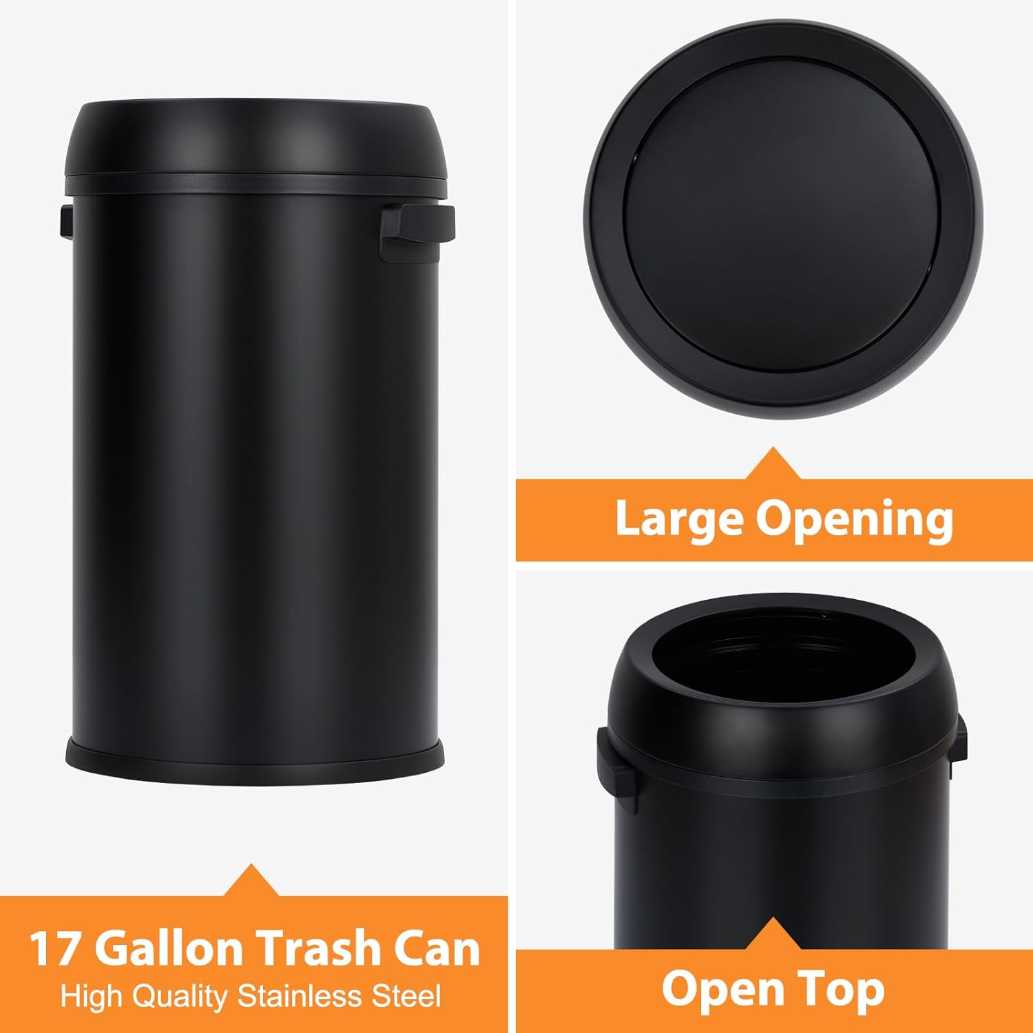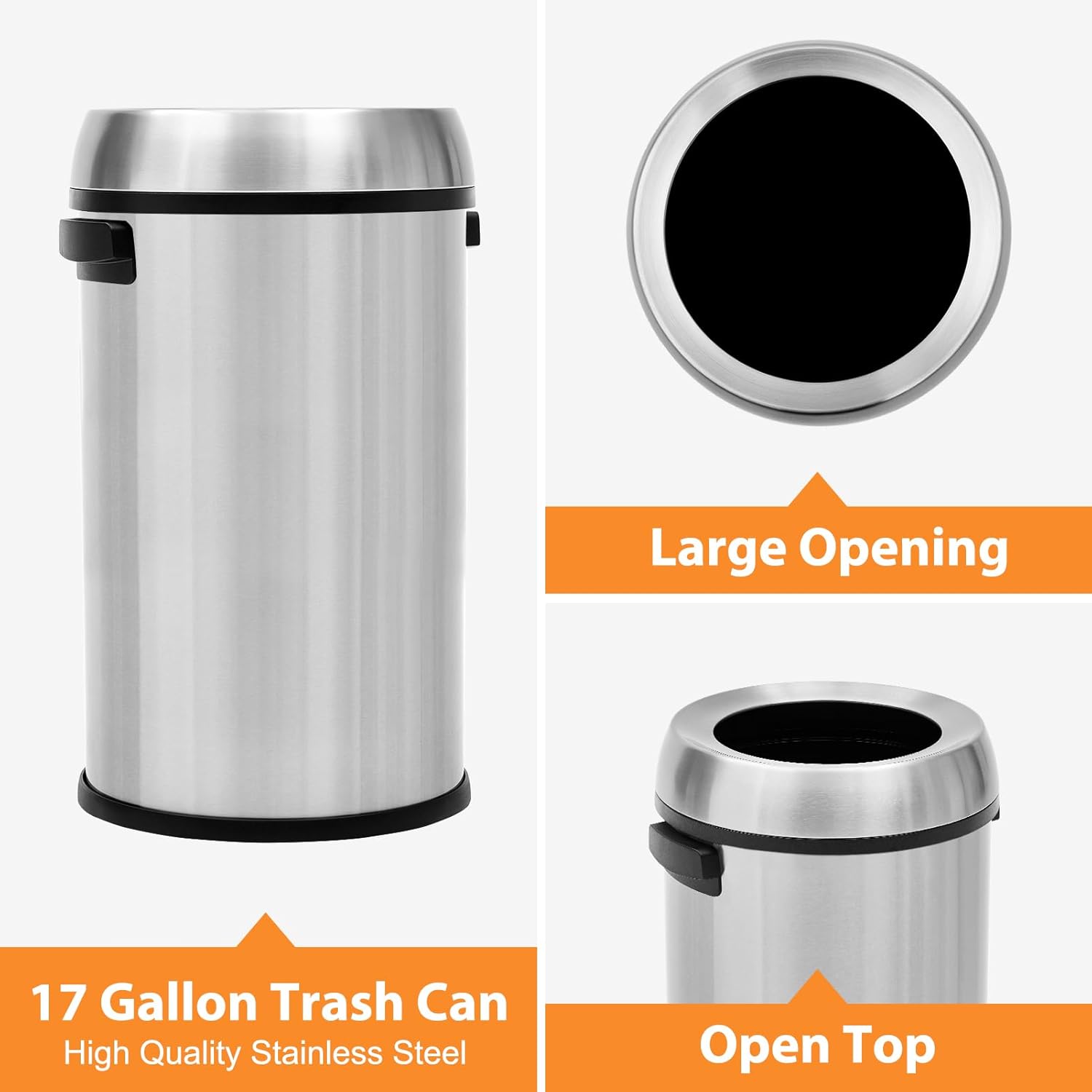 Garvee 18.5 gal/70 L Open Top Trash Can, Stainless Steel Garbage Can with Removable Inner Bucket, Heavy Duty Commercial Grade Round Waste Container for Kitchen, Home, Office