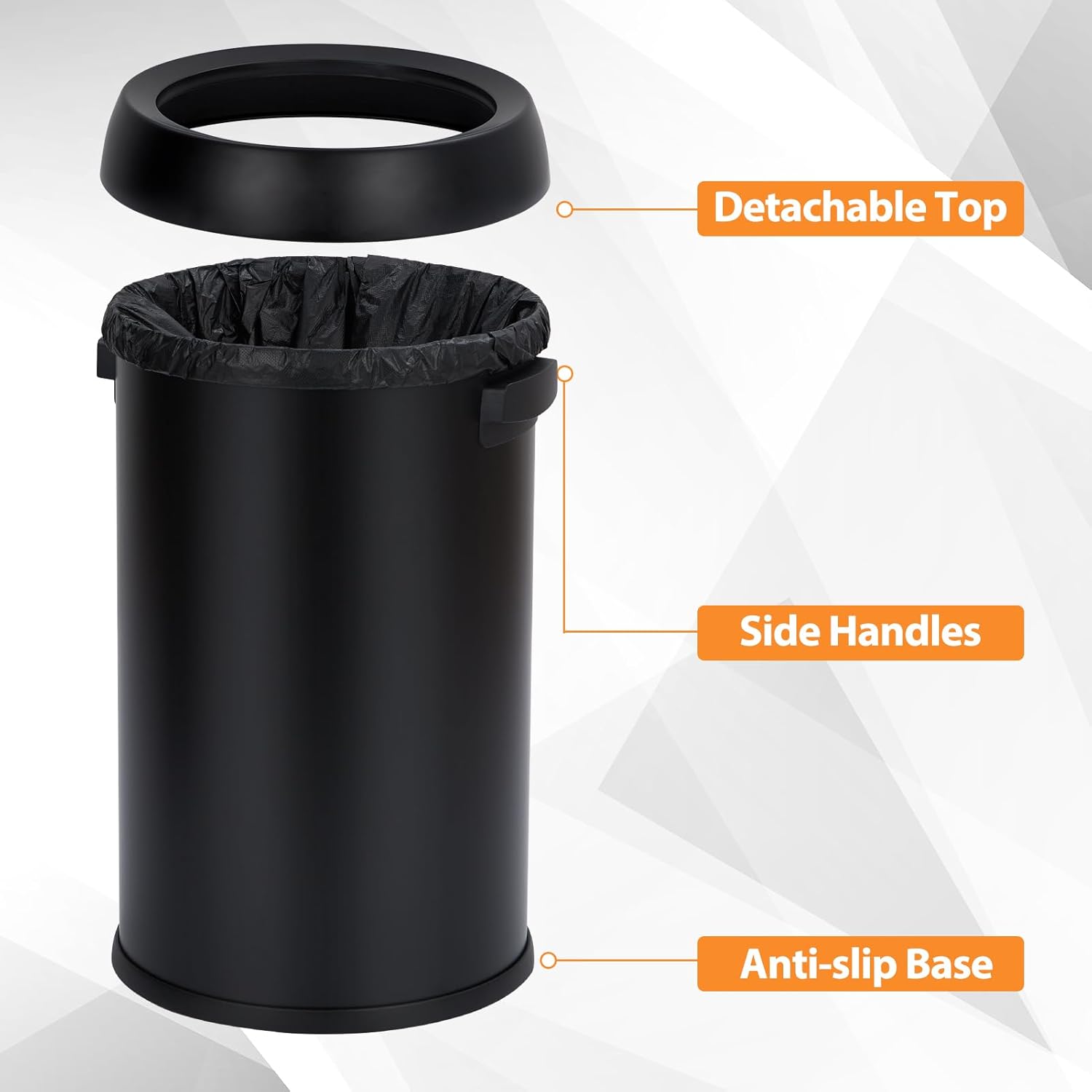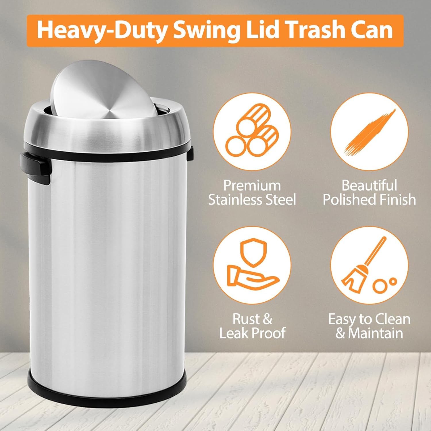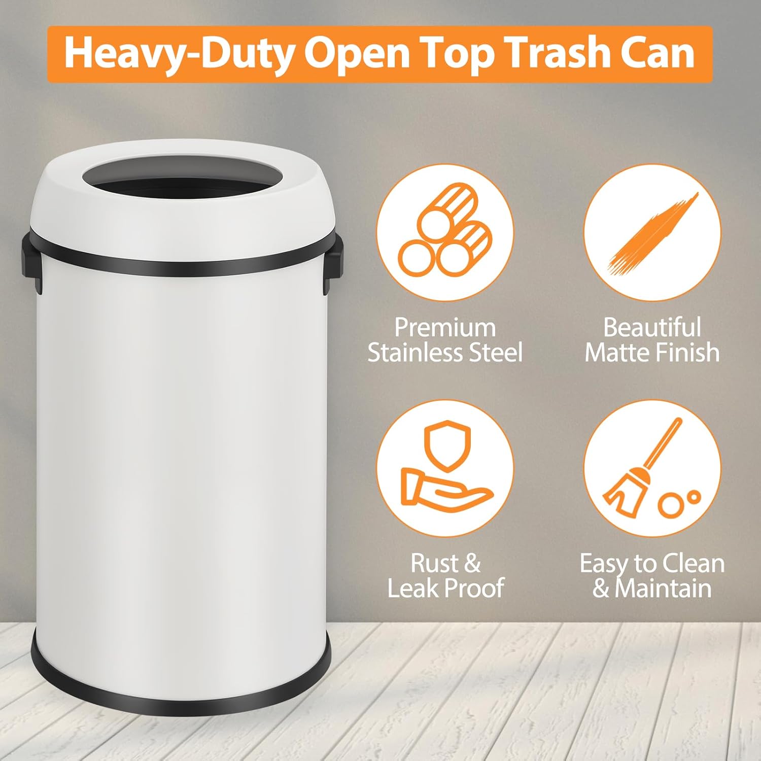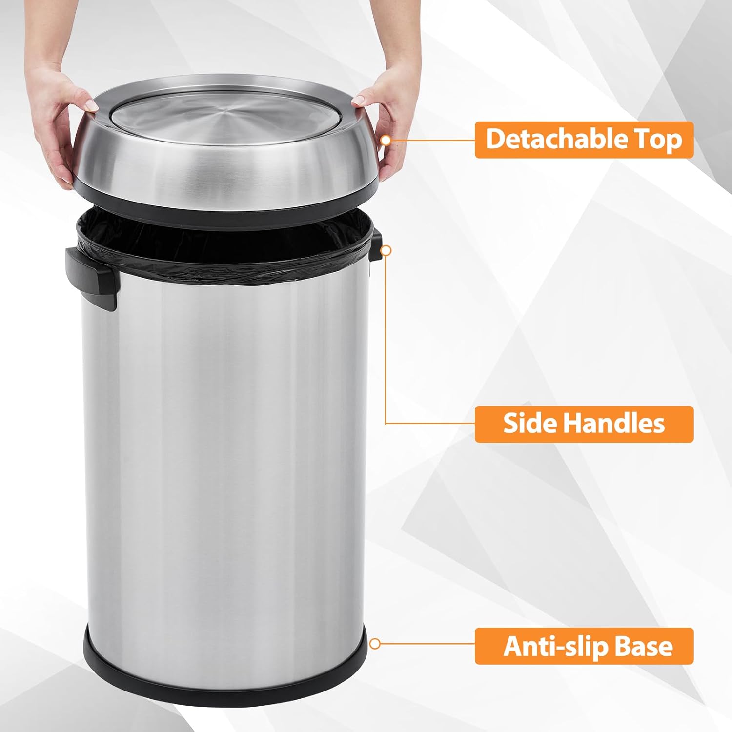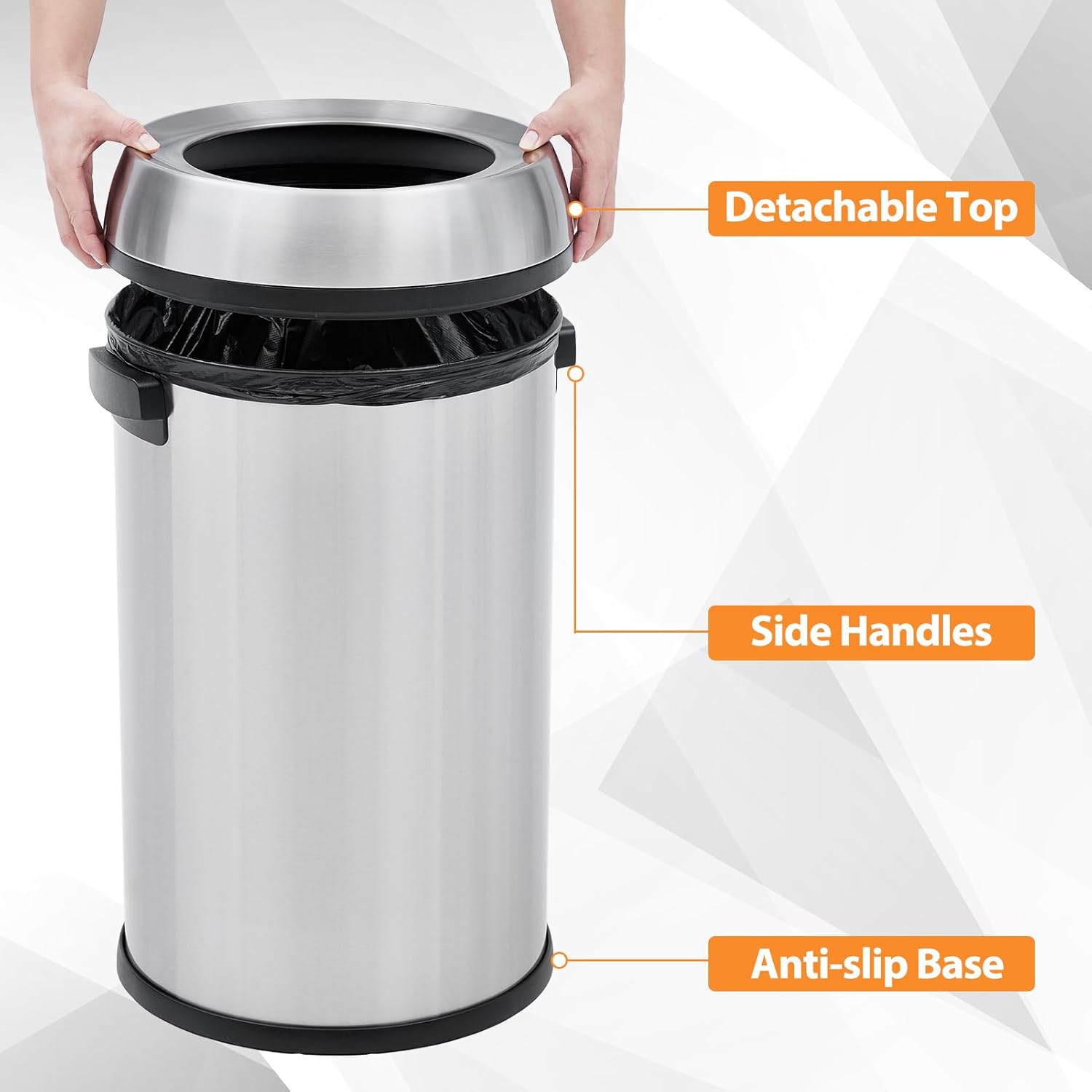 Garvee 18.5 gal/70 L Open Top Trash Can, Stainless Steel Garbage Can with Removable Inner Bucket, Heavy Duty Commercial Grade Round Waste Container for Kitchen, Home, Office