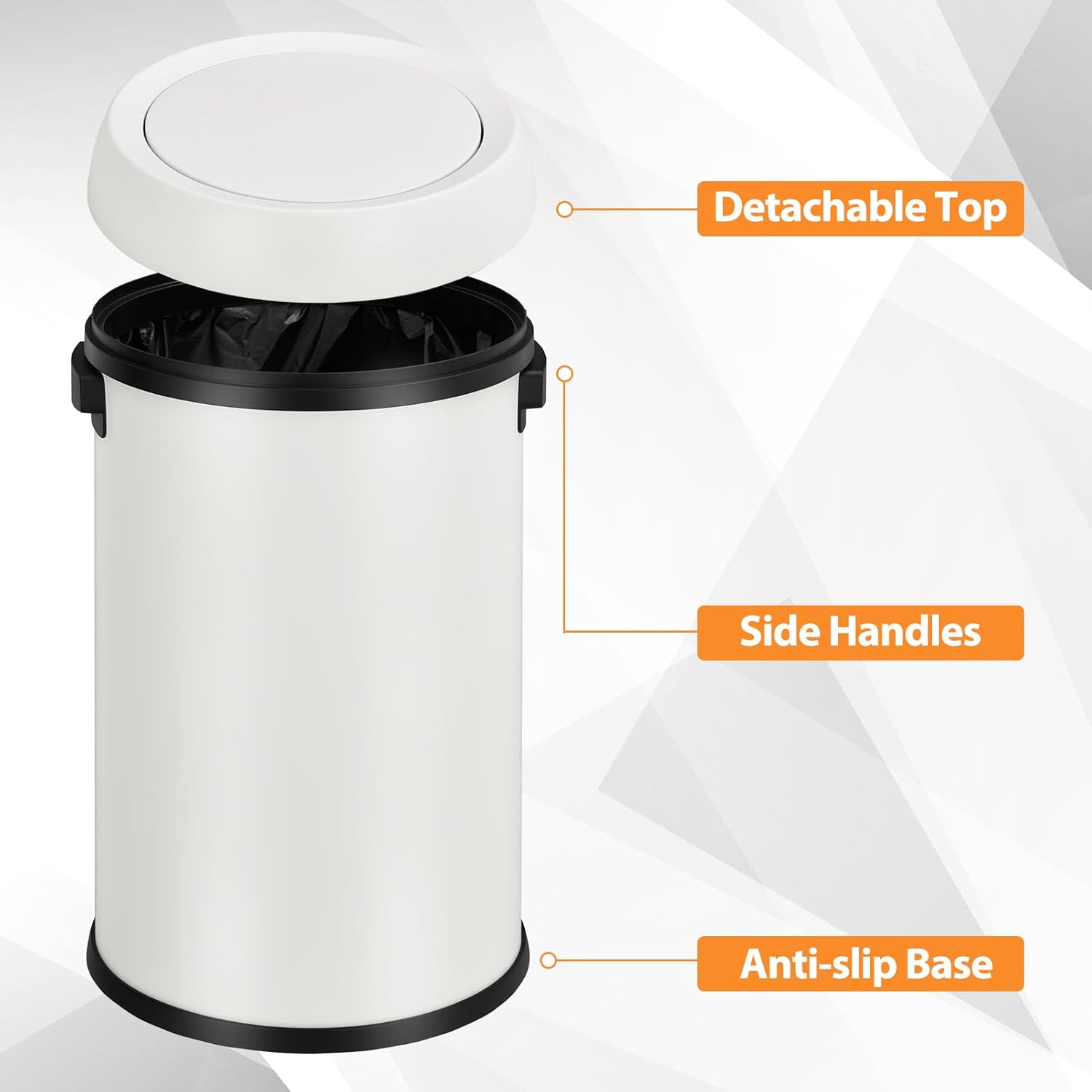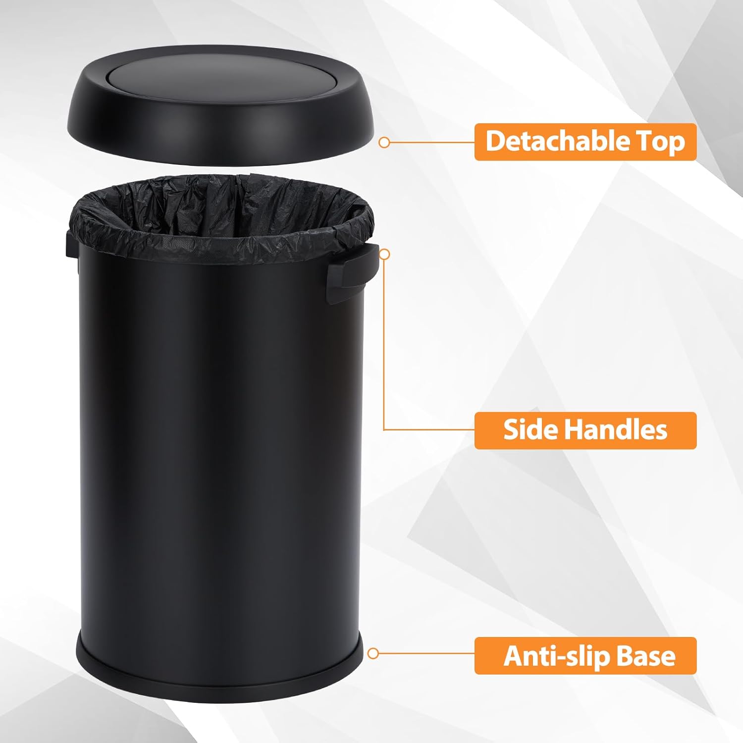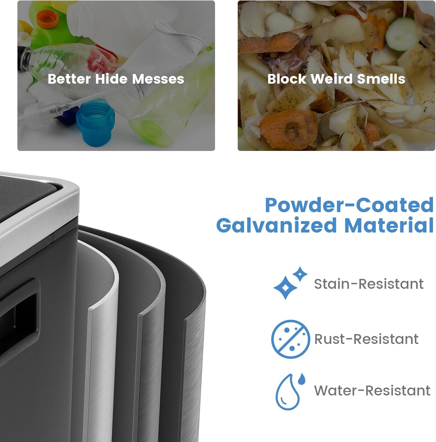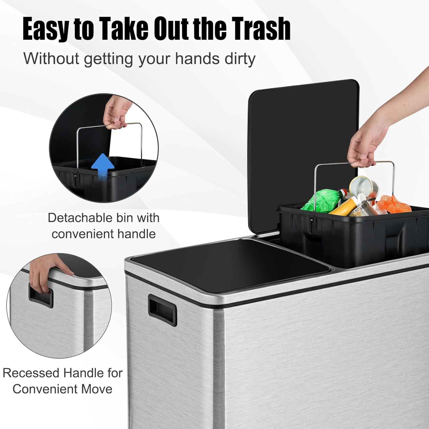 Garvee 18.5 gal/70 L Open Top Trash Can, Stainless Steel Garbage Can with Removable Inner Bucket, Heavy Duty Commercial Grade Round Waste Container for Kitchen, Home, Office