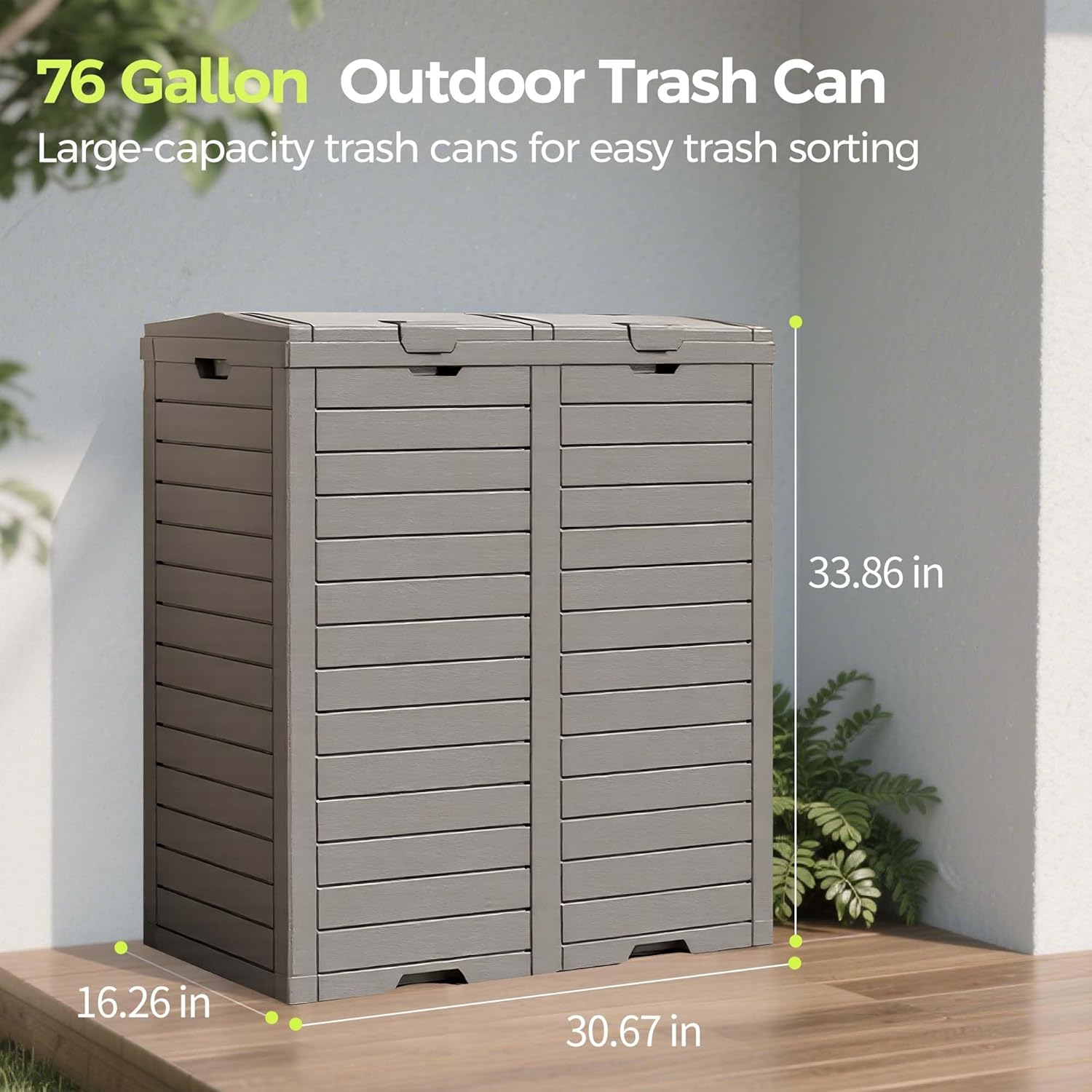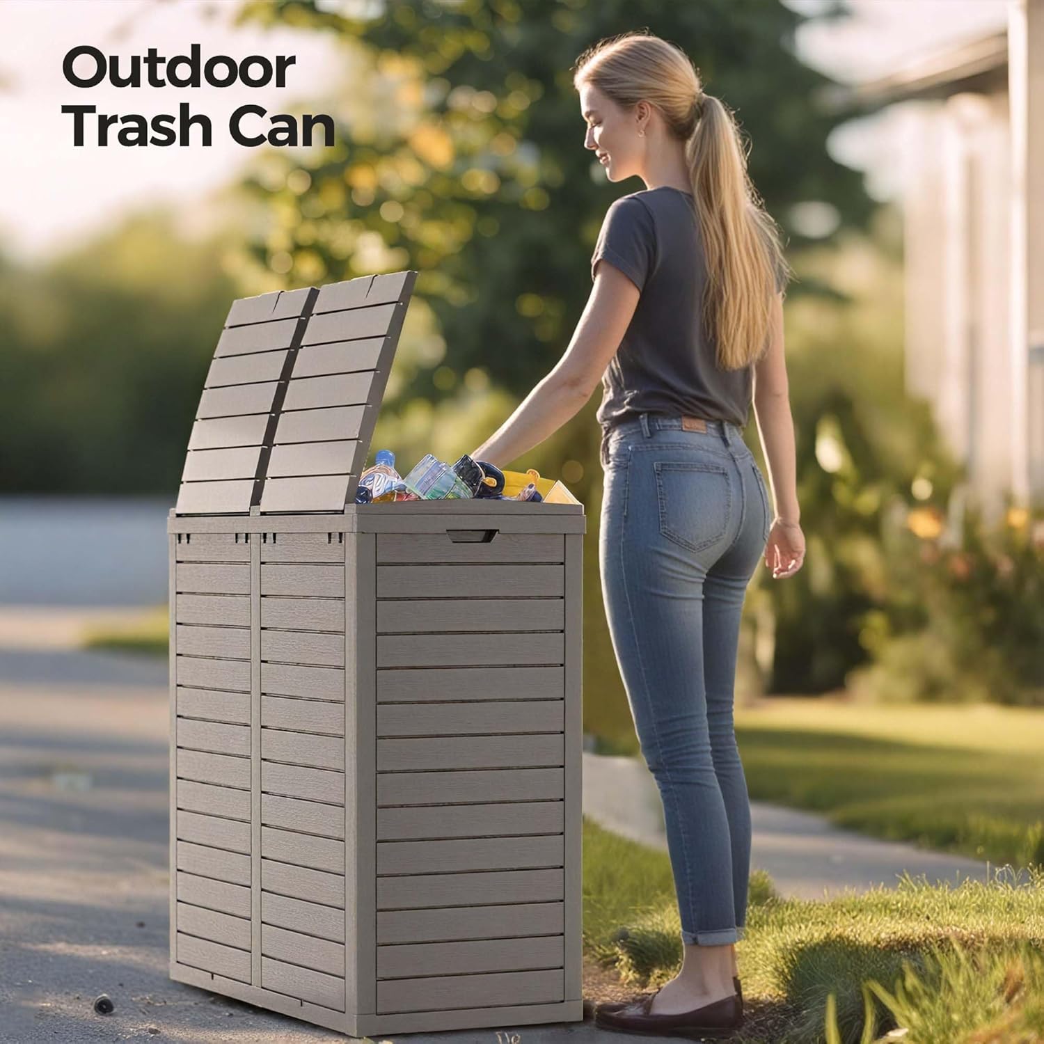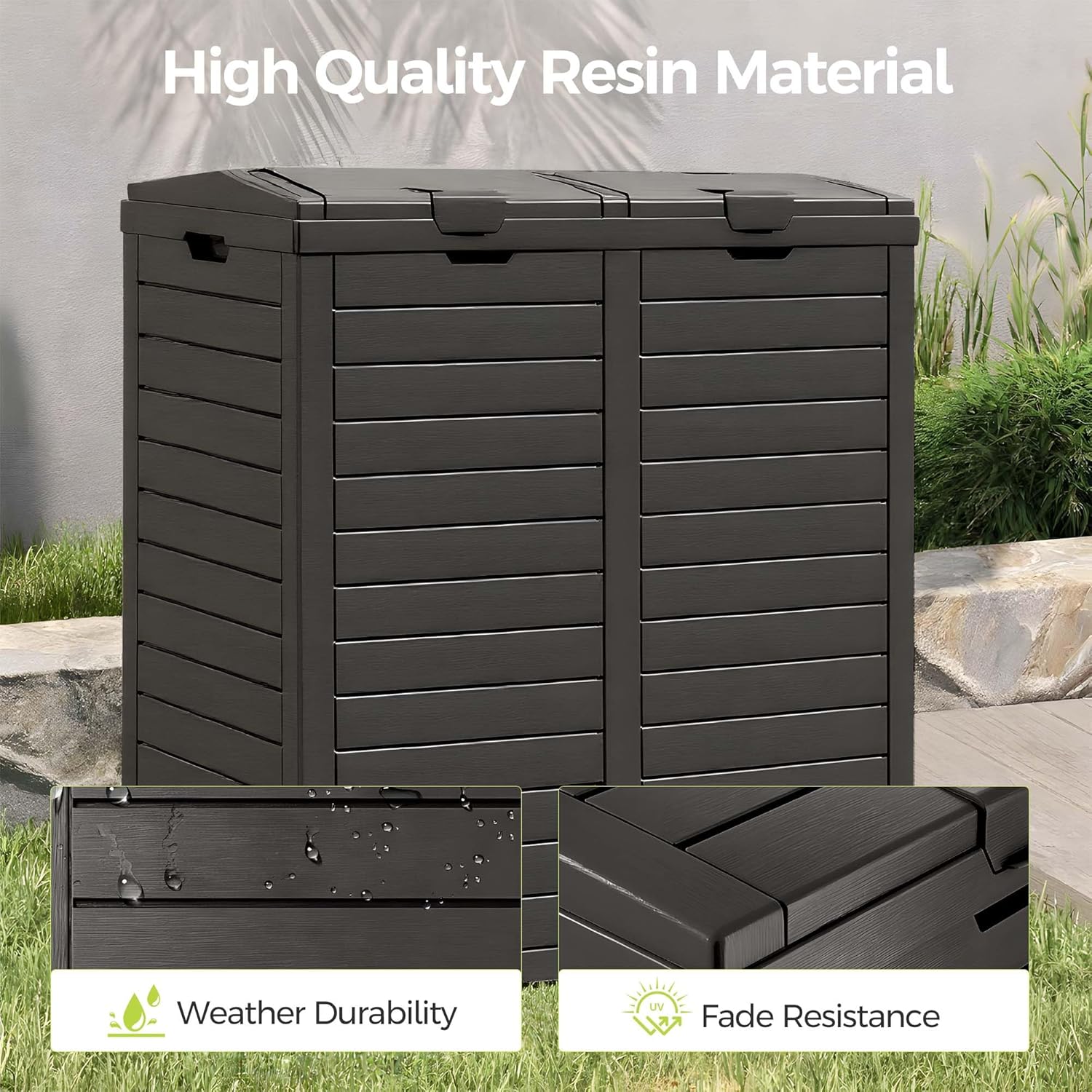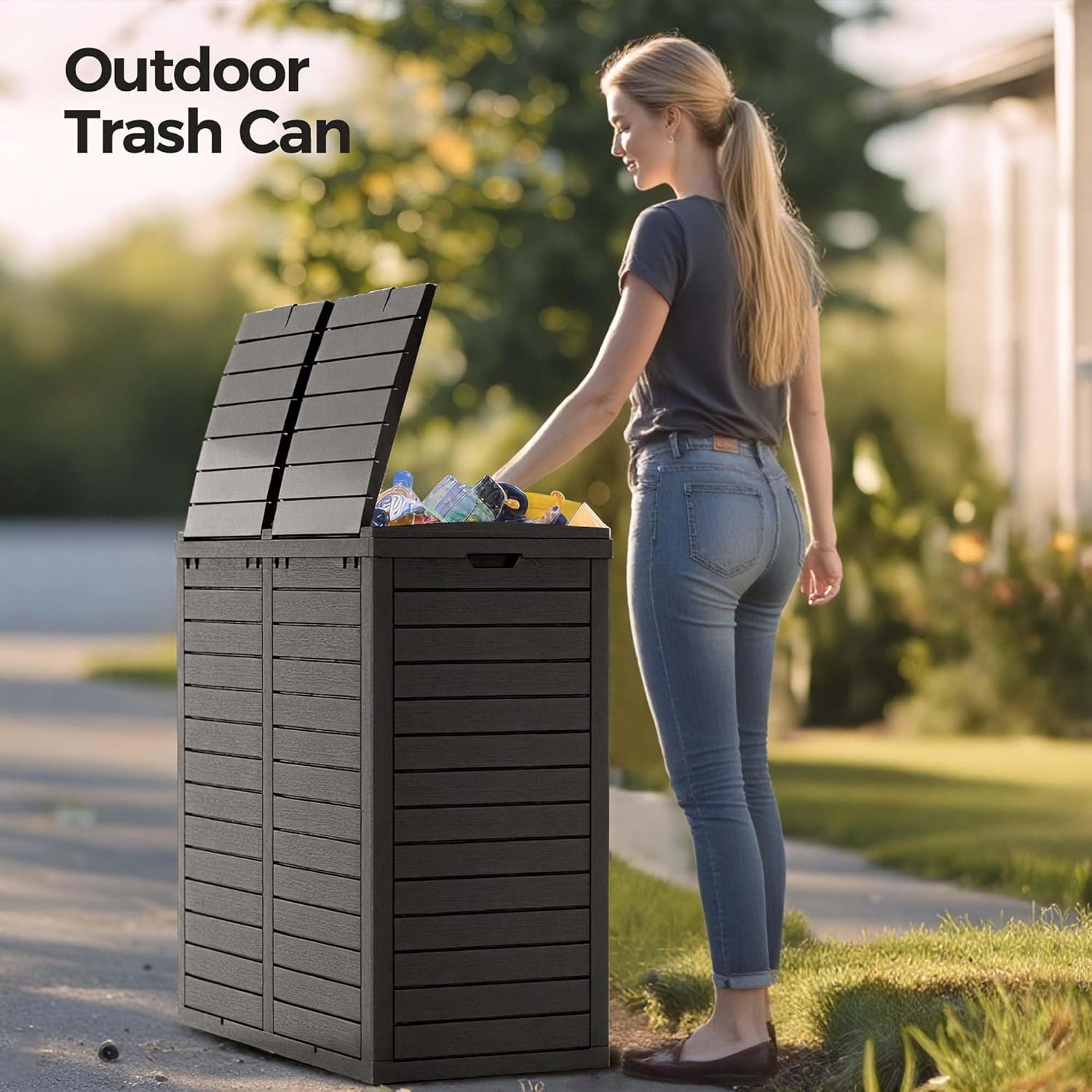 76 Gallon Outdoor Trash Can Waterproof Resin Garbage Can with Tiered Lid & Drip Tray Indoor and Outdoor Use Trash Bin for Patio Kitchen, Backyard & Deck, Black