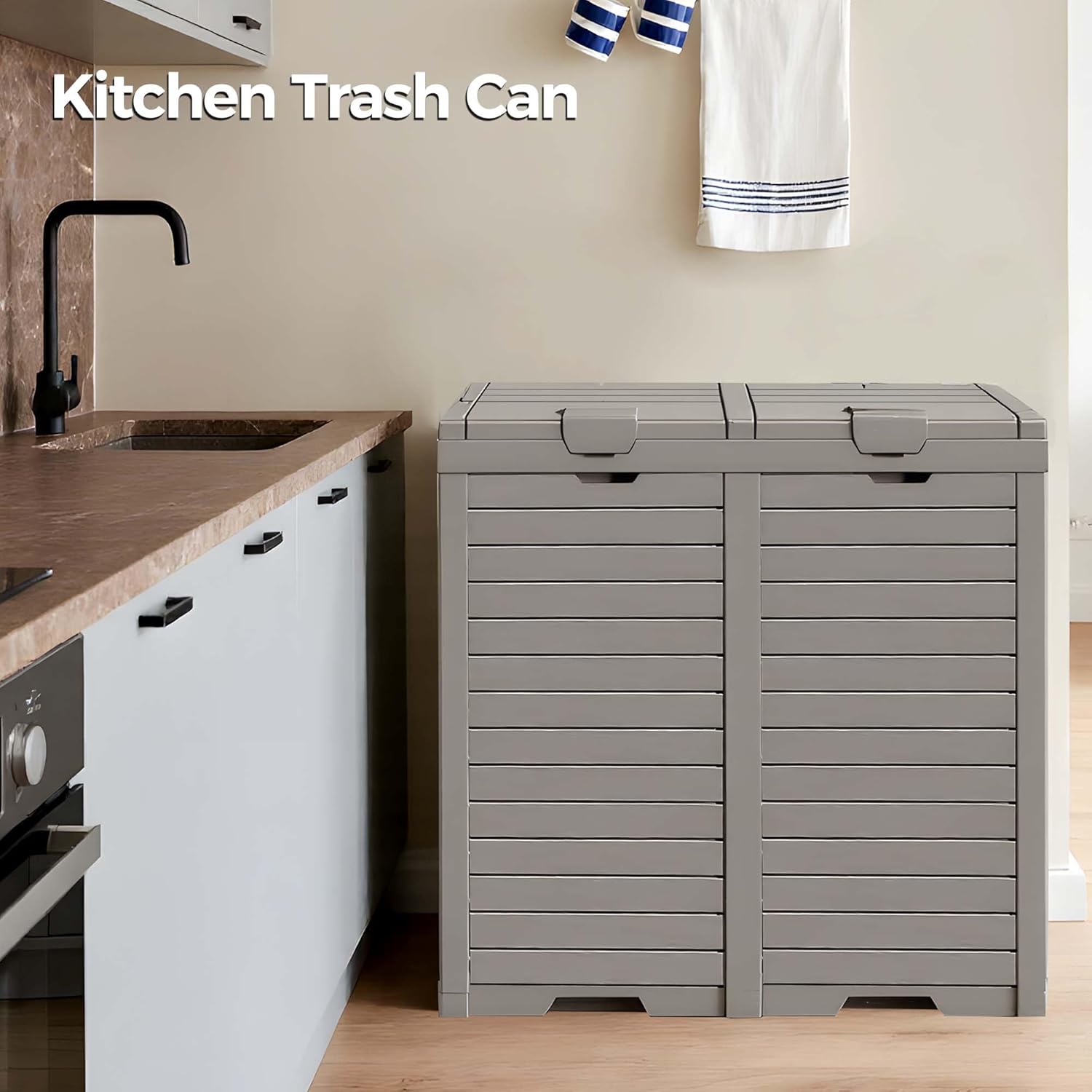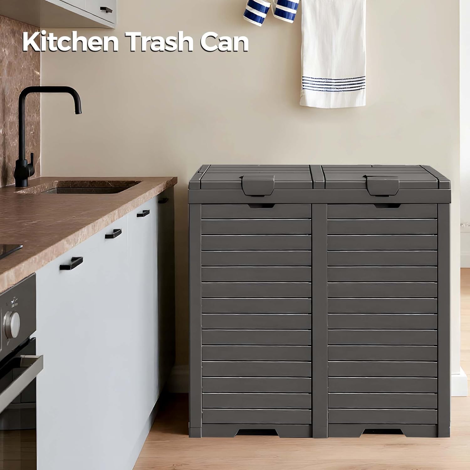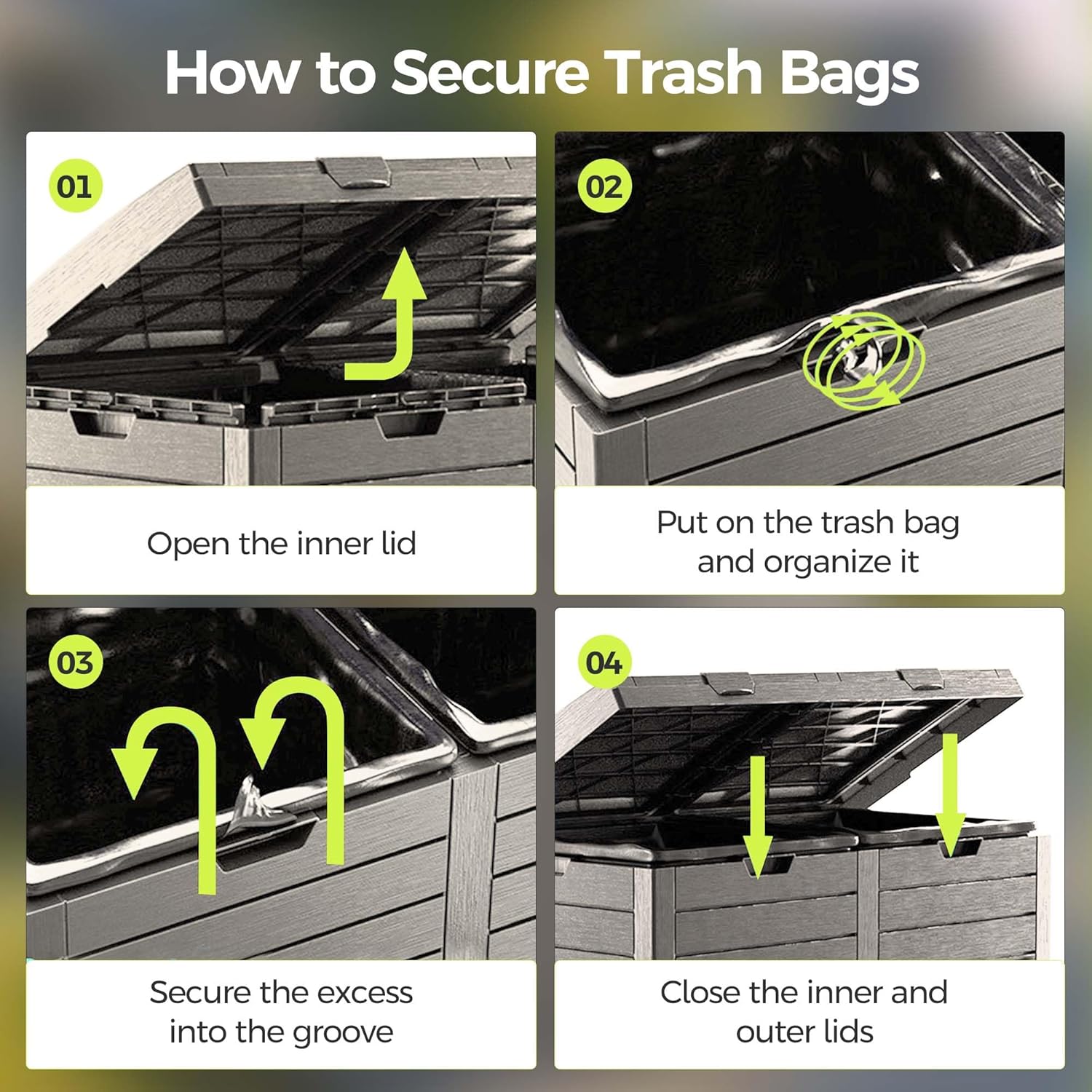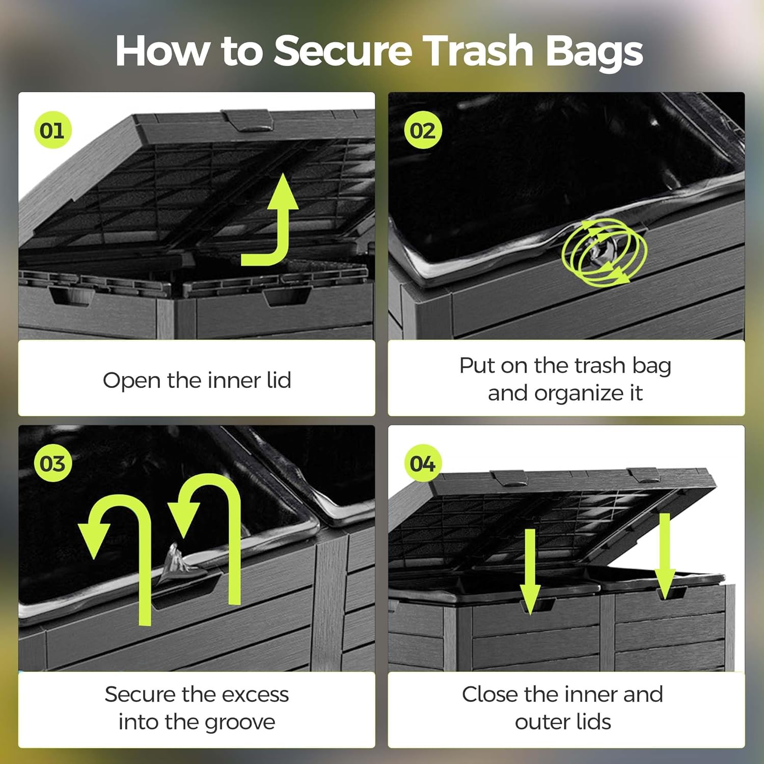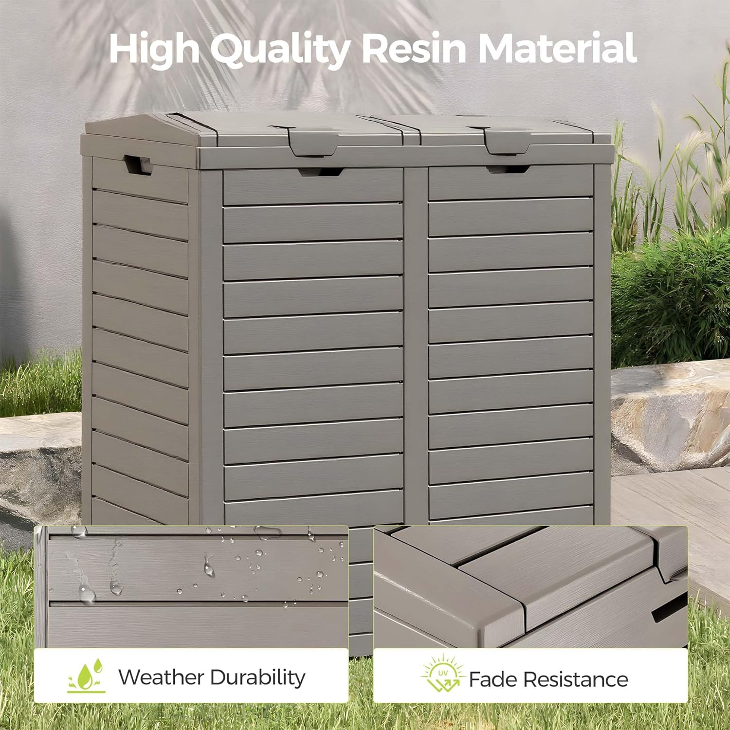 76 Gallon Outdoor Trash Can Waterproof Resin Garbage Can with Tiered Lid & Drip Tray Indoor and Outdoor Use Trash Bin for Patio Kitchen, Backyard & Deck, Black