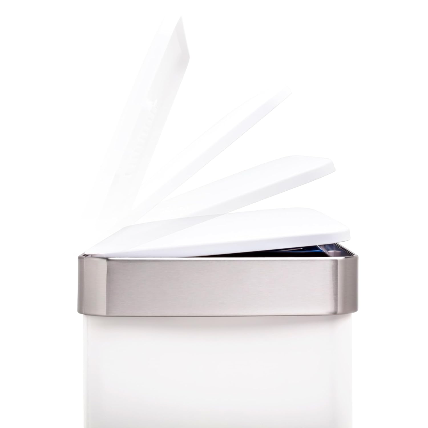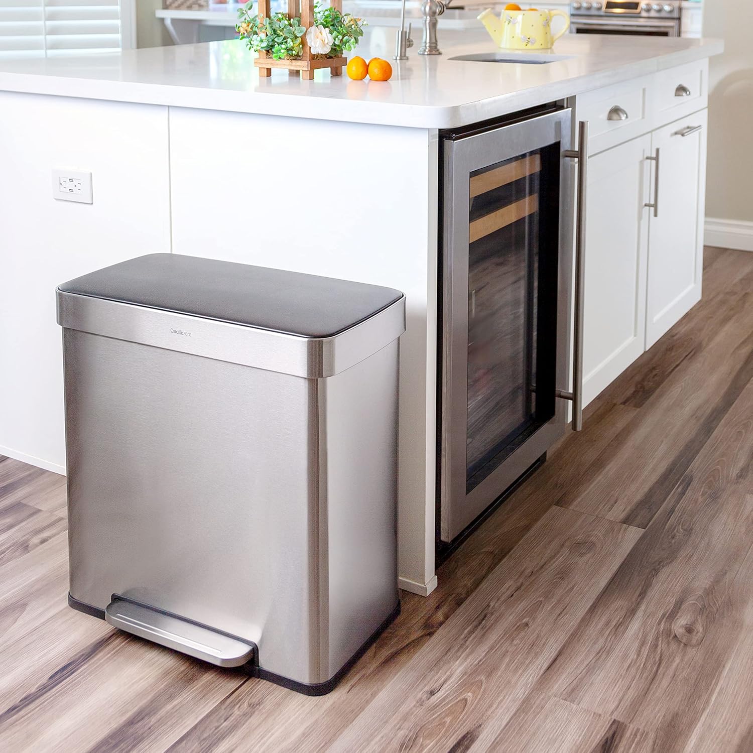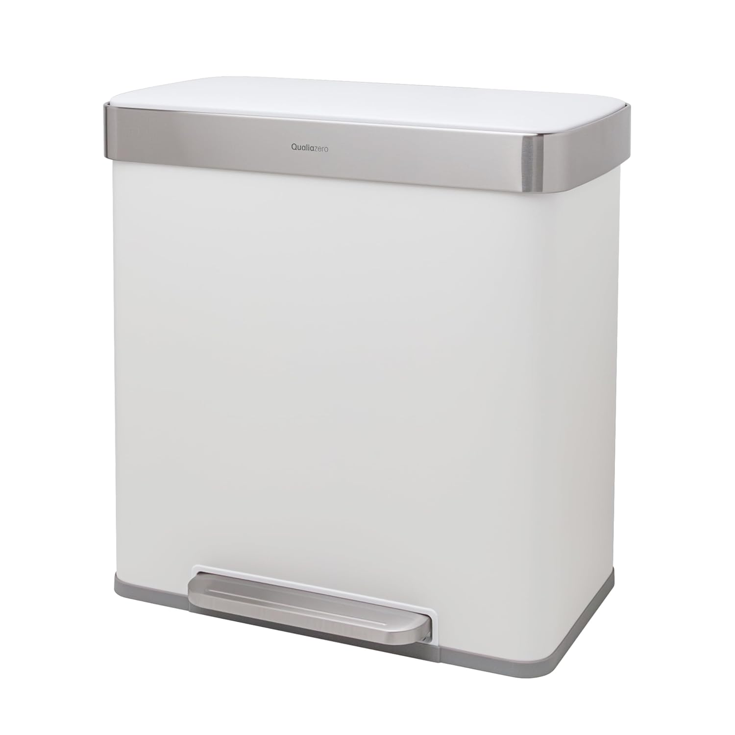 QUALIAZERO 60L/15.8Gal Heavy Duty Hands-Free Stainless Steel Commercial/Kitchen Step Trash Can, Fingerprint-Resistant Soft Close Lid, Rectangle Shape (60L Recycle) (Matte White)