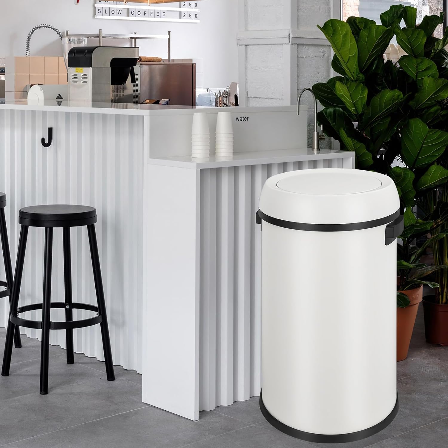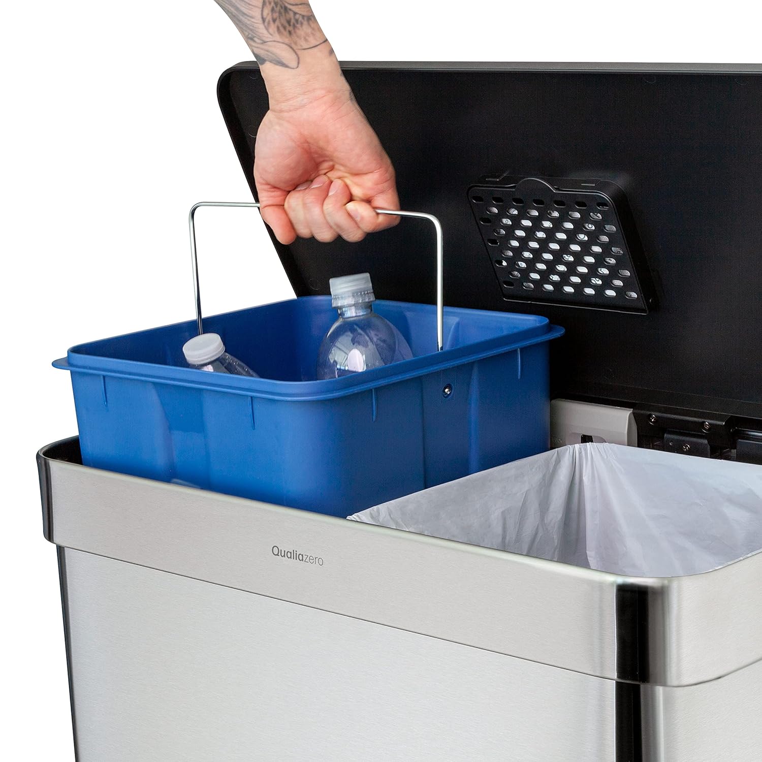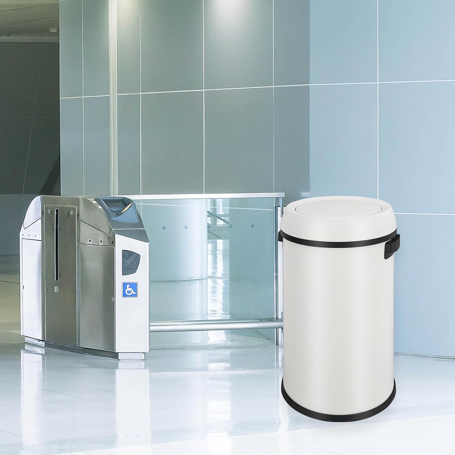QUALIAZERO 60L/15.8Gal Heavy Duty Hands-Free Stainless Steel Commercial/Kitchen Step Trash Can, Fingerprint-Resistant Soft Close Lid, Rectangle Shape (60L Recycle) (Matte White)